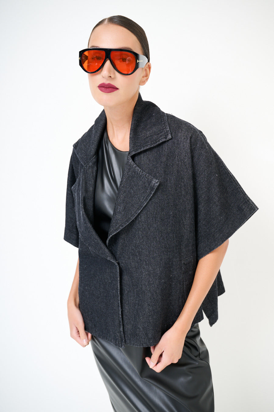 Veste en carton à effets en denim à manches courtes avec un large revers en gros