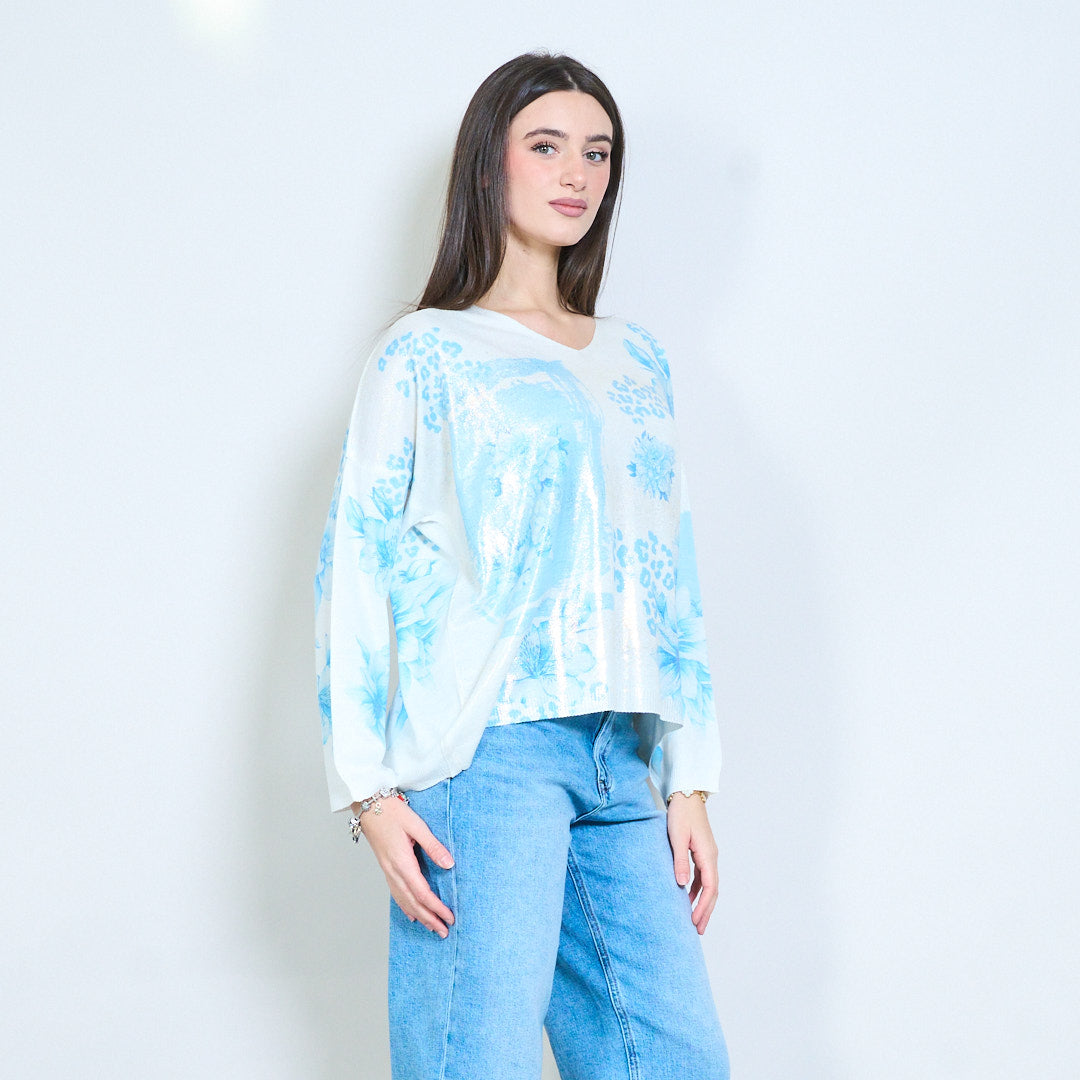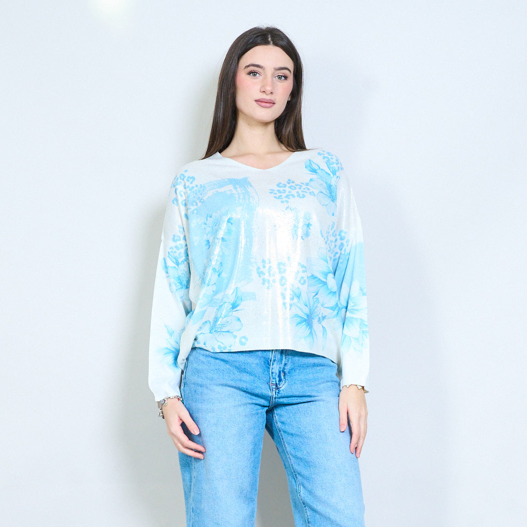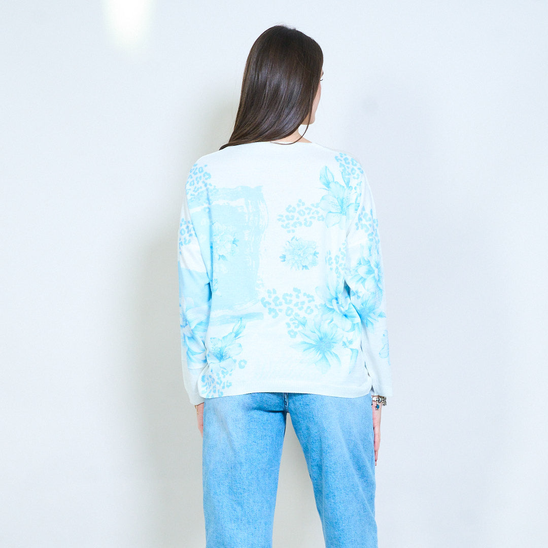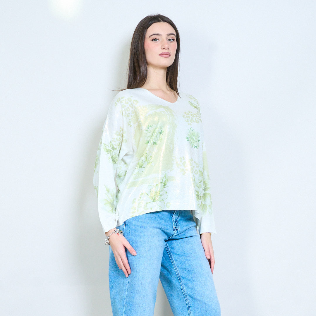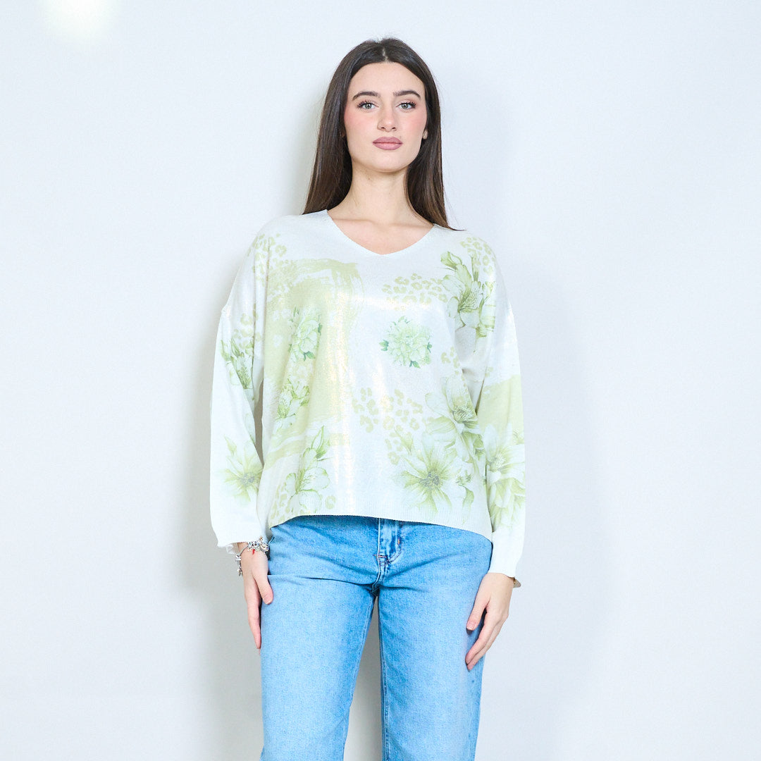 Pull en tricot col V avec imprimé patchwork floral en gros