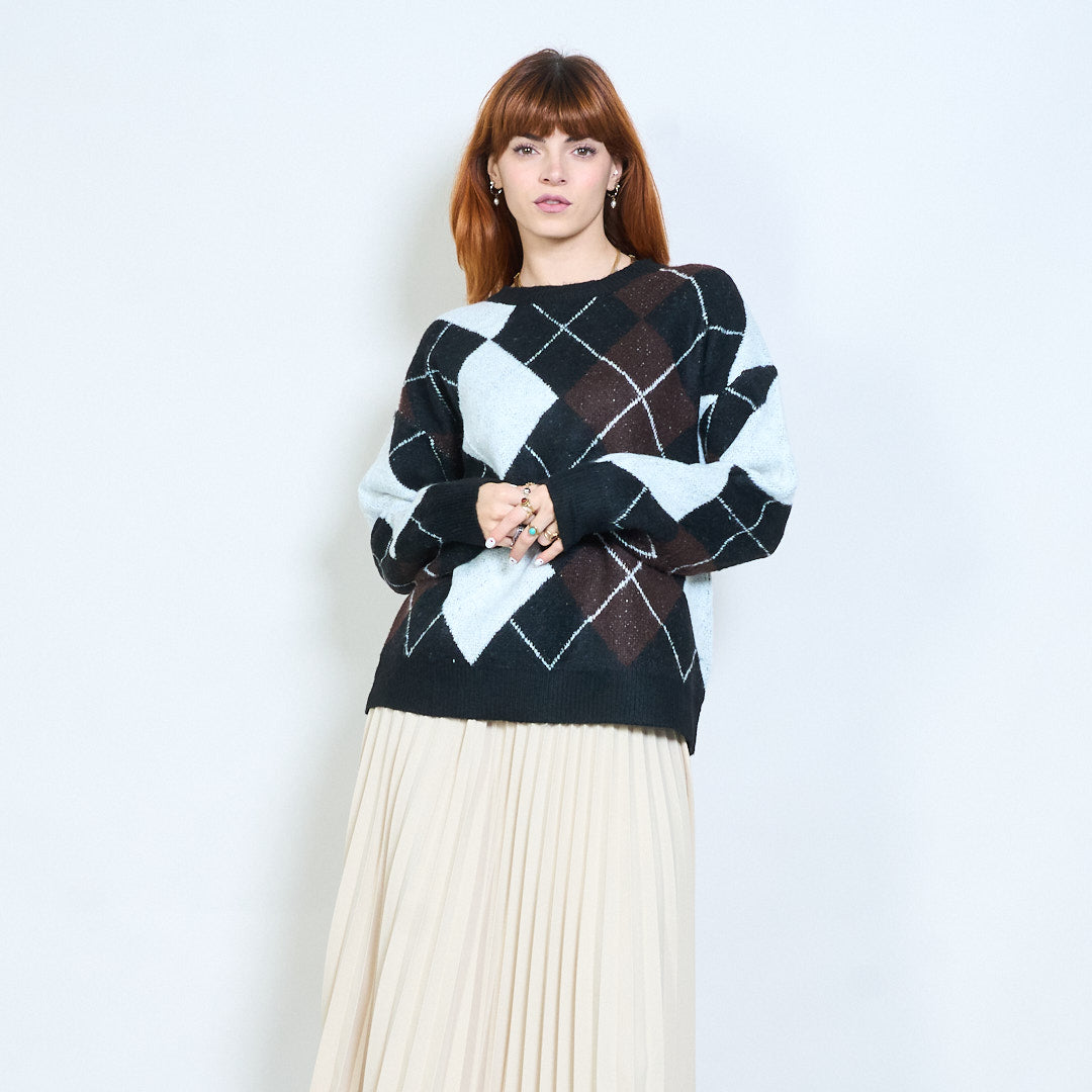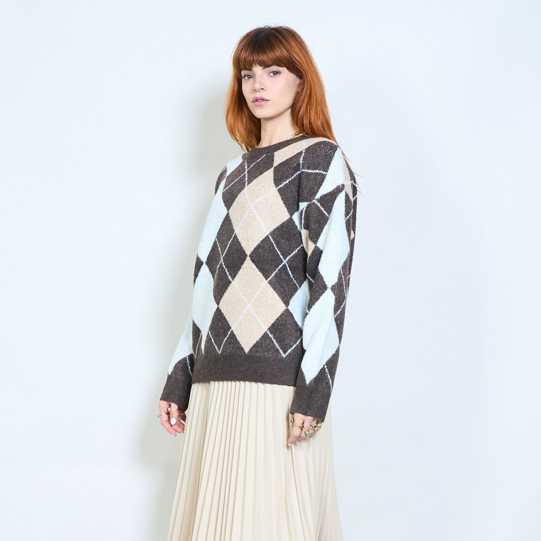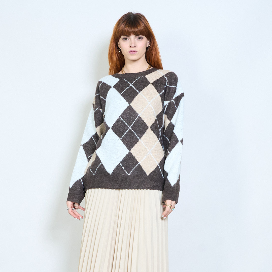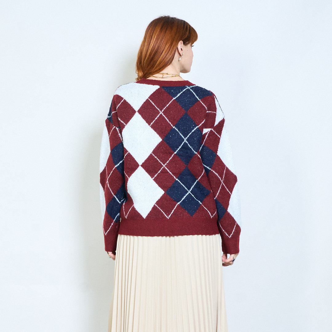 Pull tricoté à carreaux avec encolure ronde classique en gros