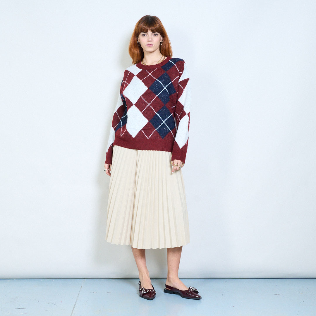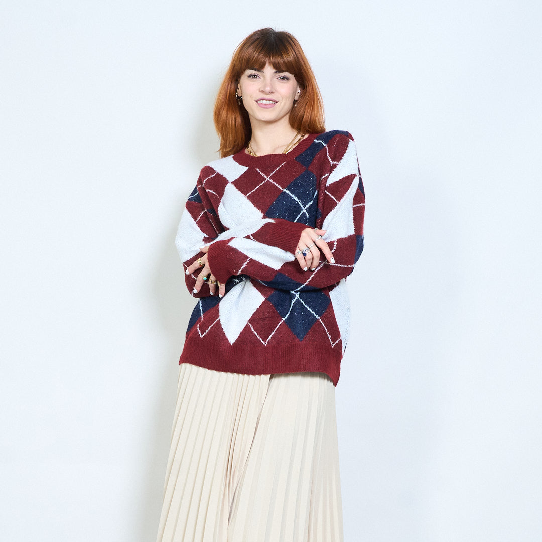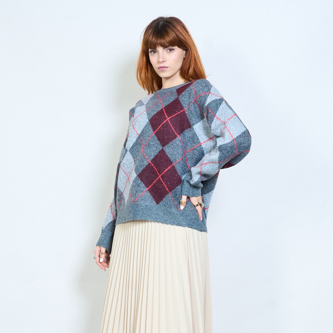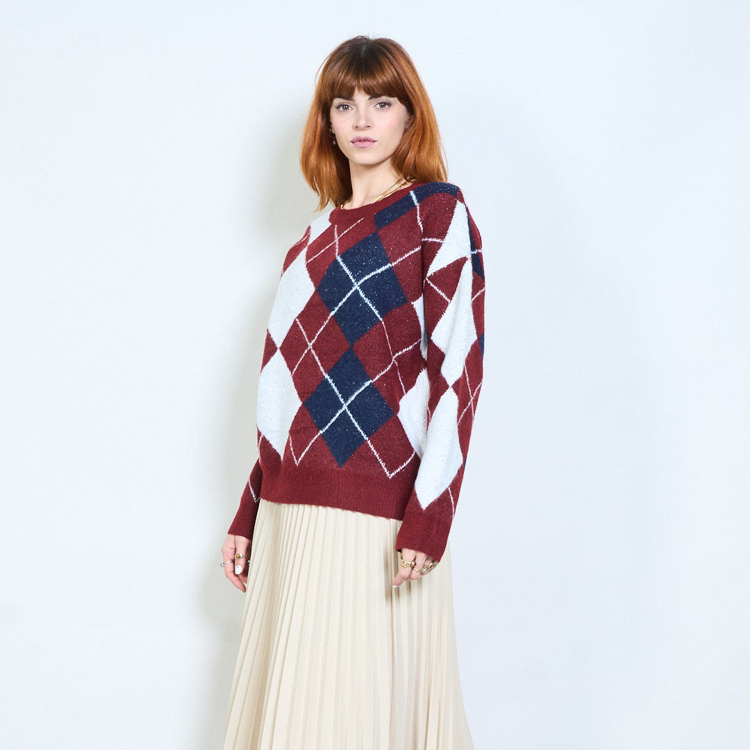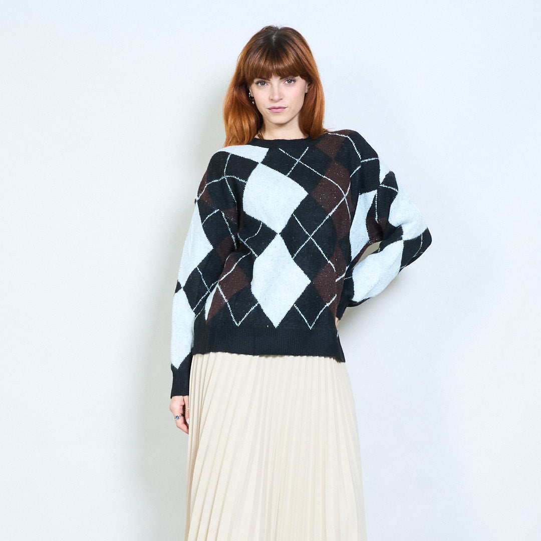 Pull tricoté à carreaux avec encolure ronde classique en gros