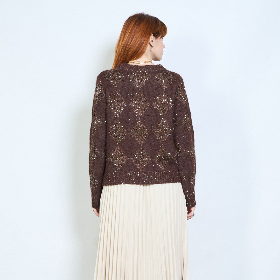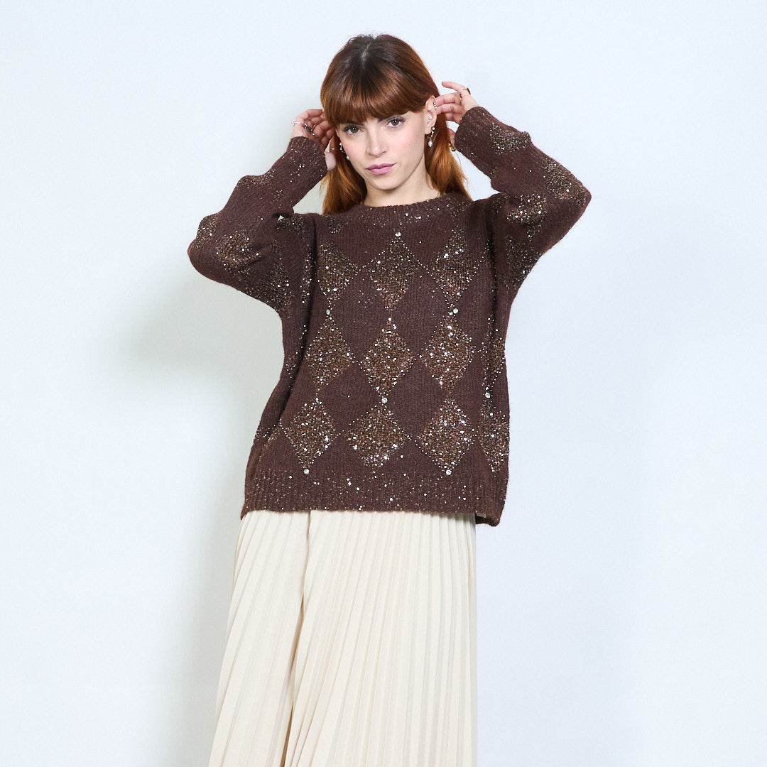 Pull tricoté à motif géométrique strass avec silhouette fluide, vente en gros