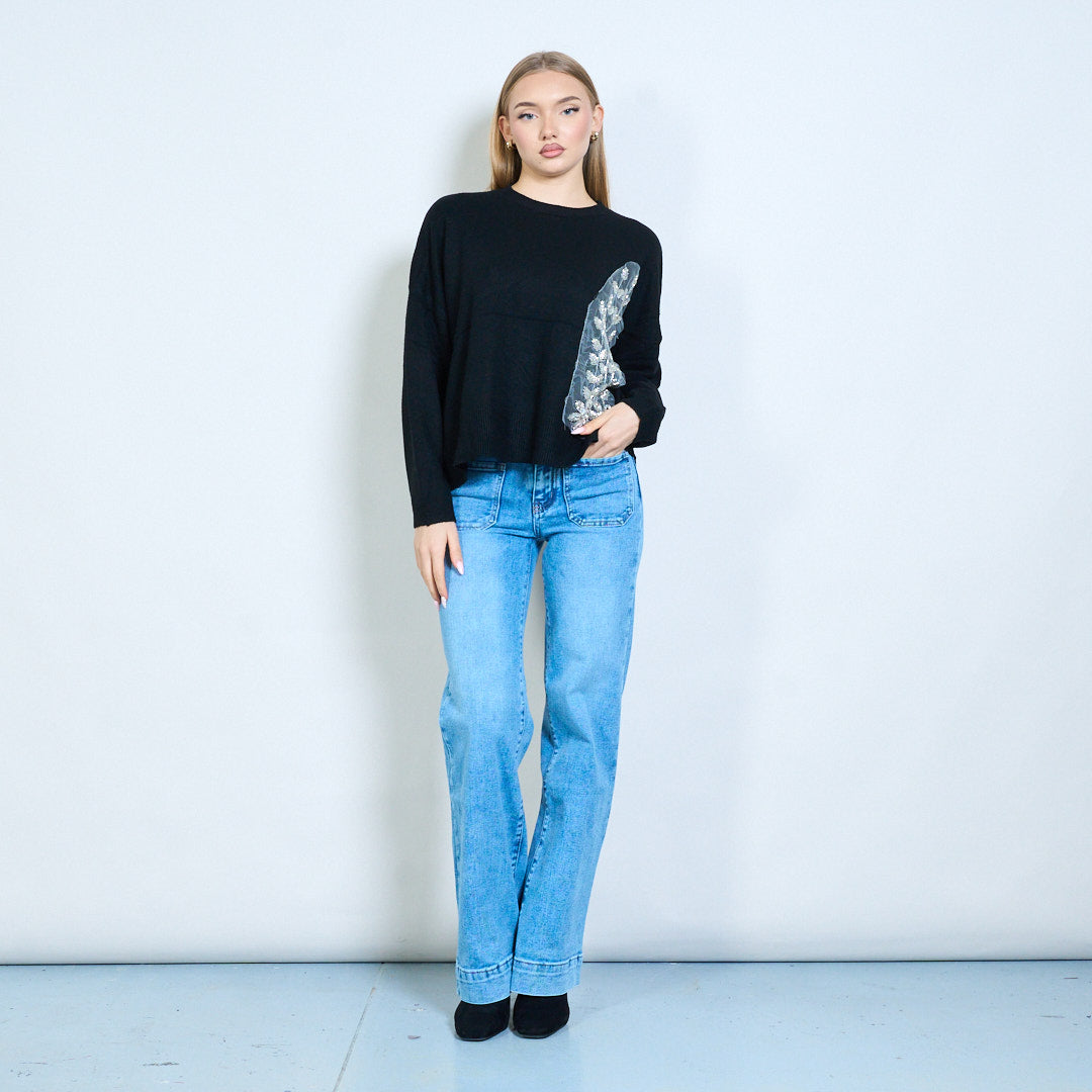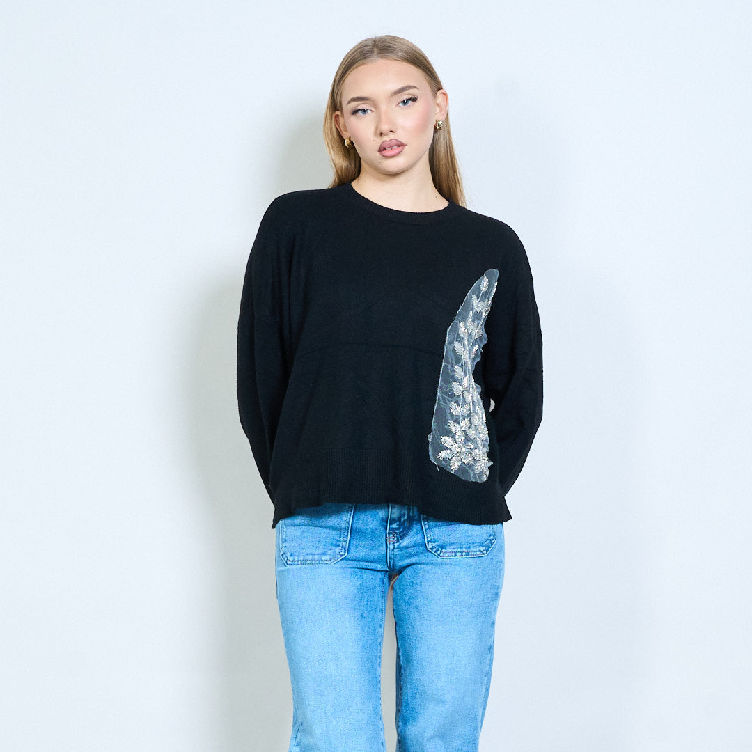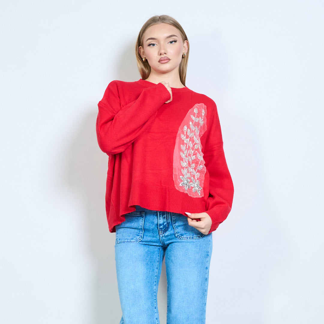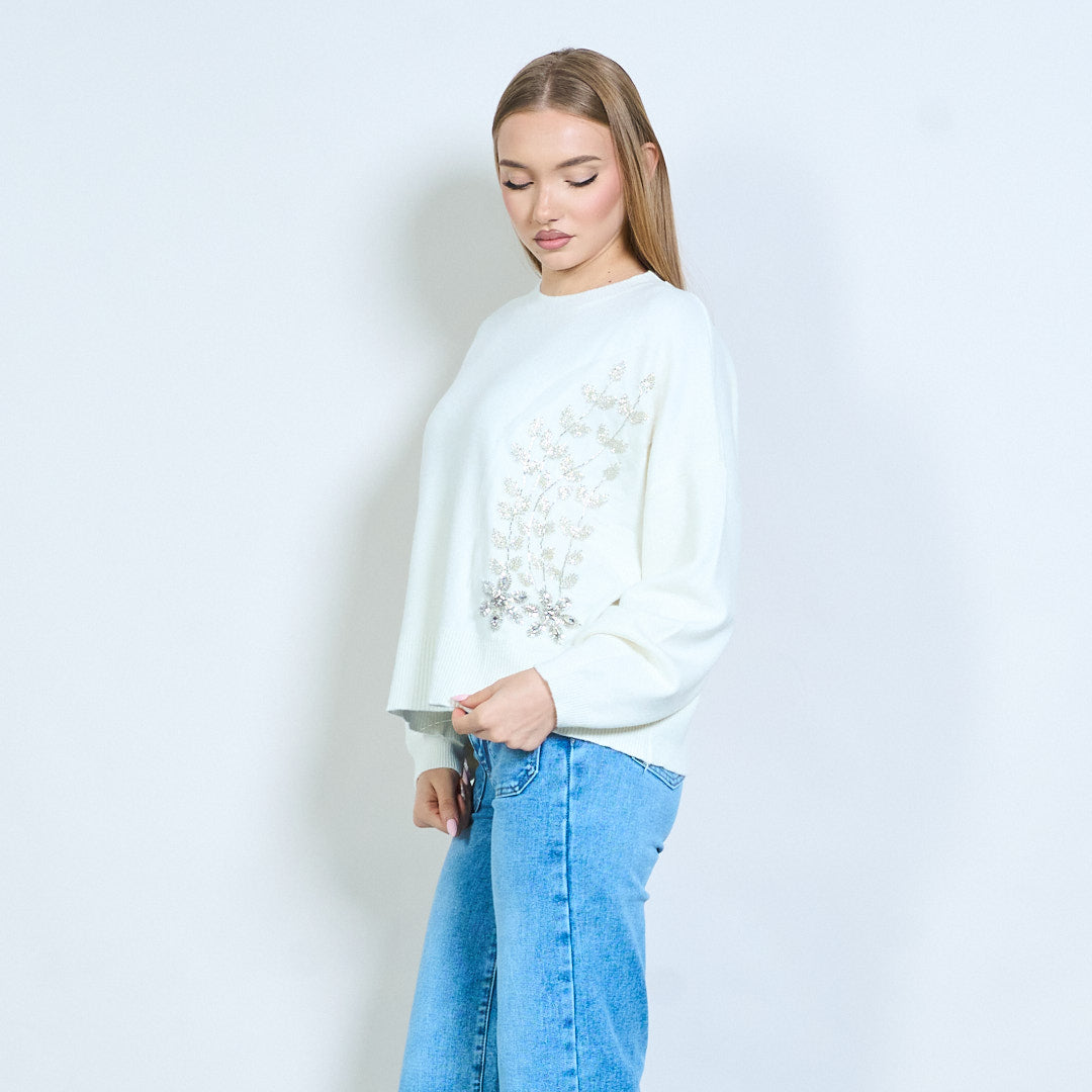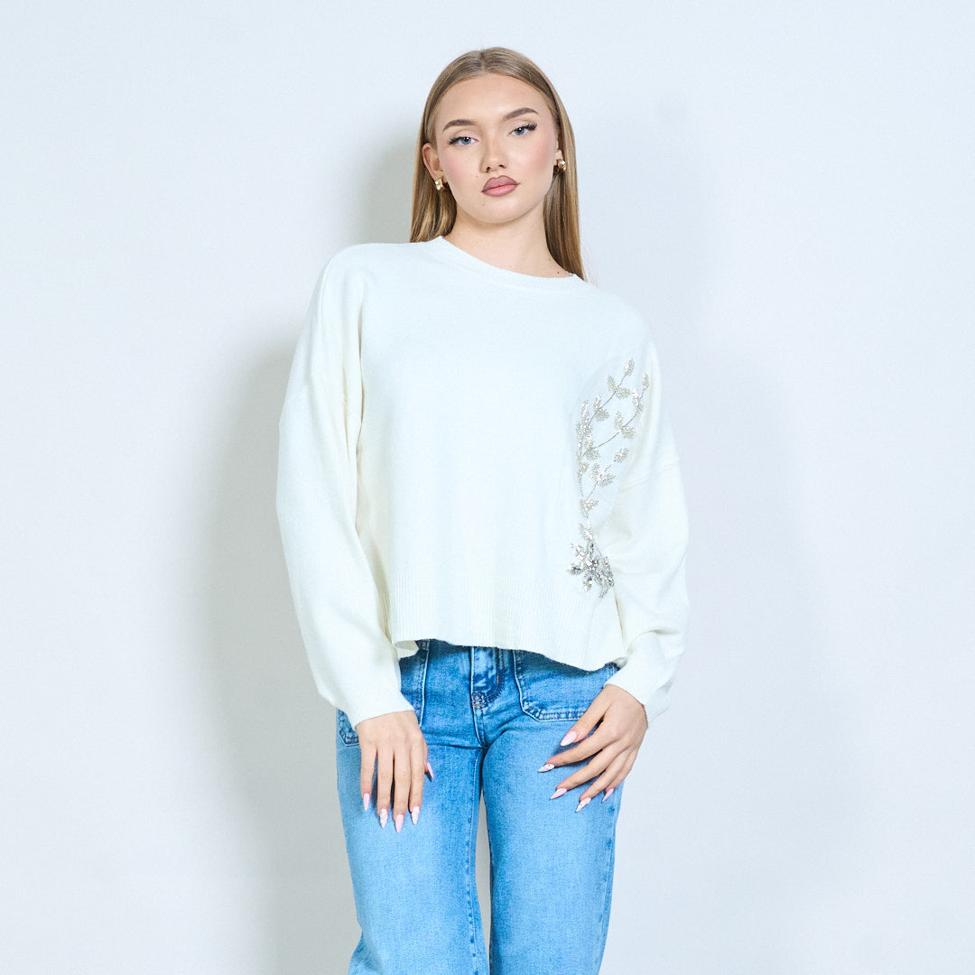 • Pull tricoté orné d'élégantes applications botaniques disposées sur un côté