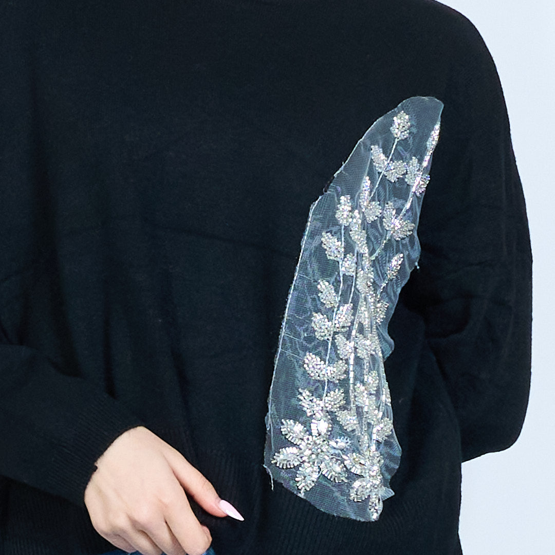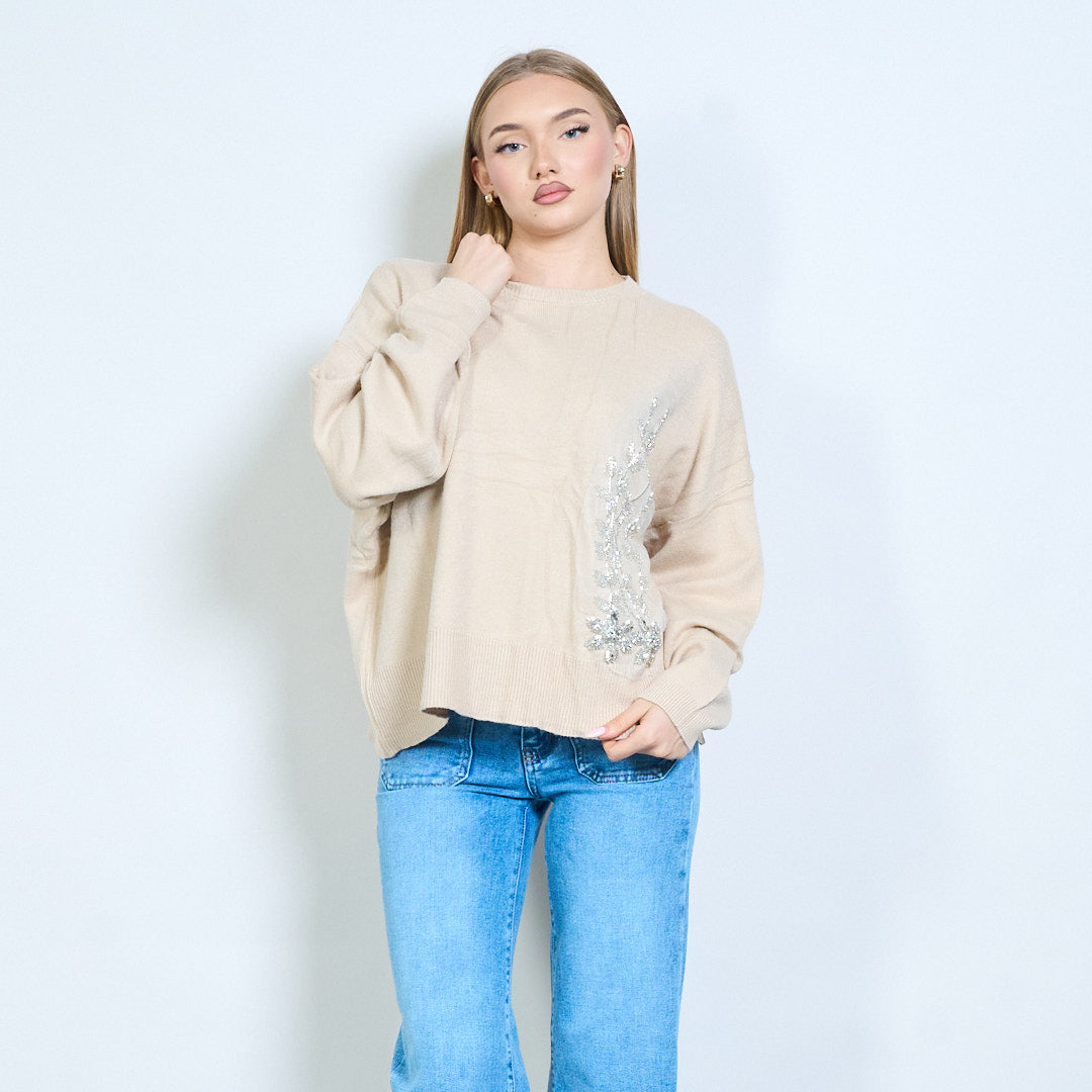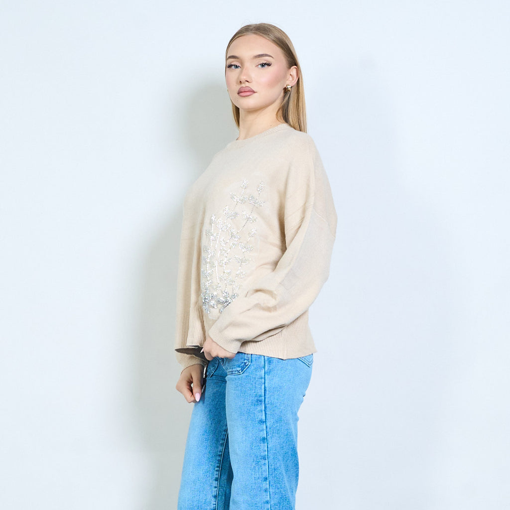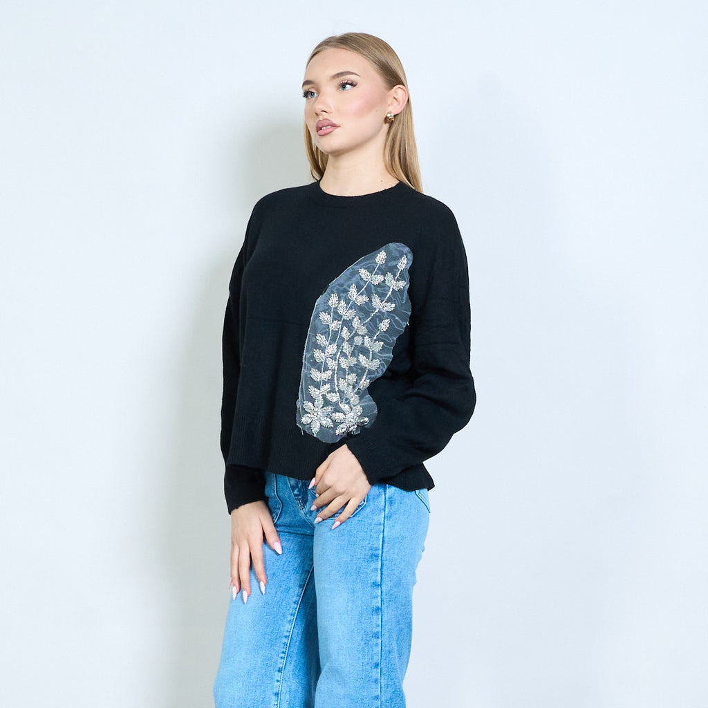 Pull tricoté orné d'appliques botaniques à paillettes, vente en gros