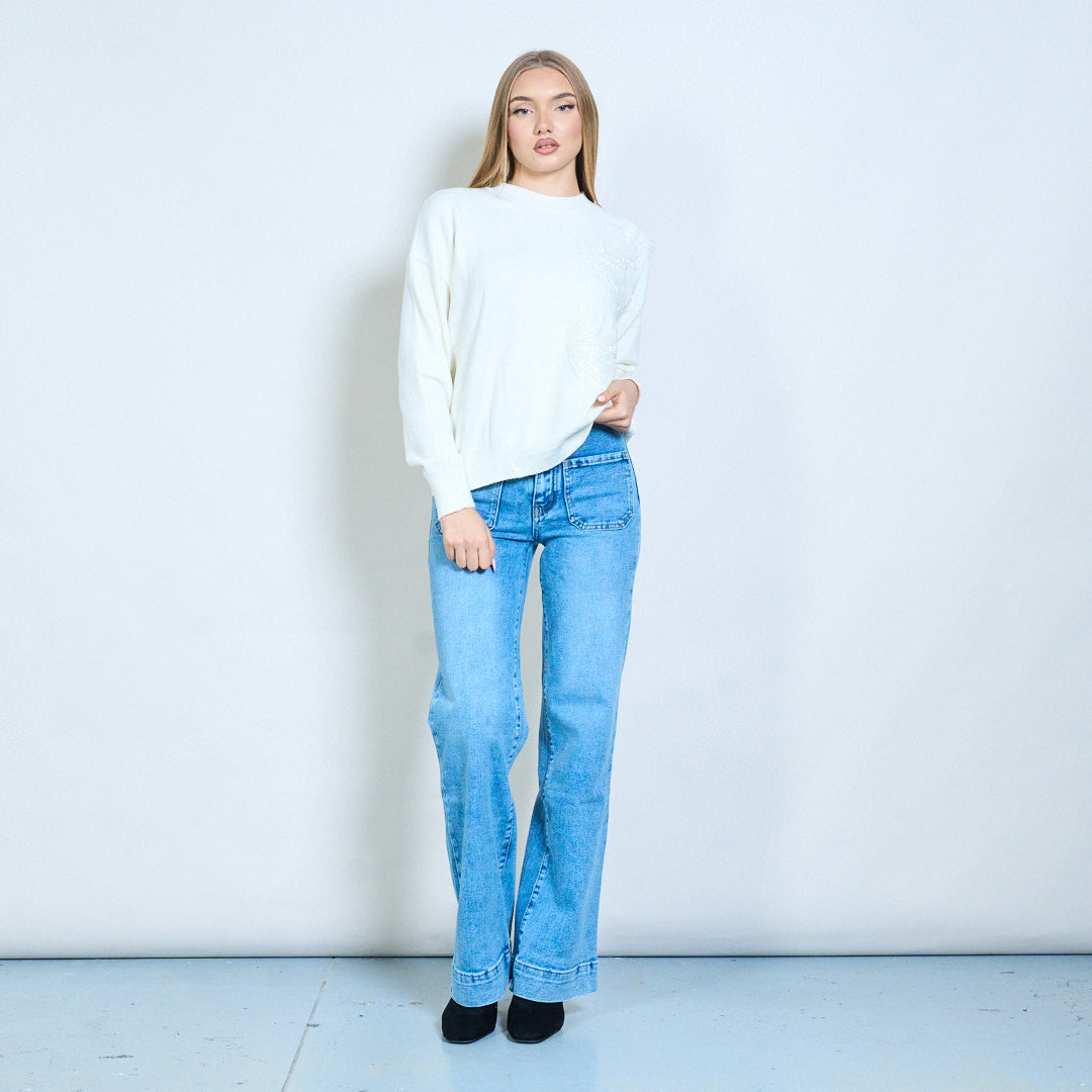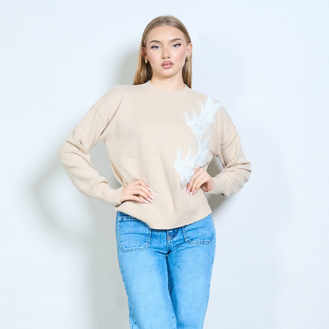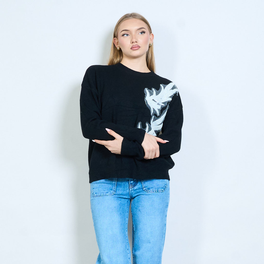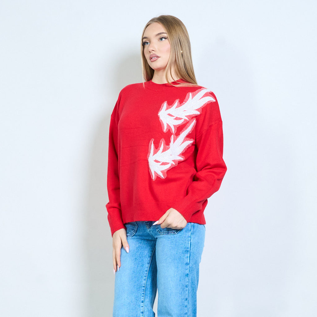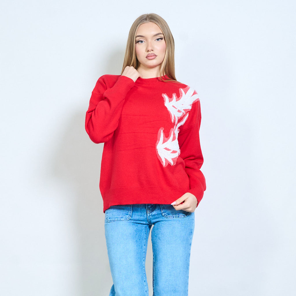 • Pull tricoté avec des appliqués audacieux en forme de feuille pour un look artistique saisissant
