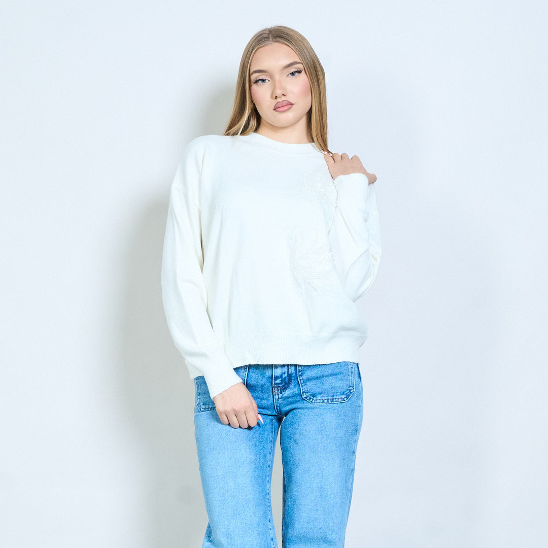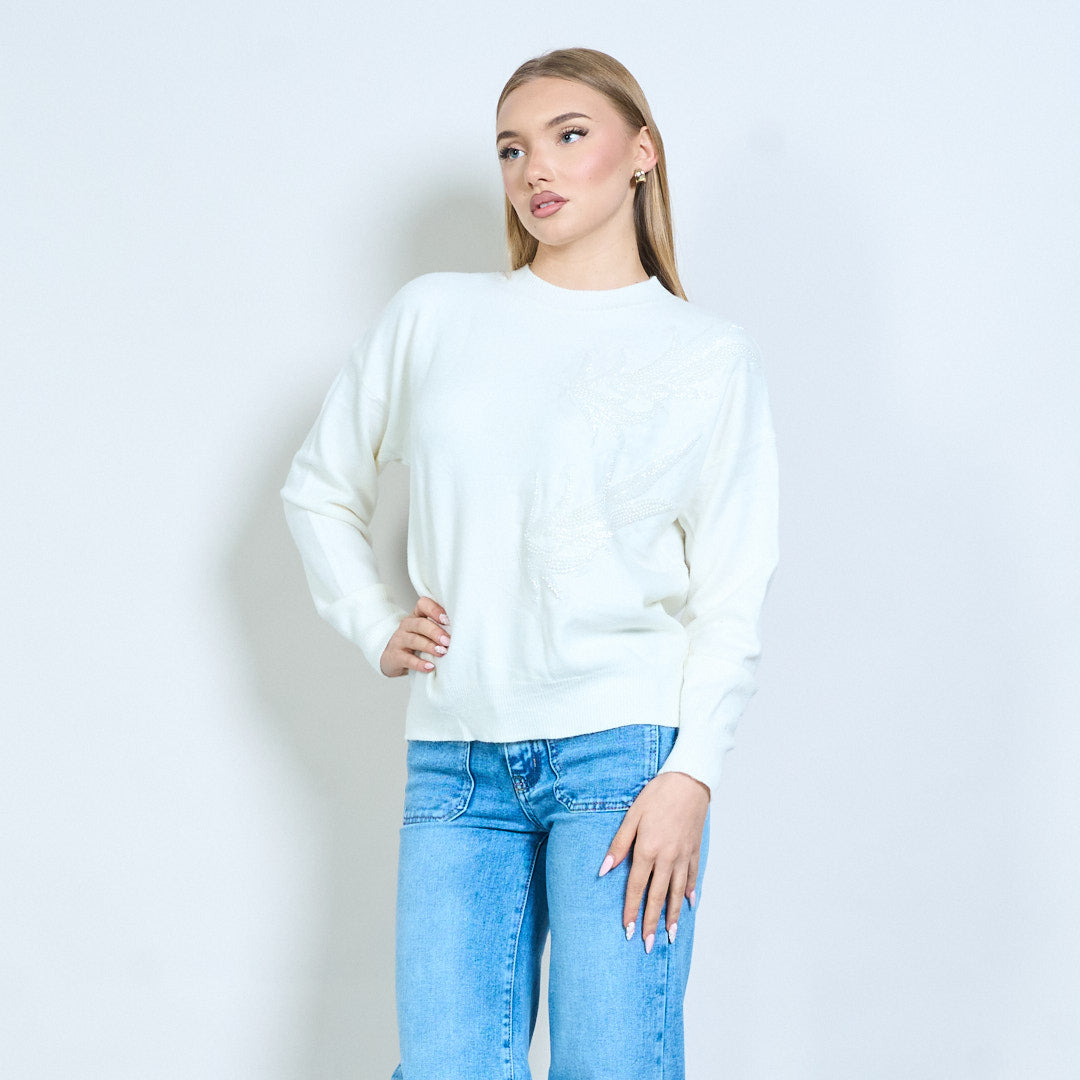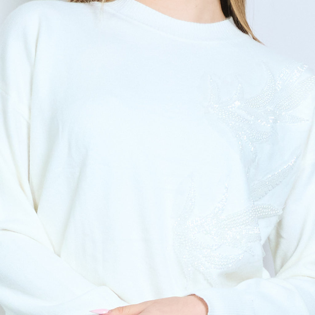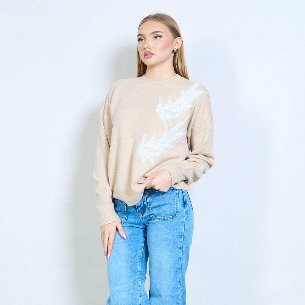 Pull tricoté orné de feuilles de paillettes, vente en gros