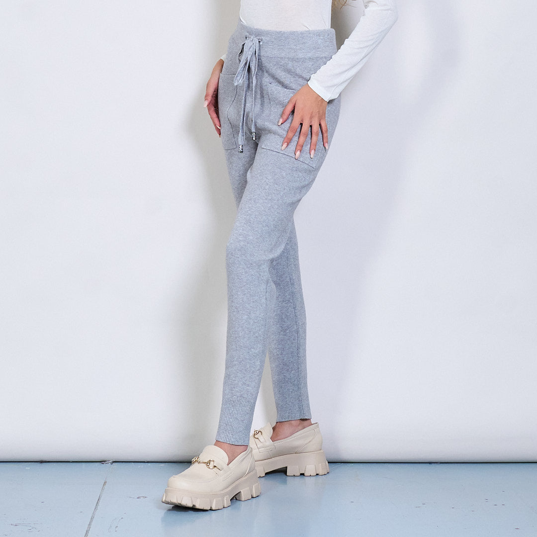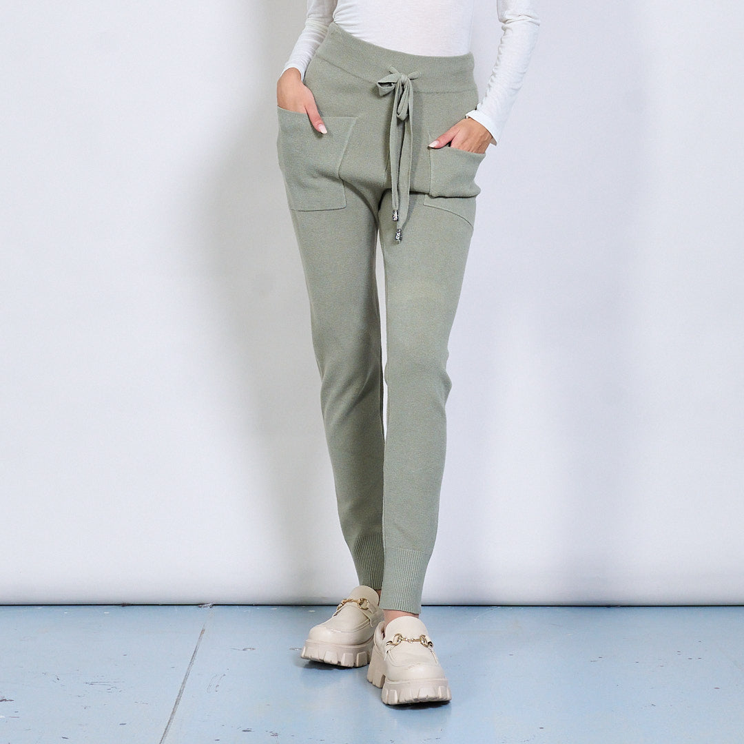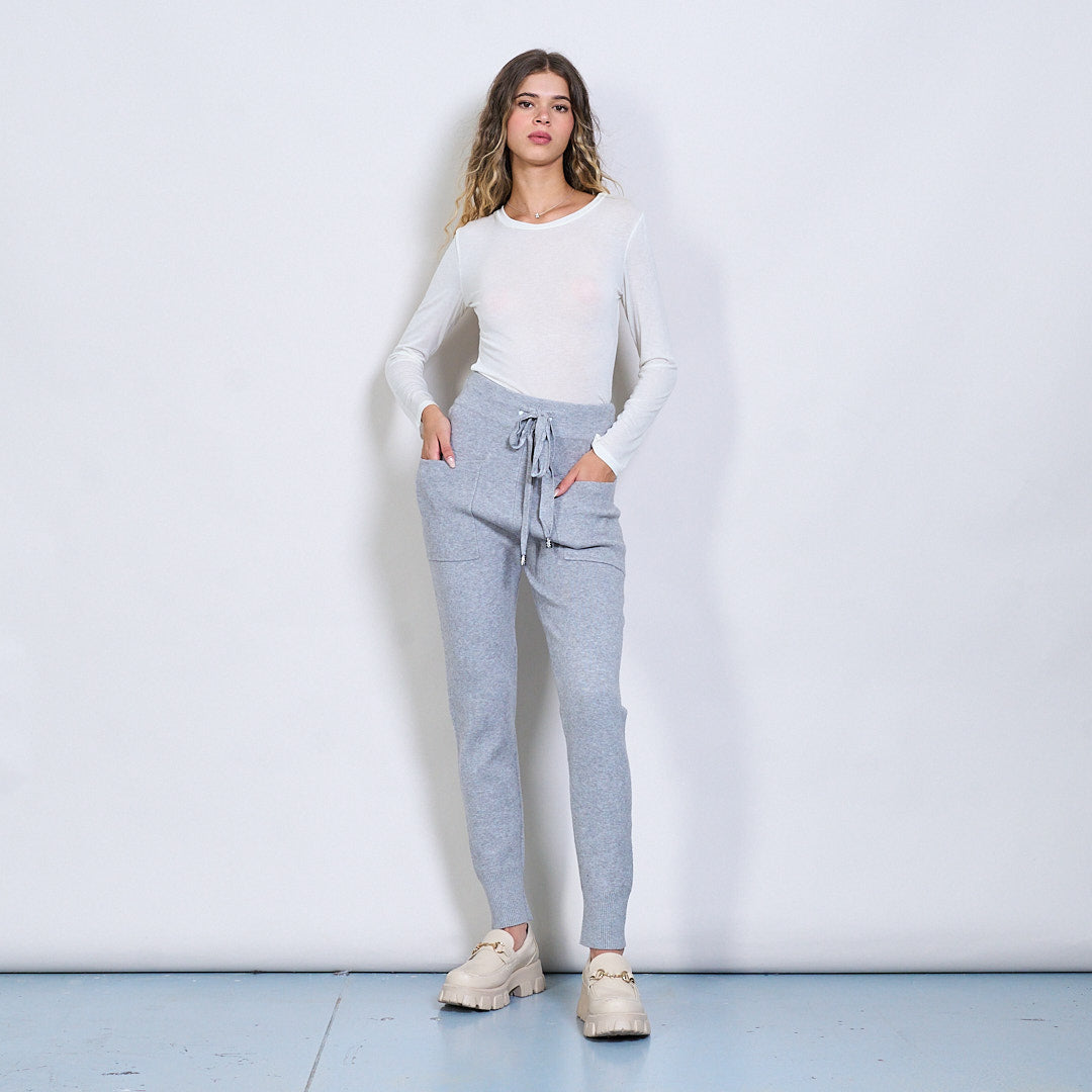 Pantalon de jogger en tricot avec la taille de la taille et les poches de patch en gros