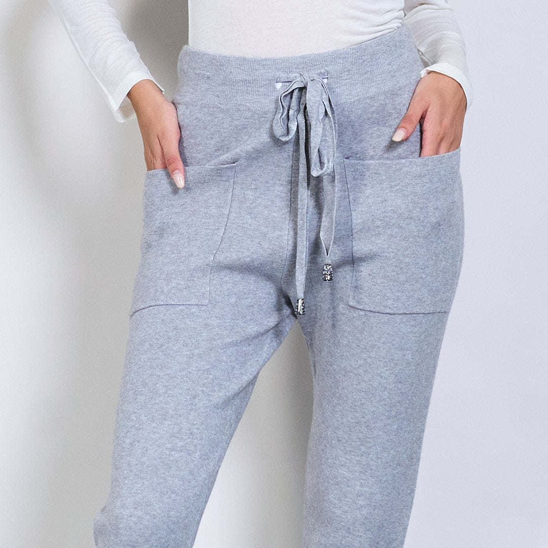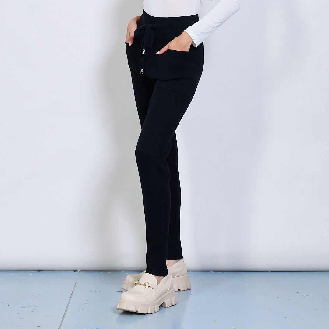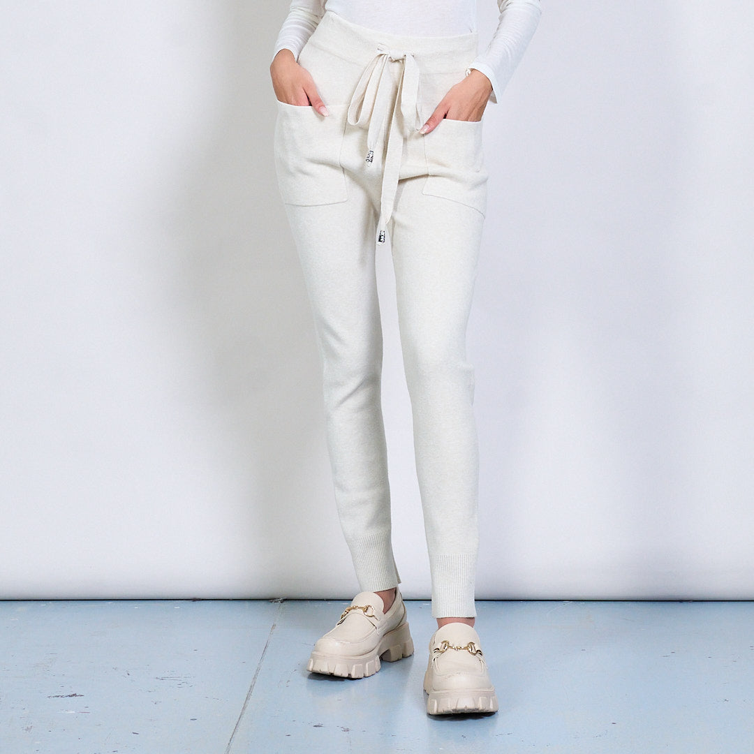 Pantalon de jogger en tricot avec la taille de la taille et les poches de patch en gros