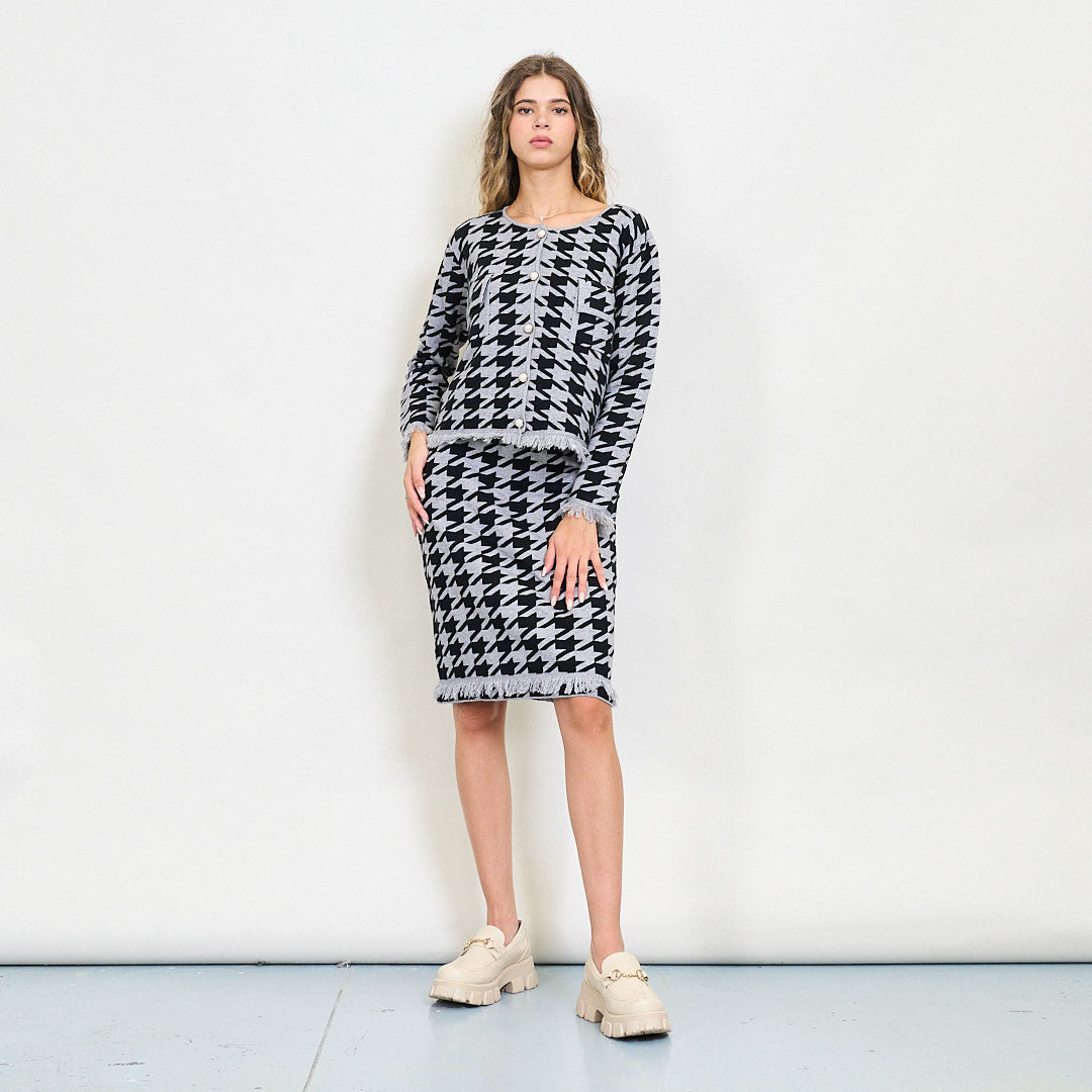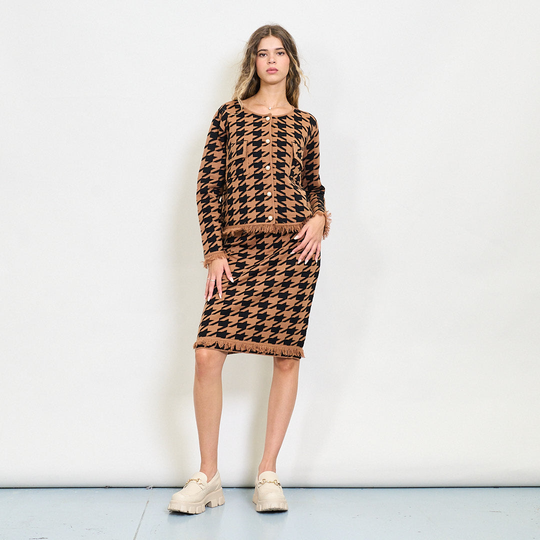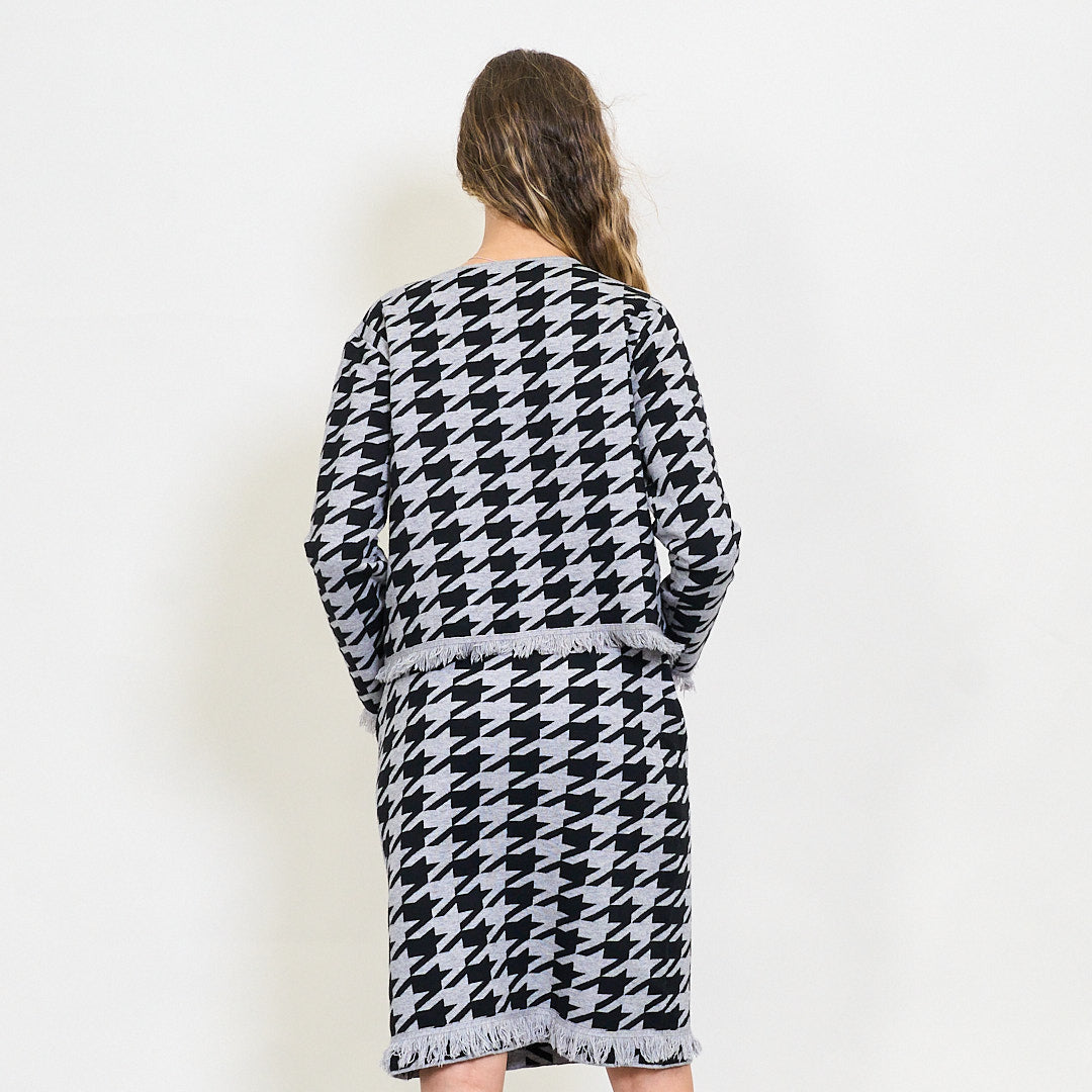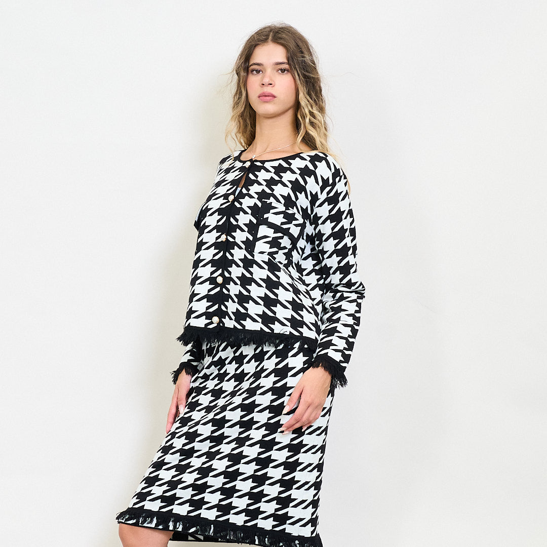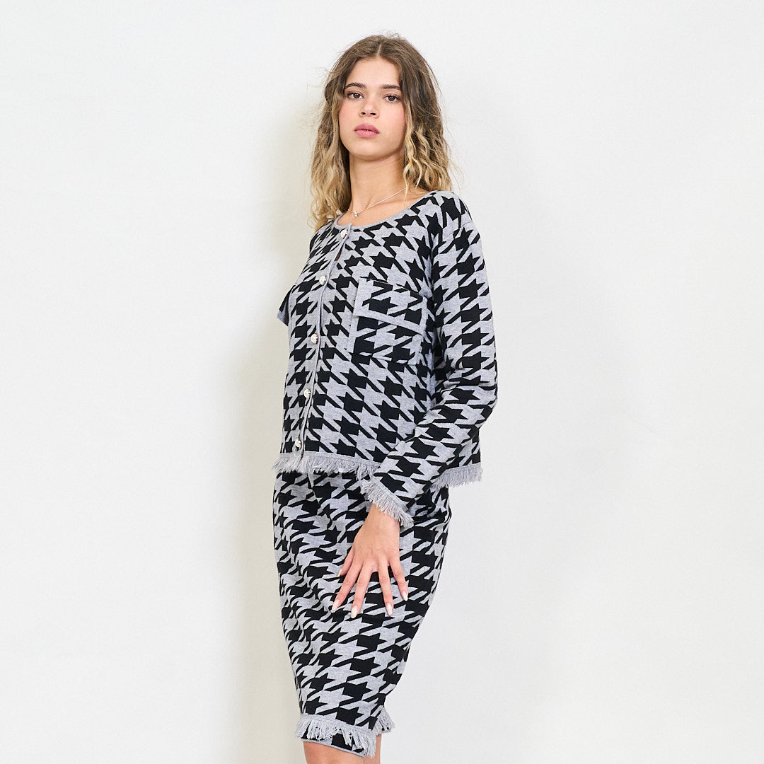 Veste en tricot à bouton perlé à pas de chasse avec ourlet Fringe en gros