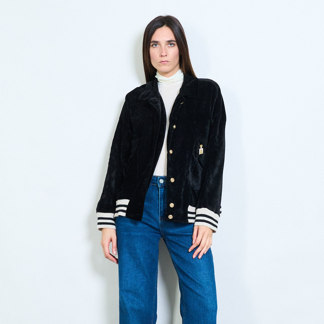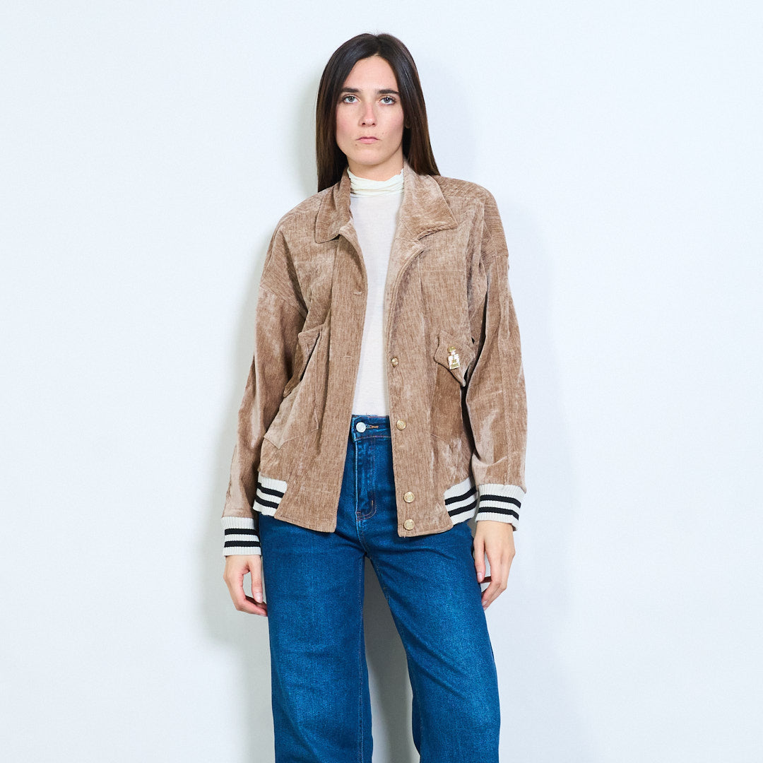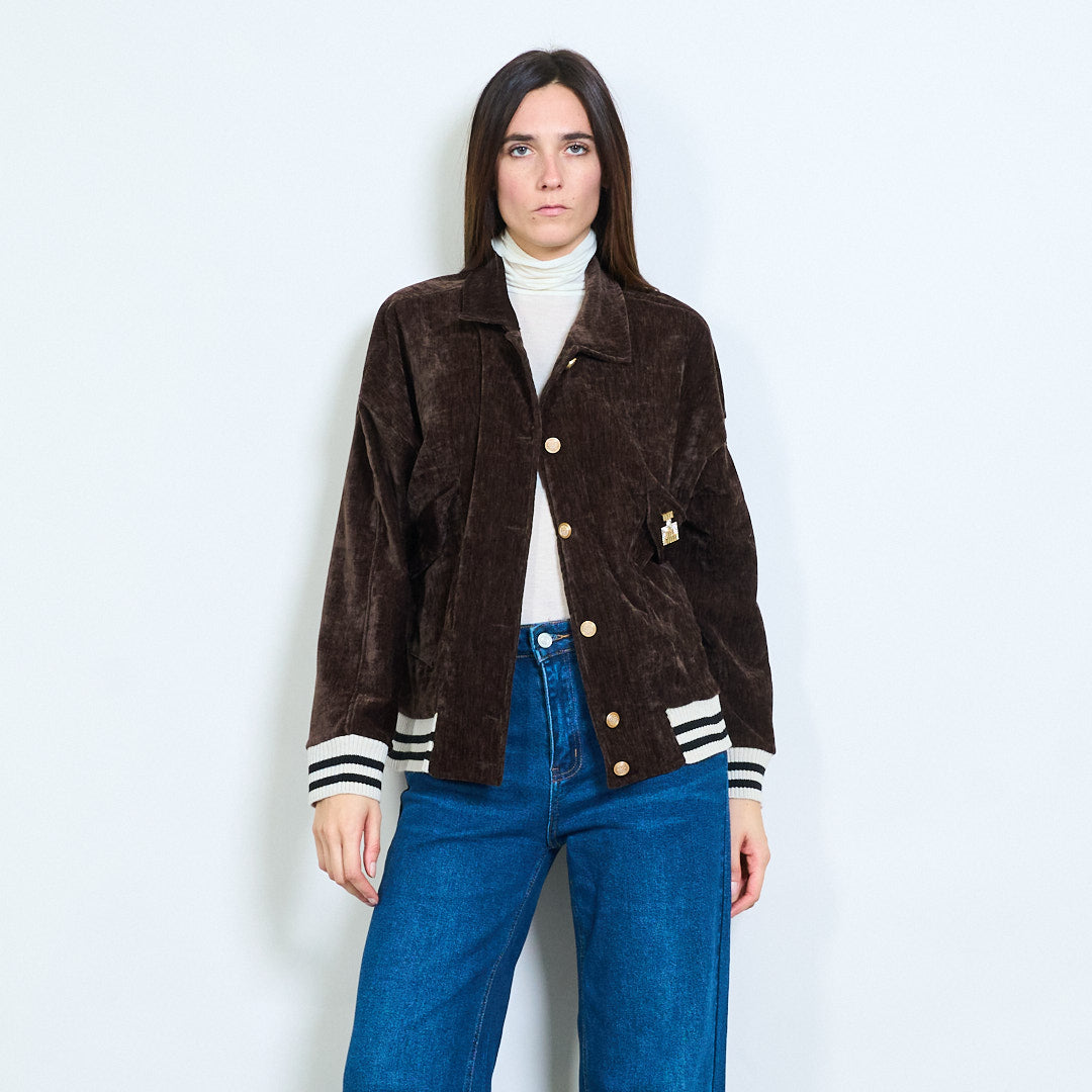 Veste avant boutonnée en velours côtelé, garniture universitaire, vente en gros