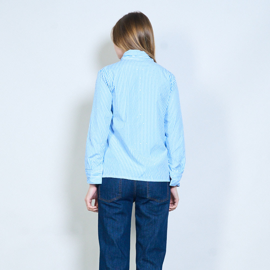 Blouse à col noué avec détails rayés en strass en gros