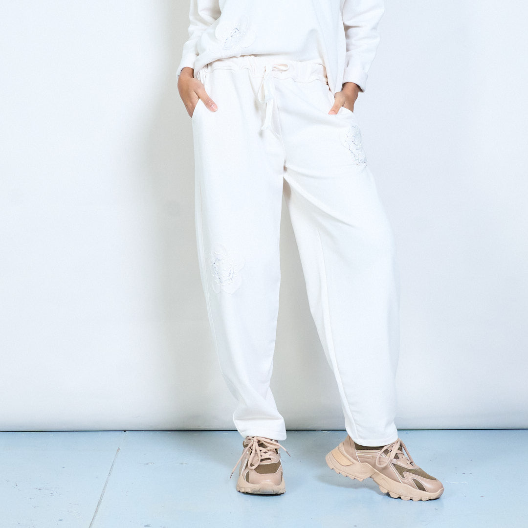 Pantalon de jogging décontracté avec appliques de strass floraux, vente en gros