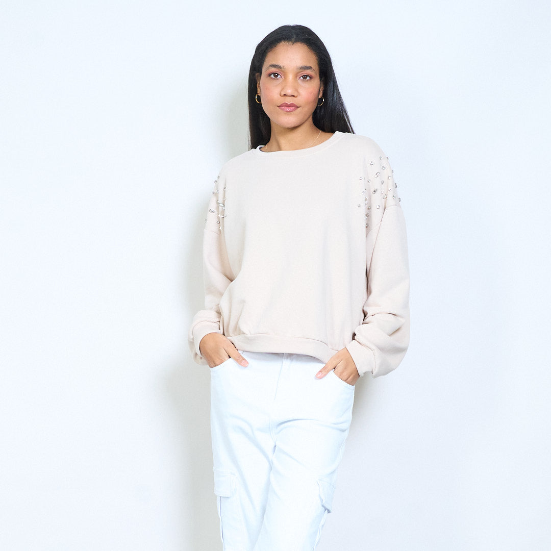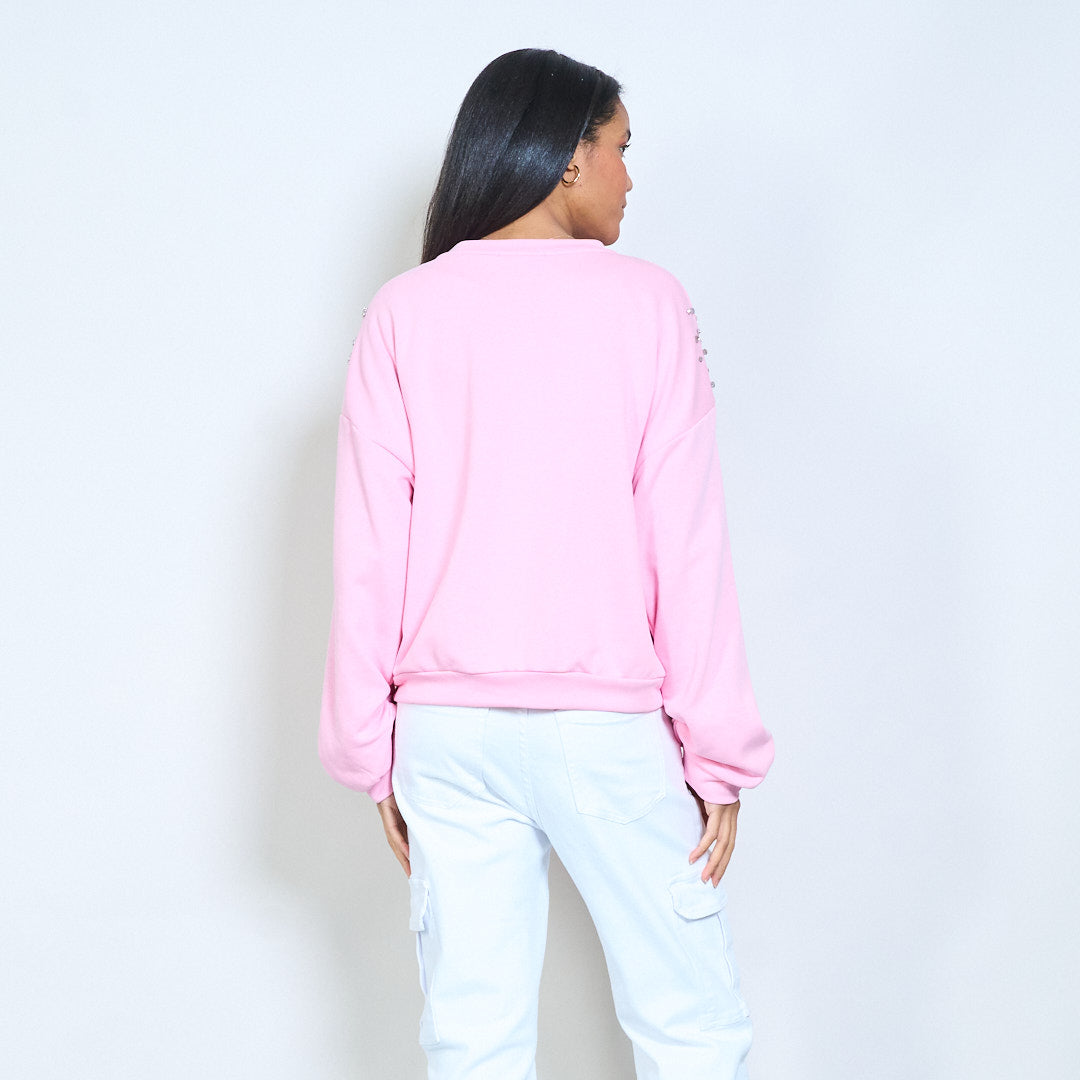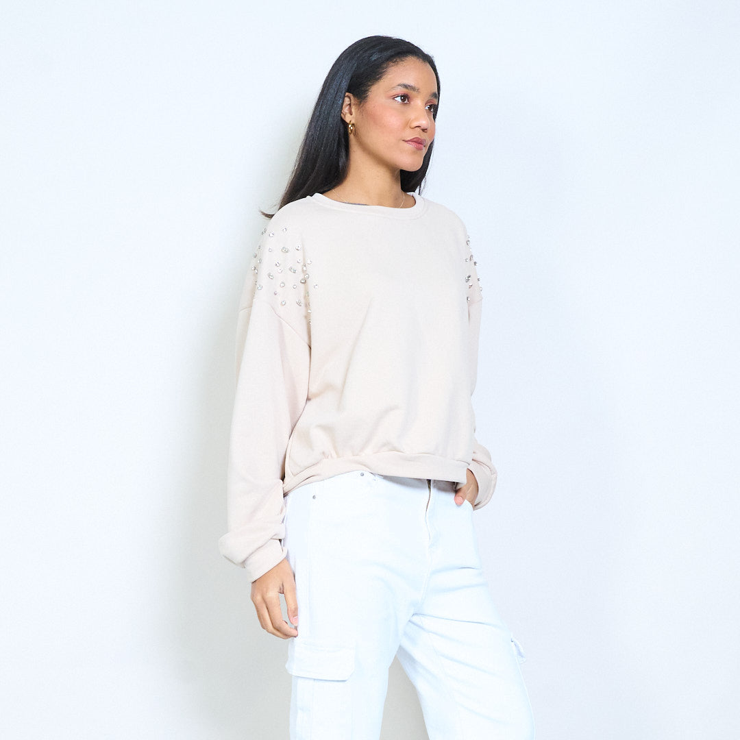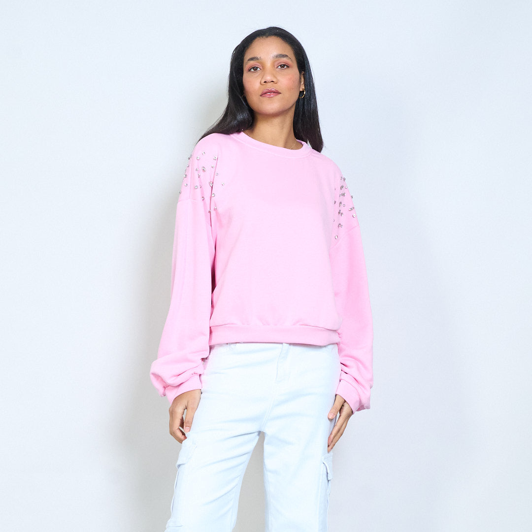 Sweat-shirt décontracté à manches longues avec détails d'épaule en strass, vente en gros