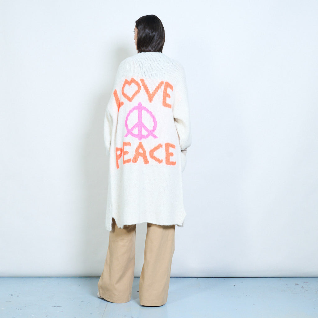 Cardigan long ouvert sur le devant avec graphique Love & Peace, vente en gros