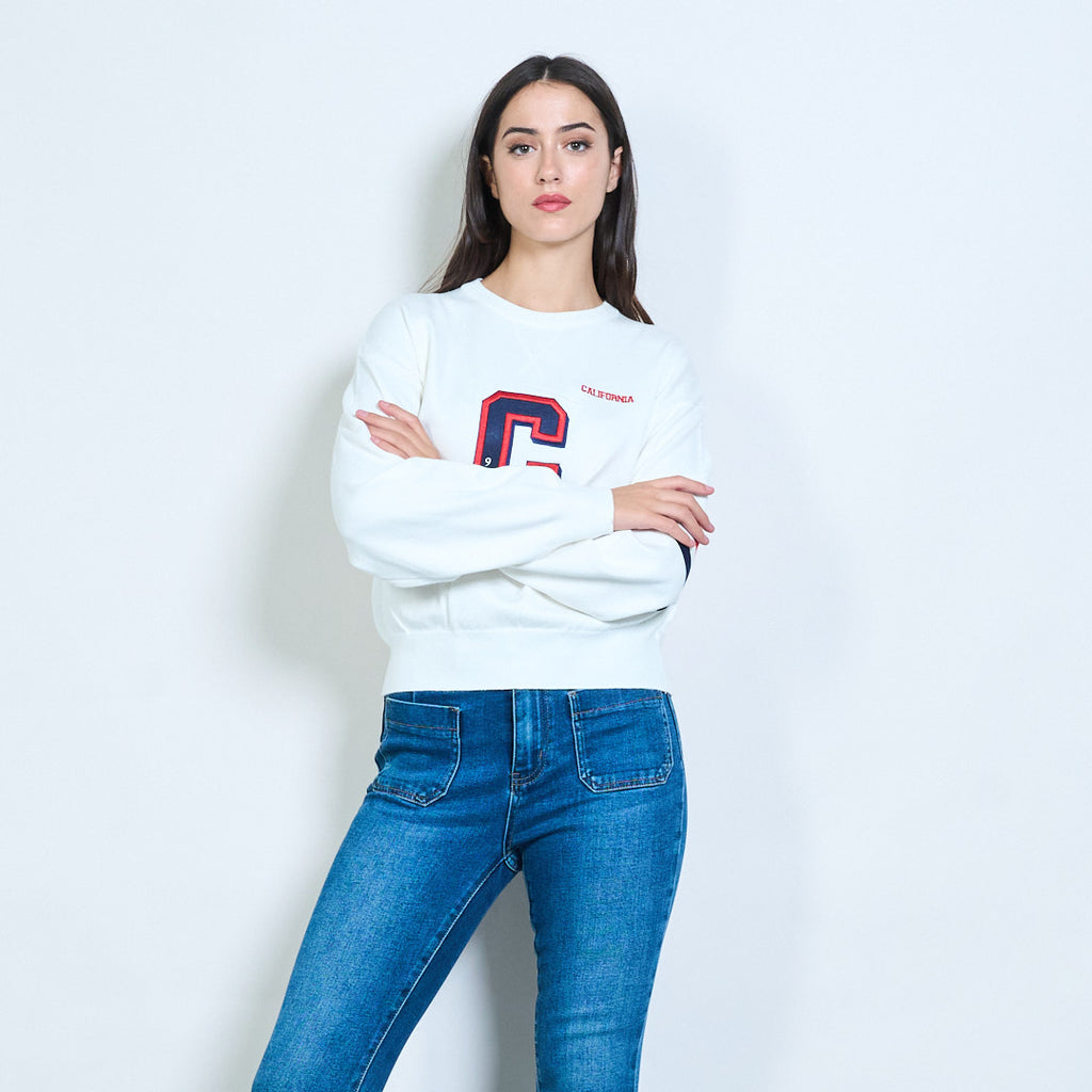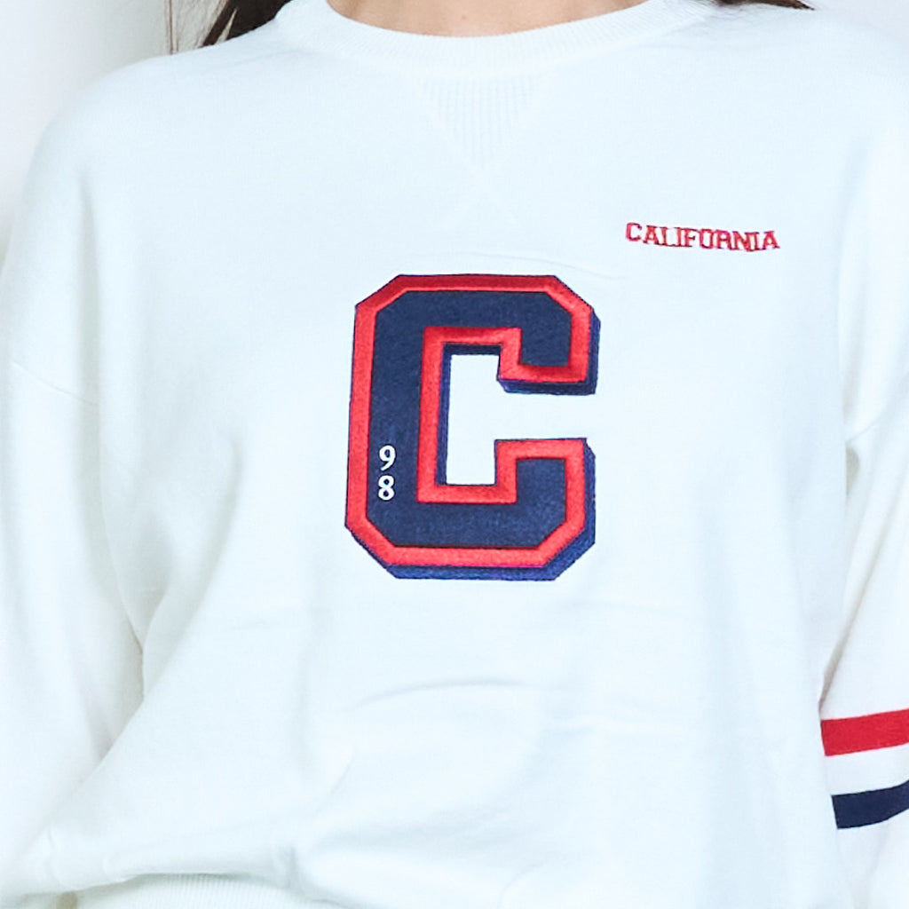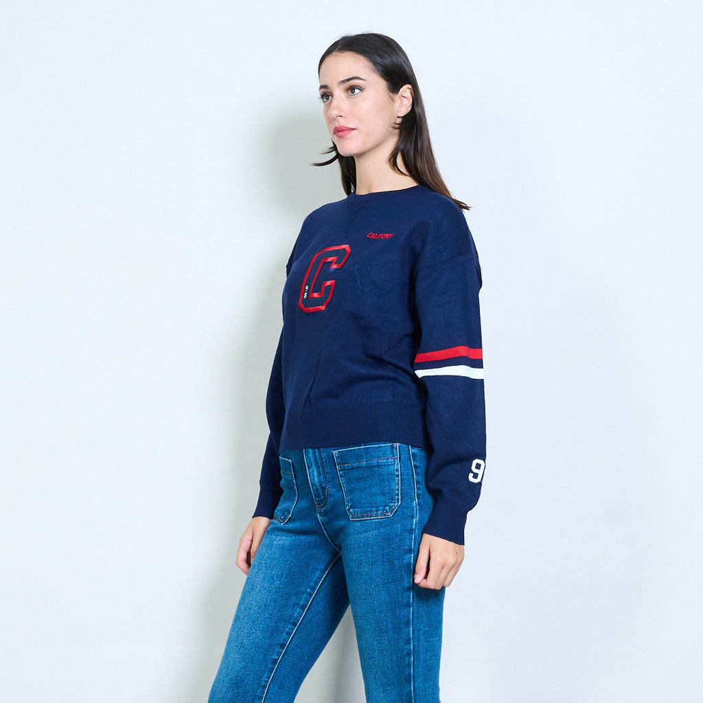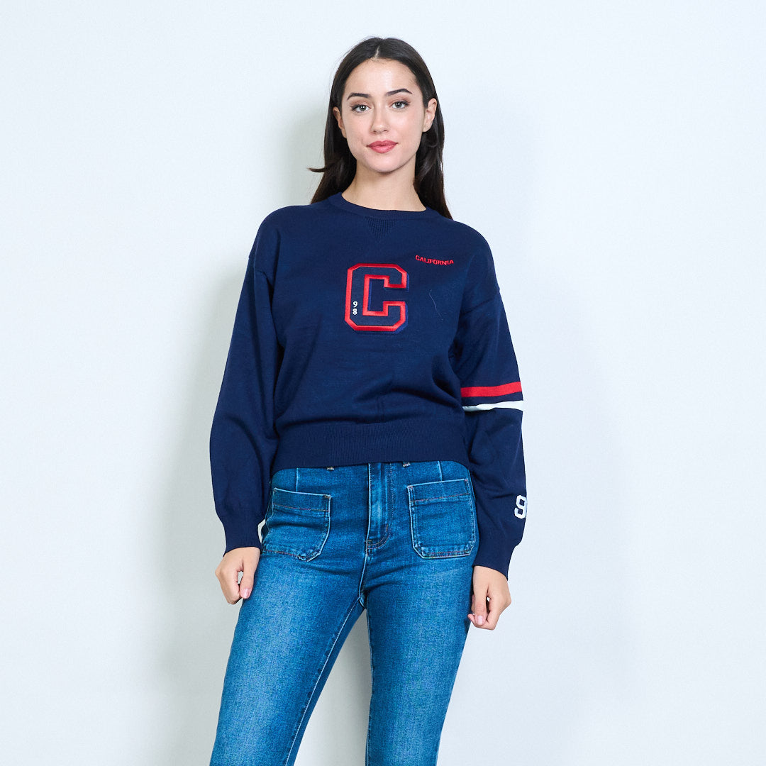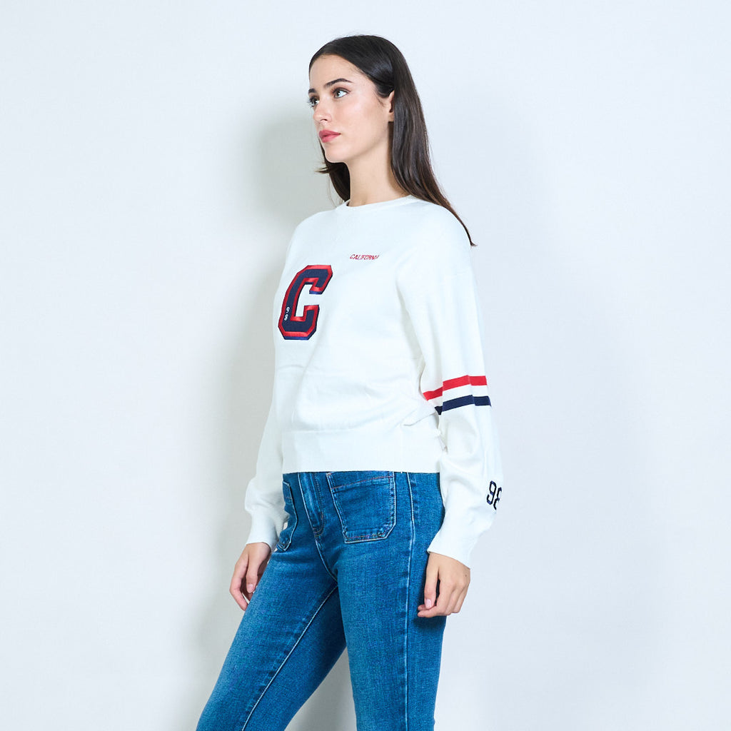 Pull coupe décontractée imprimé lettre collégiale "C" en gros