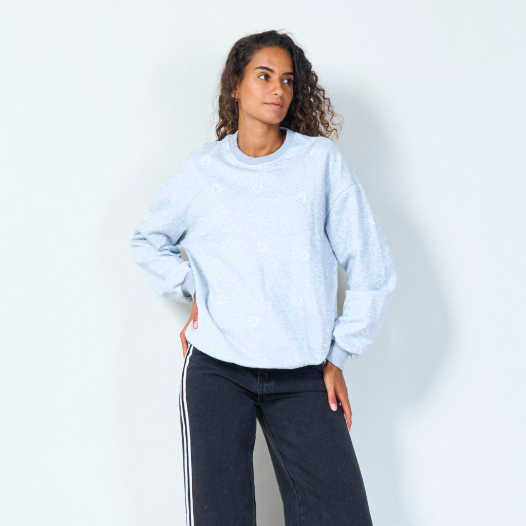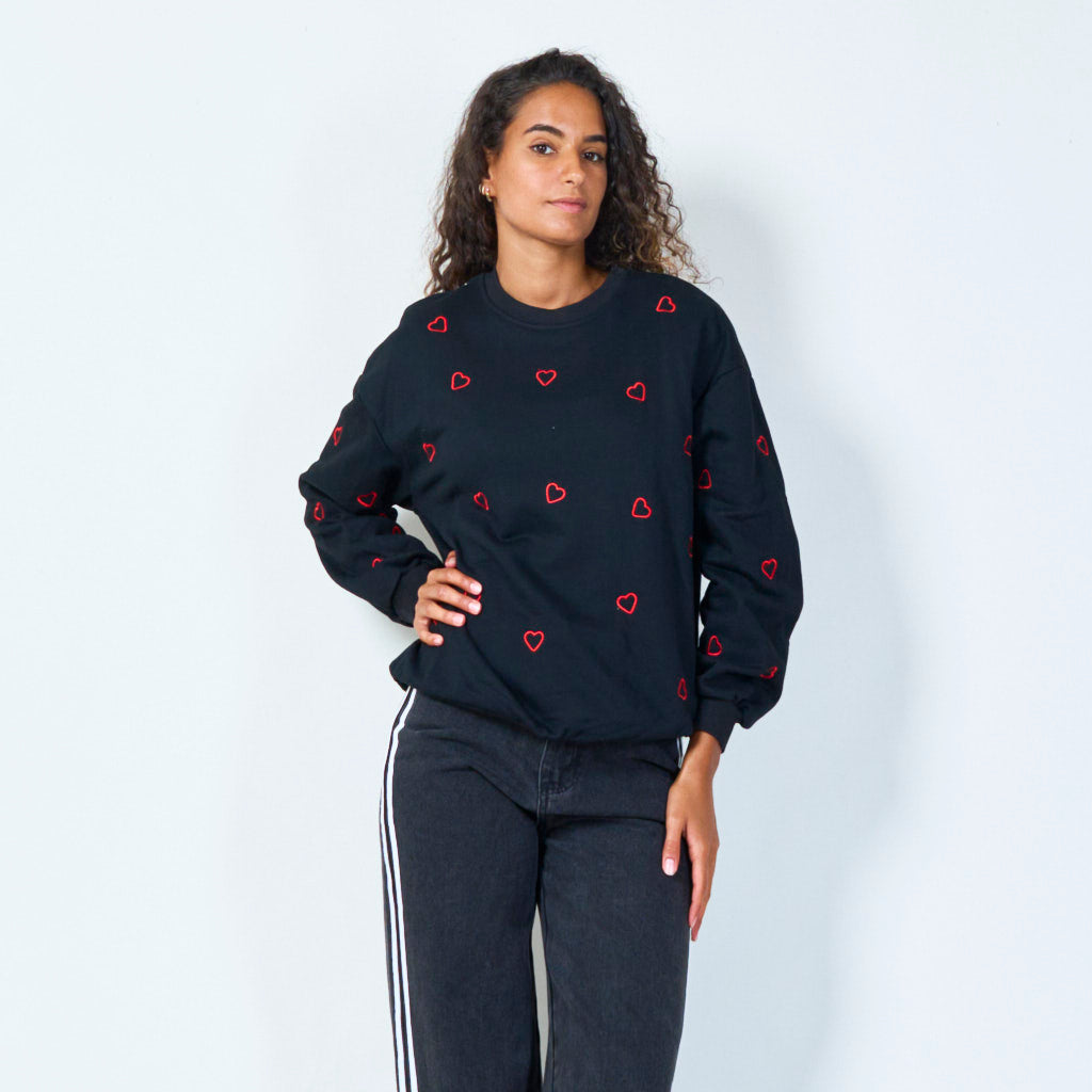 Sweat à cœur brodé avec des poignets nervurés en gros