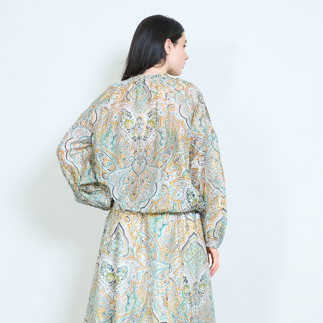 Chemisier à manches longues et col noué transparent imprimé Paisley, vente en gros