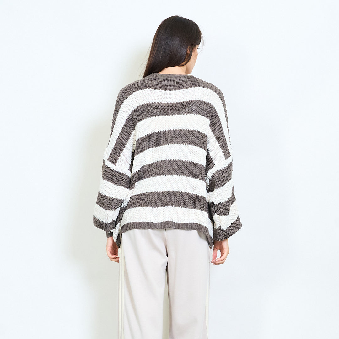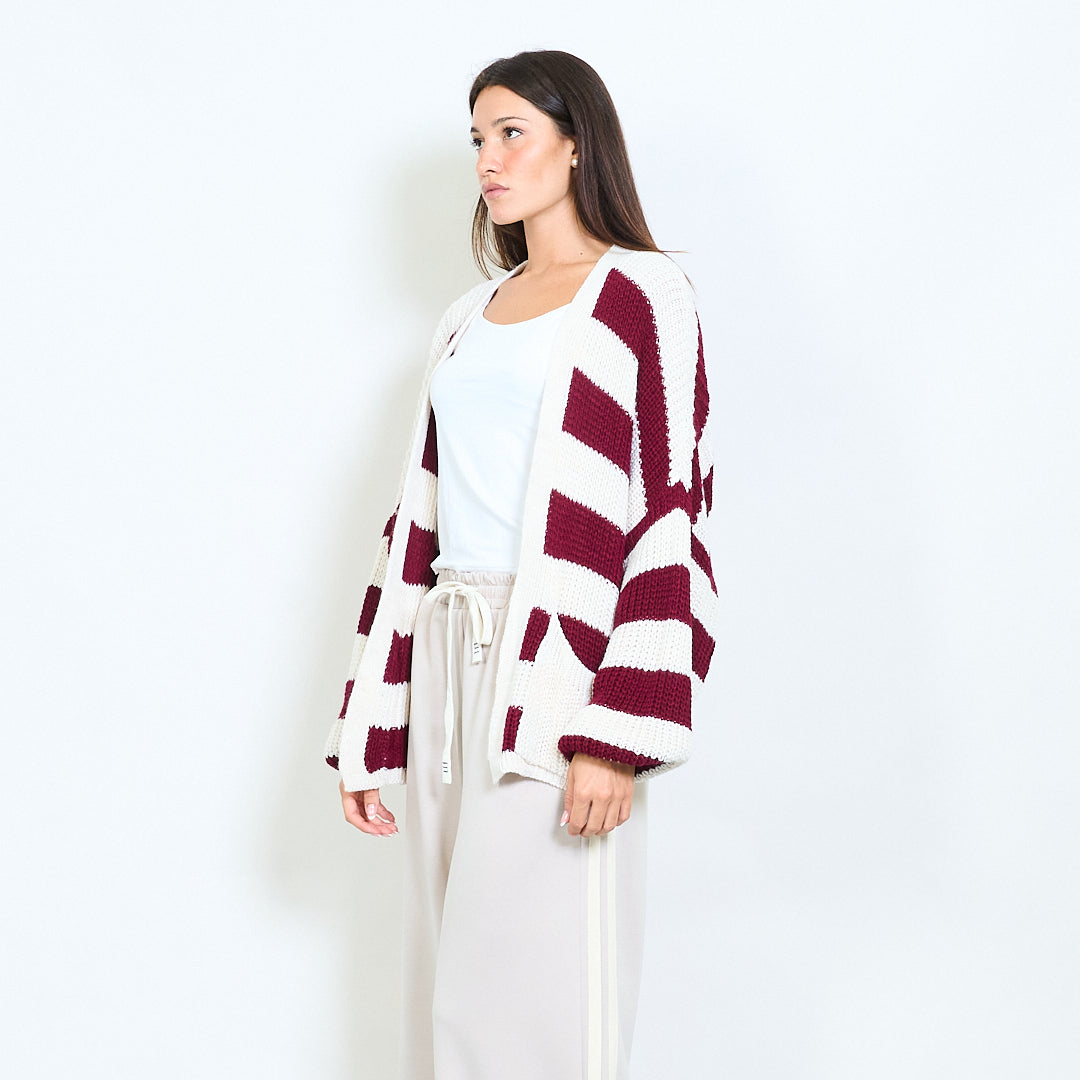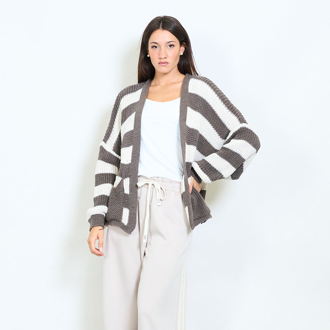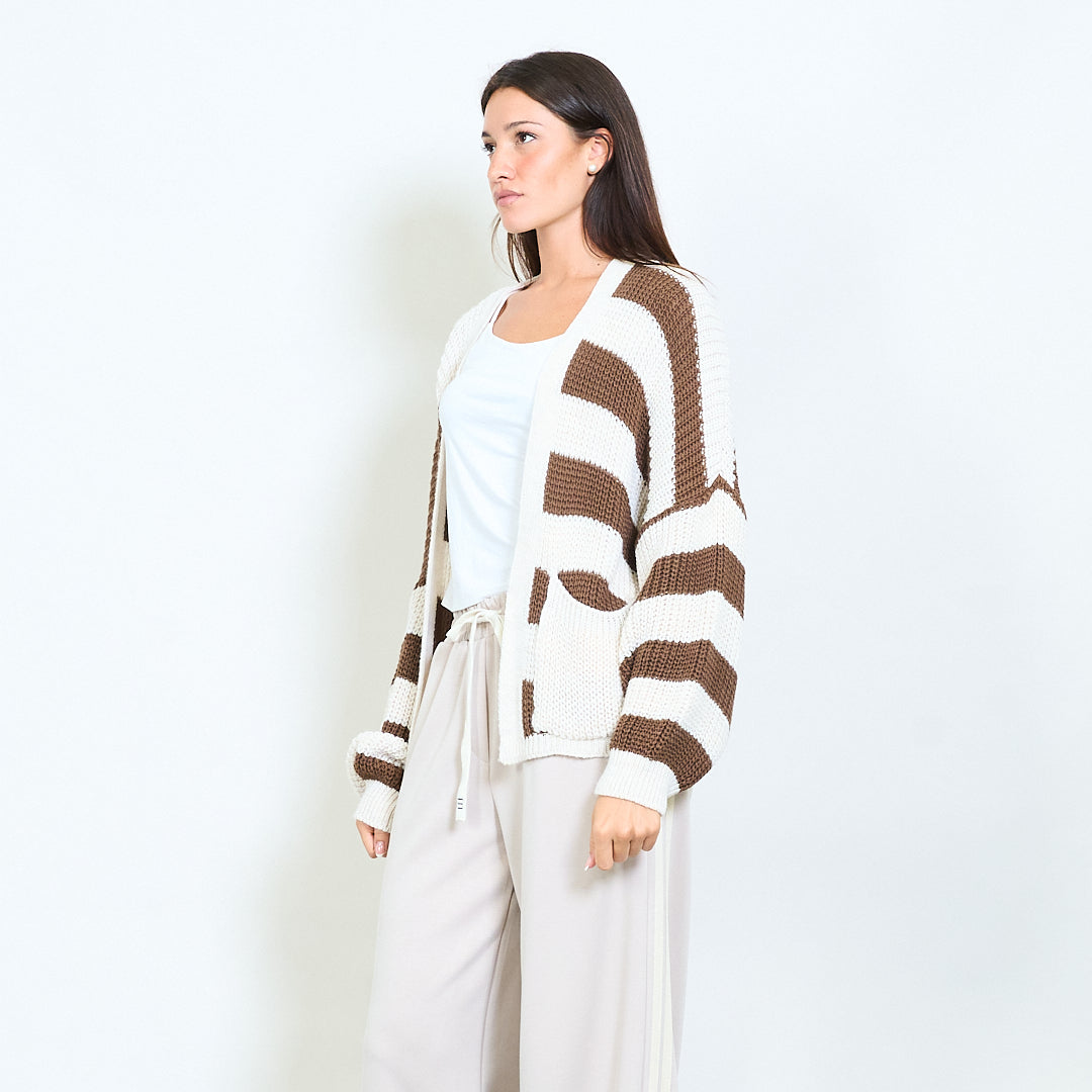 Cardigan à face ouverte avec motif de bande audacieux en gros