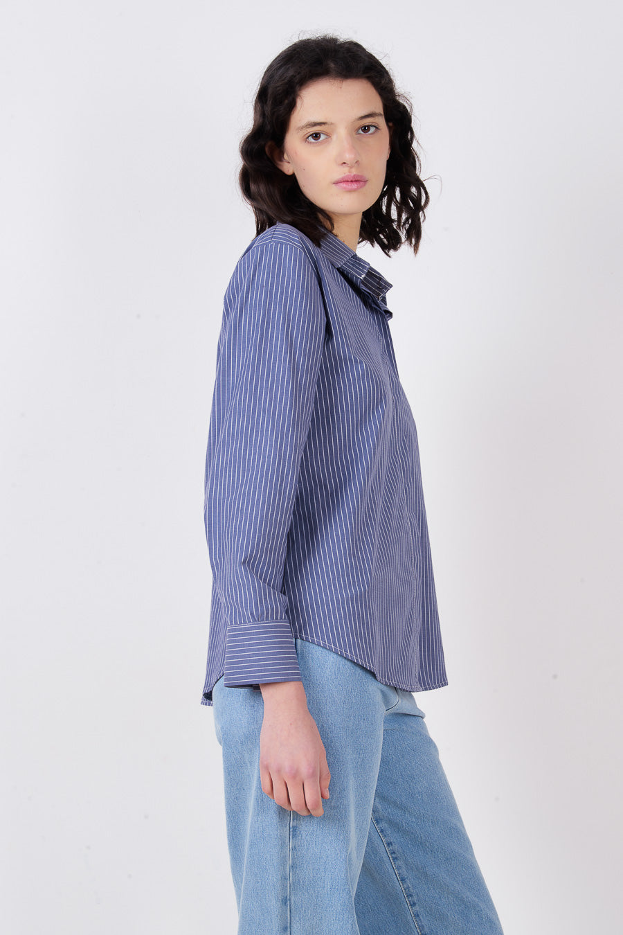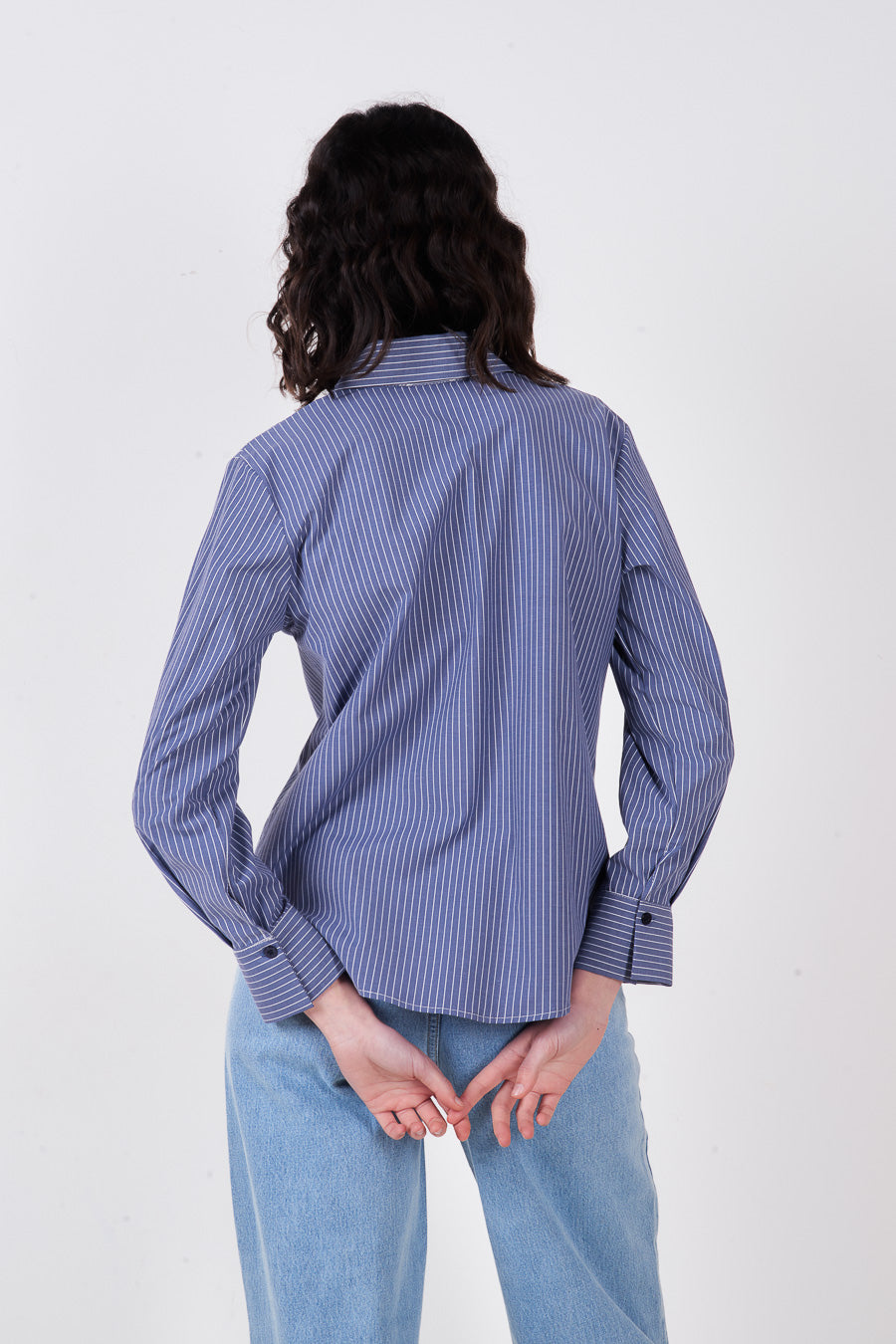 Chemise classique en coton à rayures et boutons sur le devant, vente en gros
