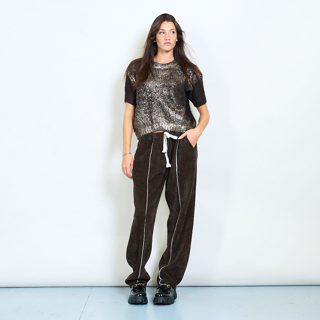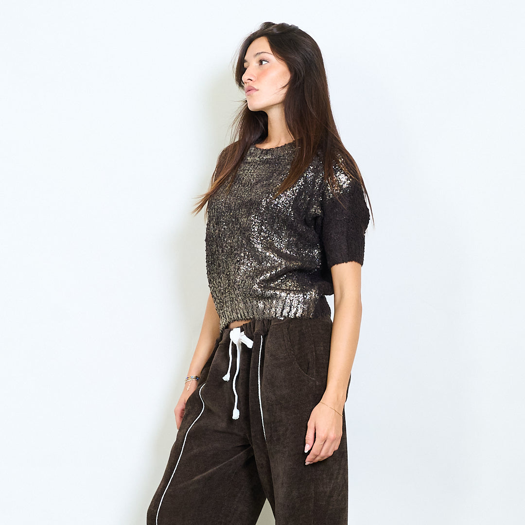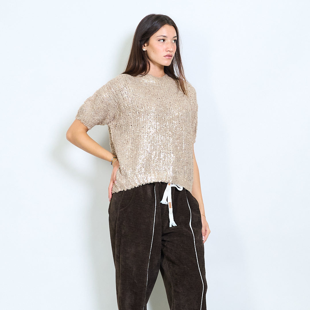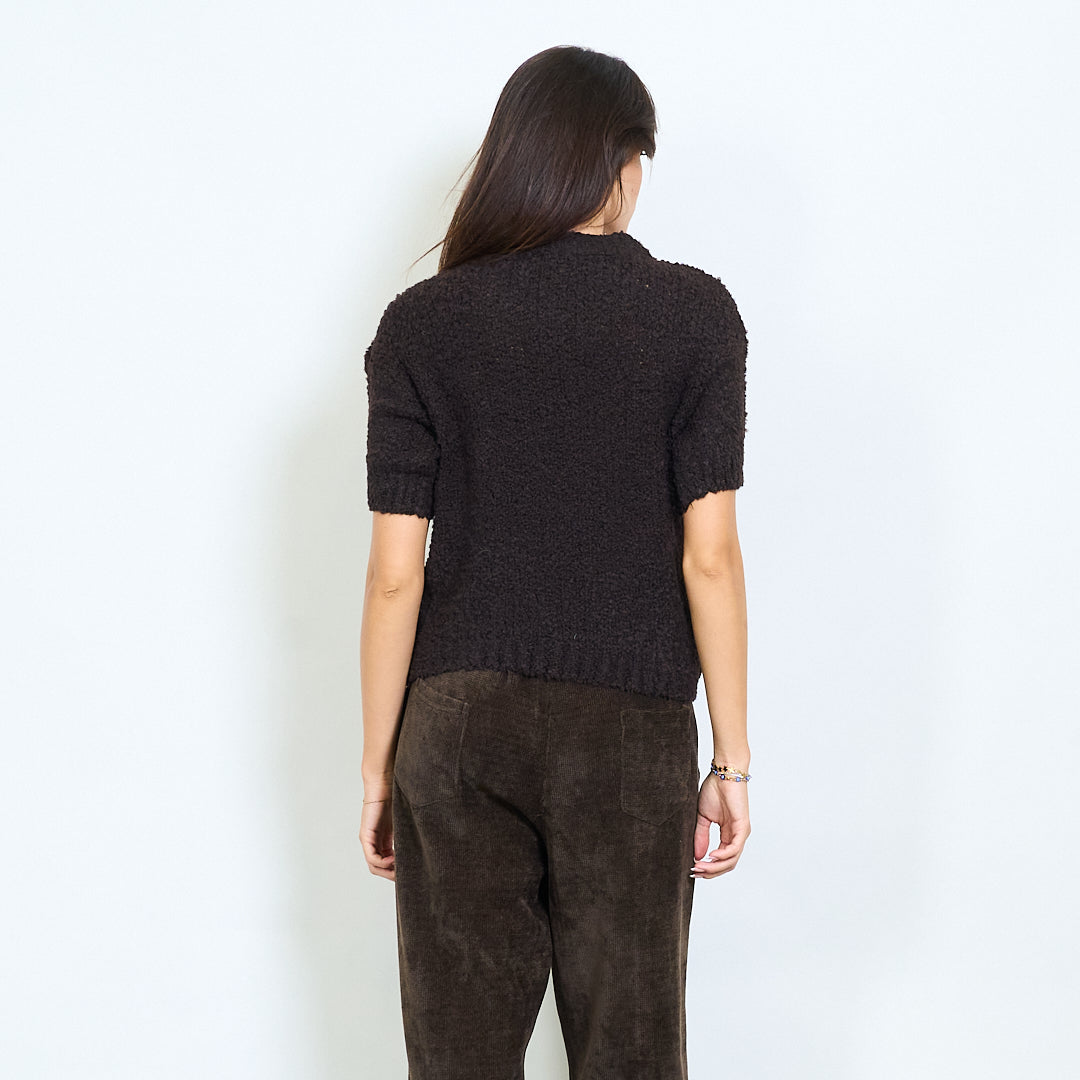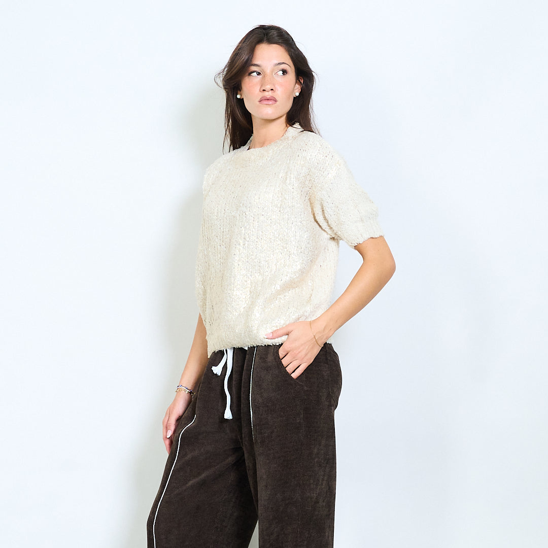 Haut en tricot texturé à manches courtes avec décolleté rond en gros