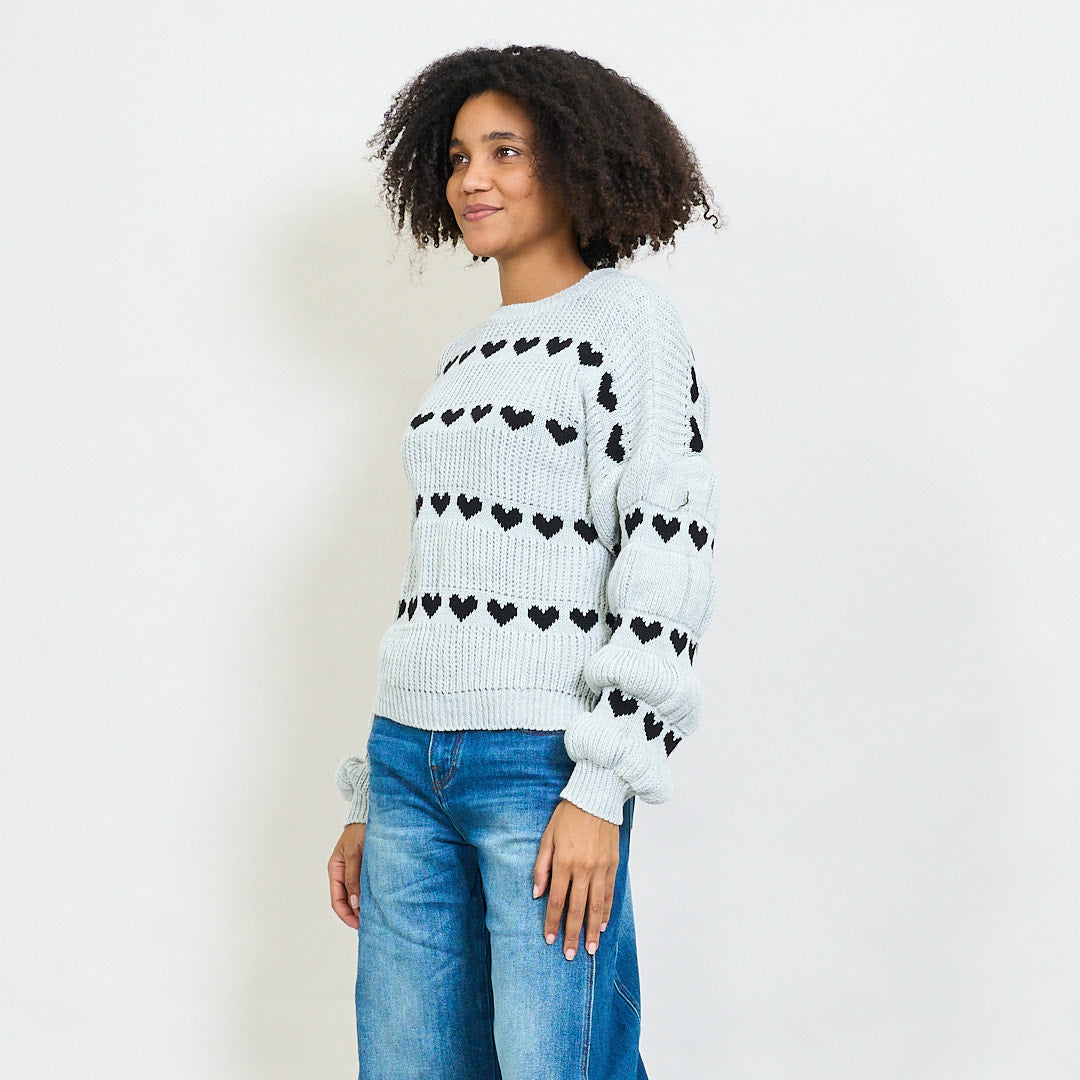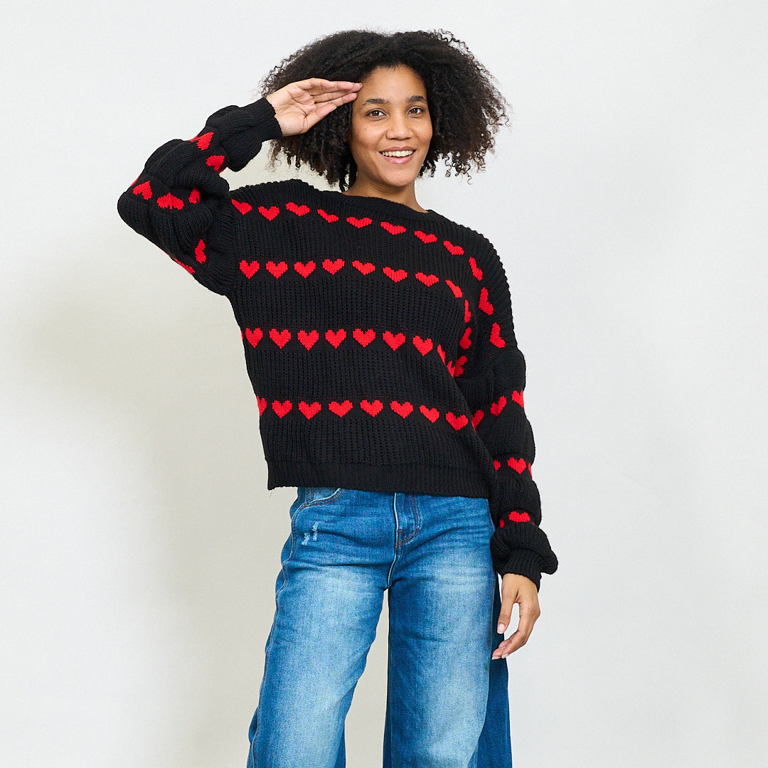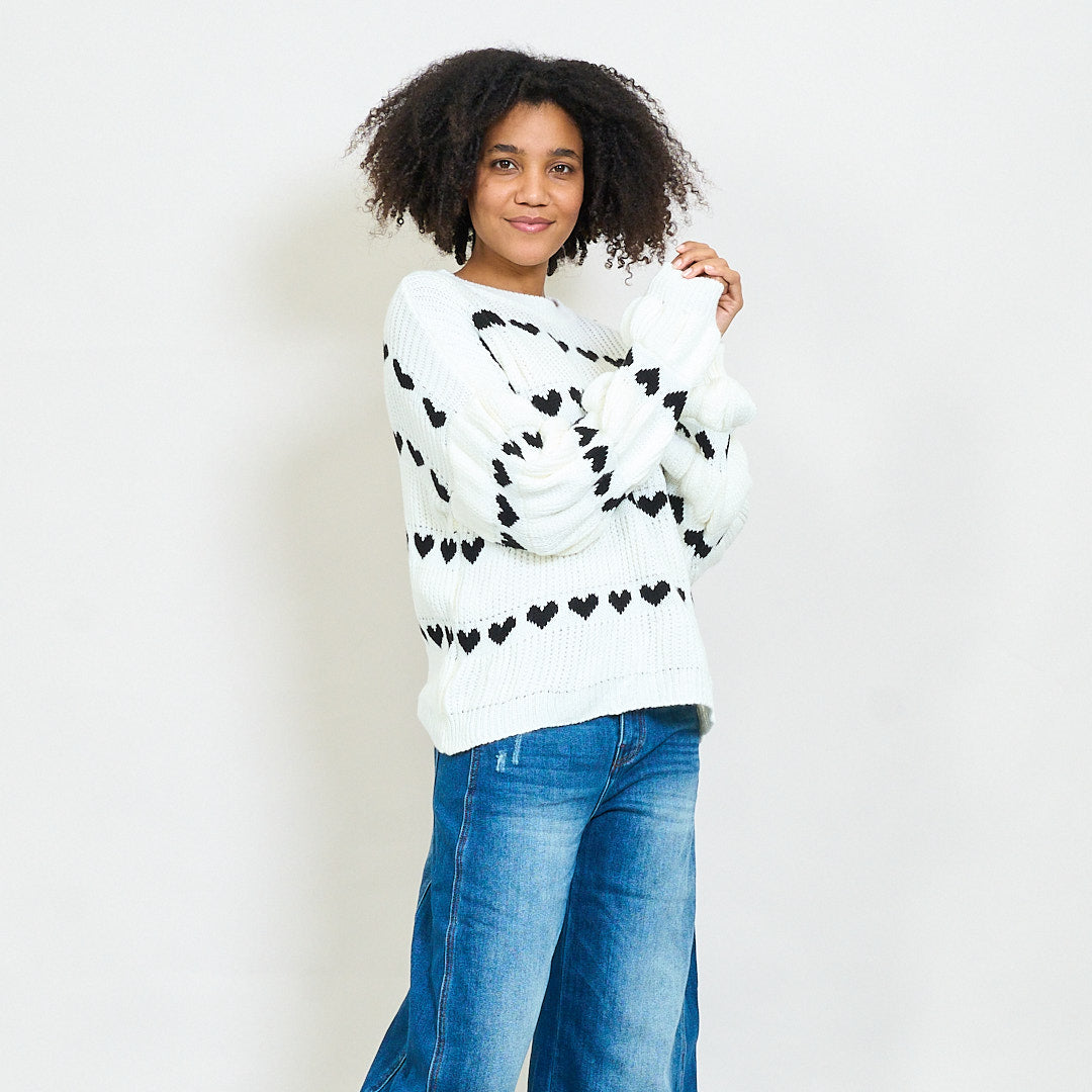 Pull en tricot épais avec motif de rayures de cœur en gros
