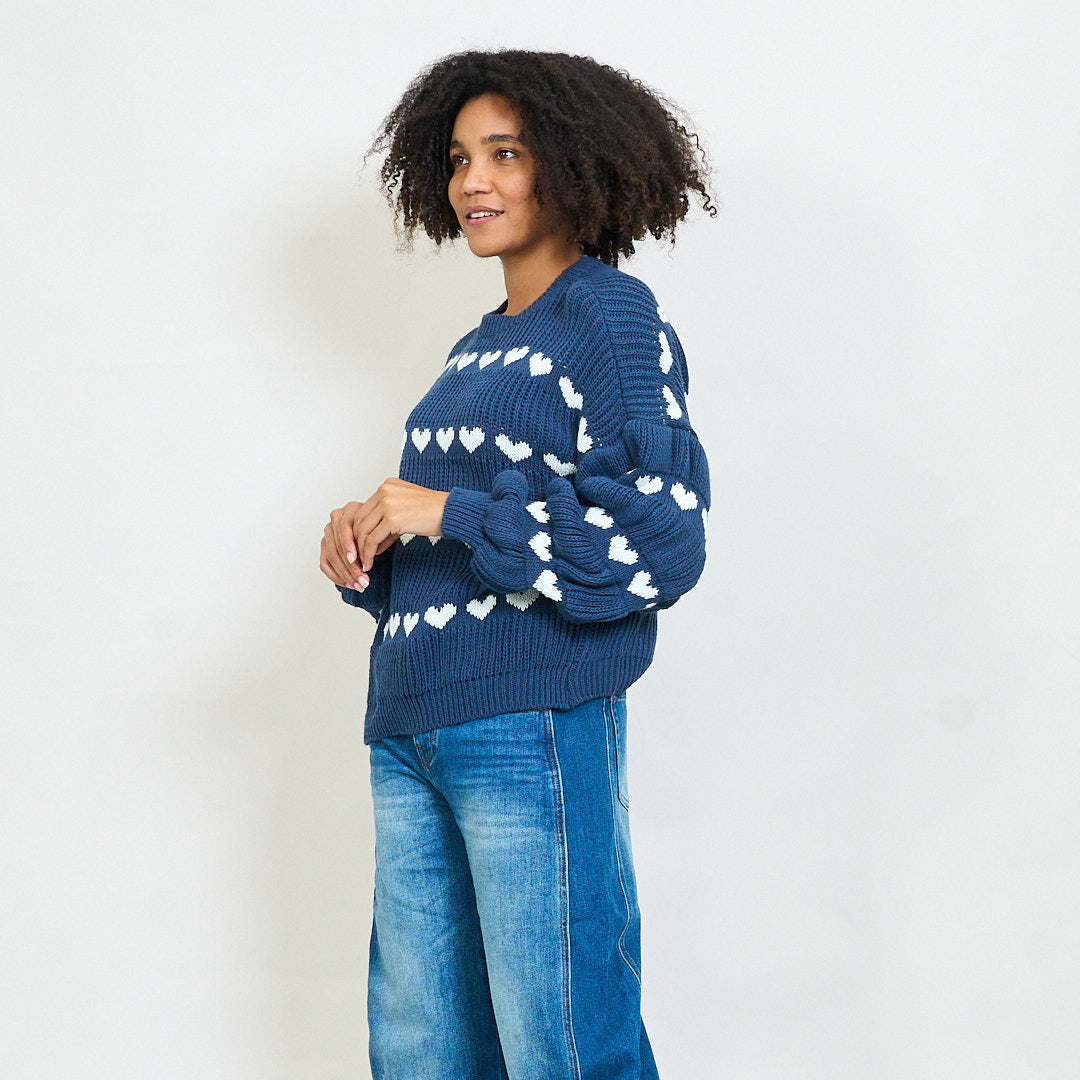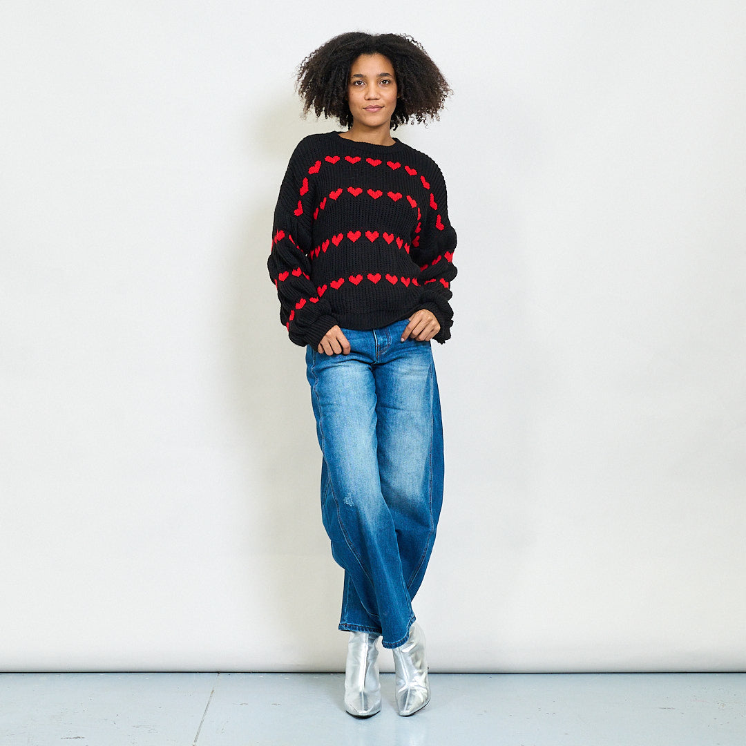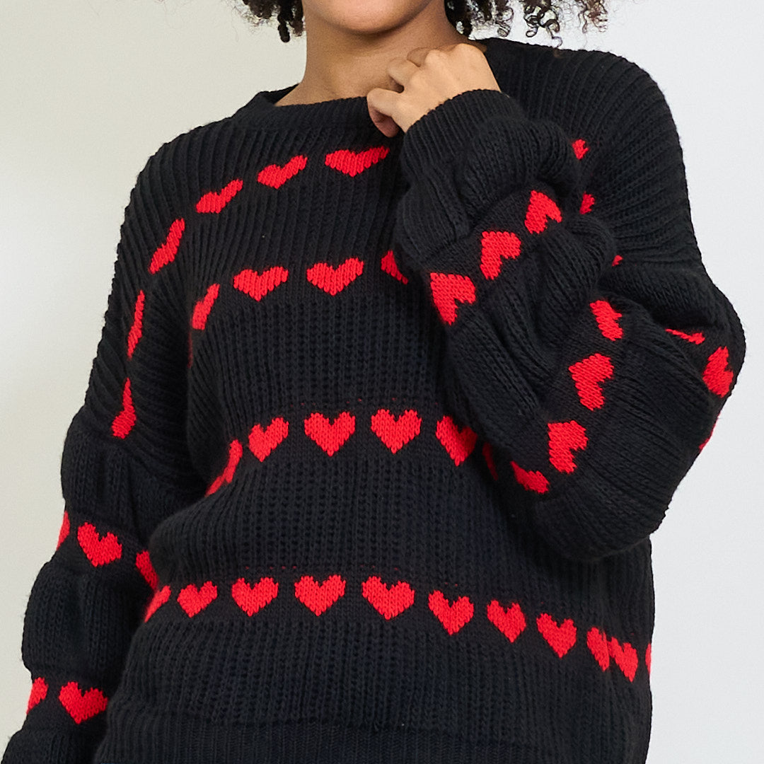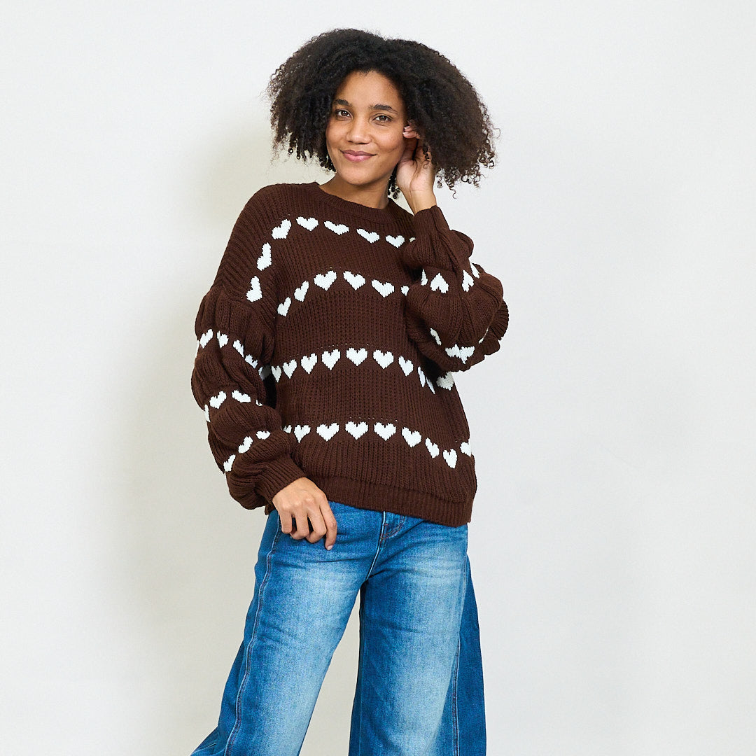 Pull en tricot épais avec motif de rayures de cœur en gros