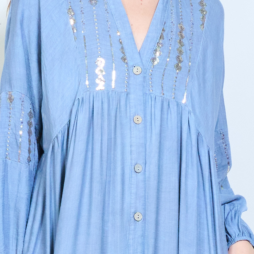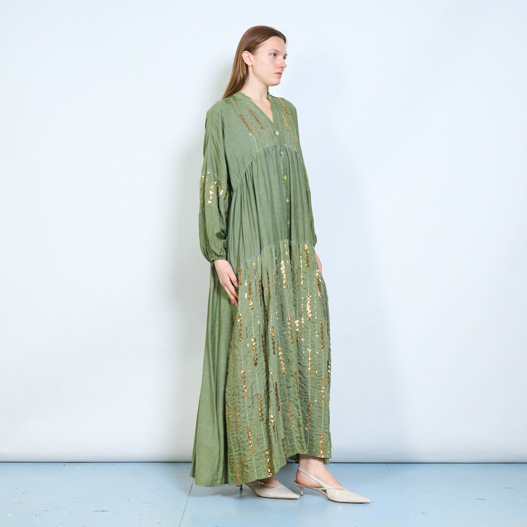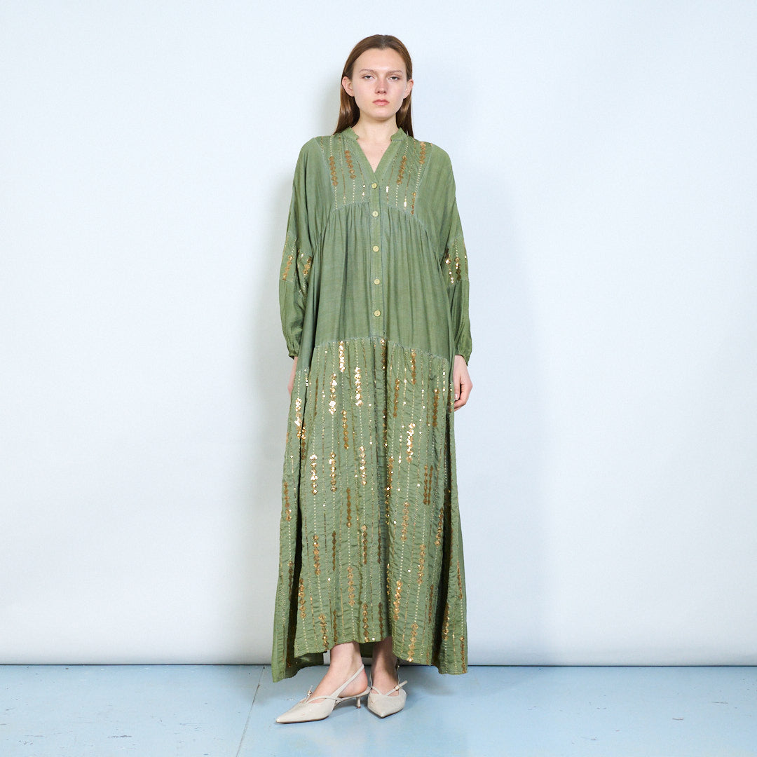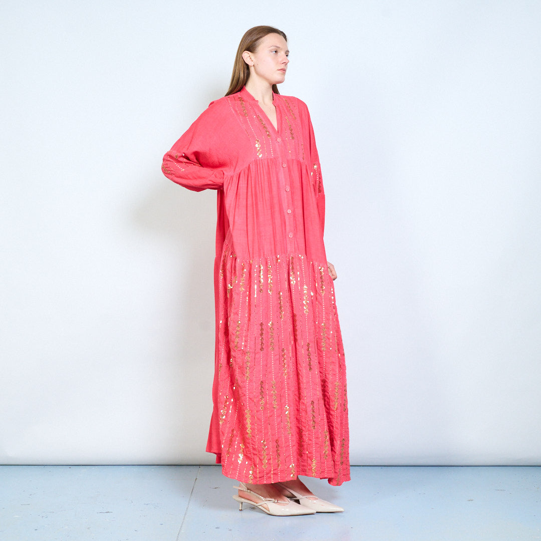 Robe midi en lin à panneaux brodés avec niveaux doux en gros