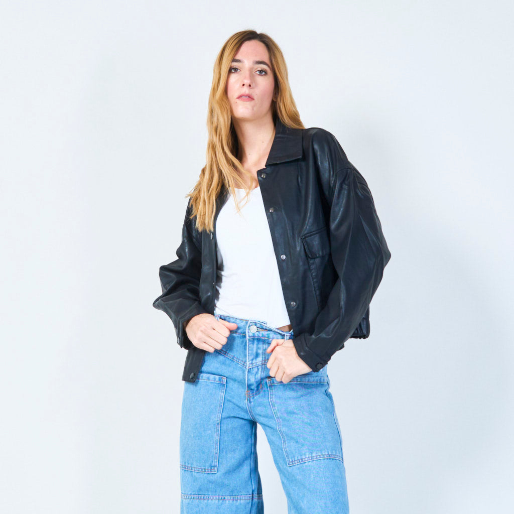 Veste en cuir boutonnée recadrée en gros