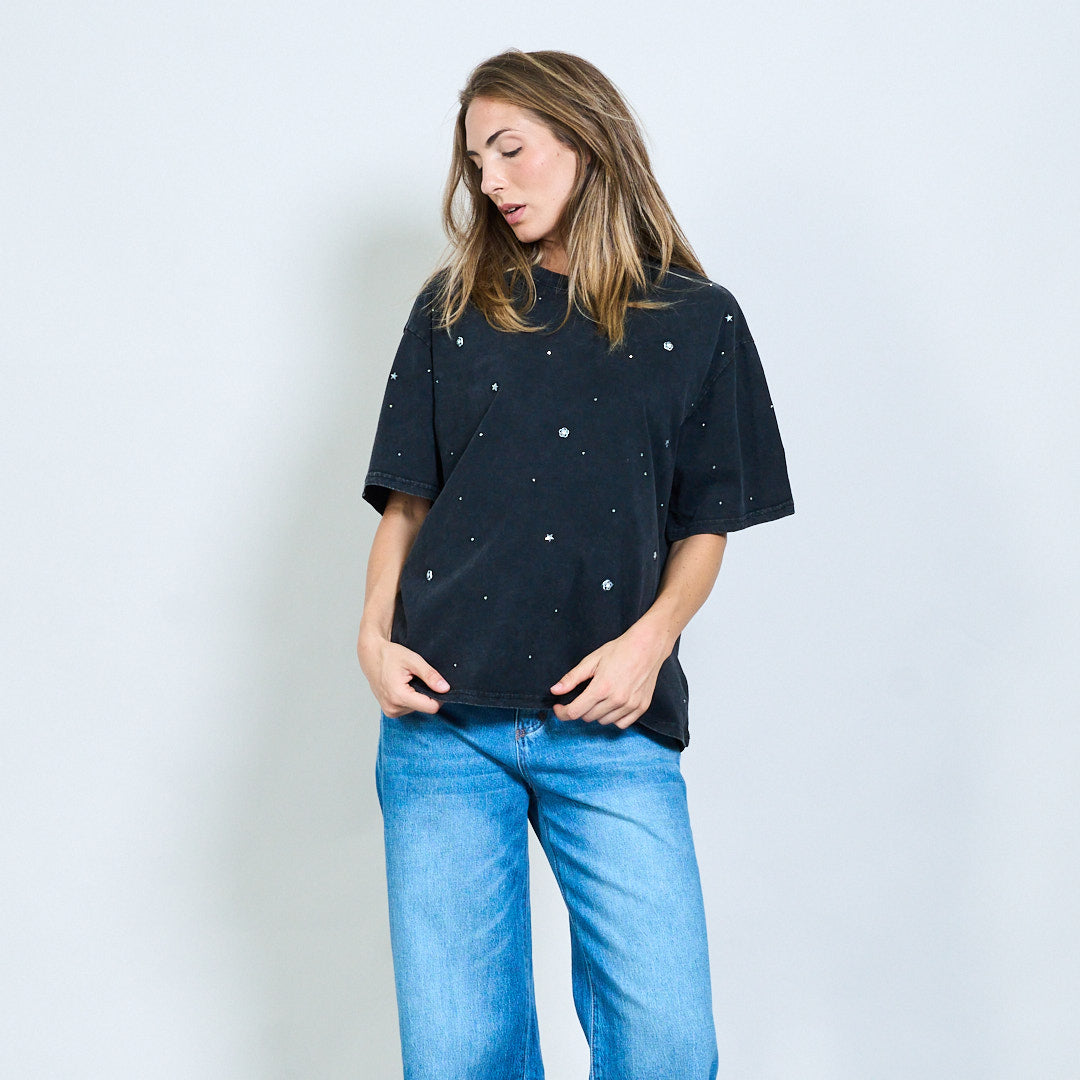 Star et strass de ramiage t-shirt surdimensionné en gros en gros