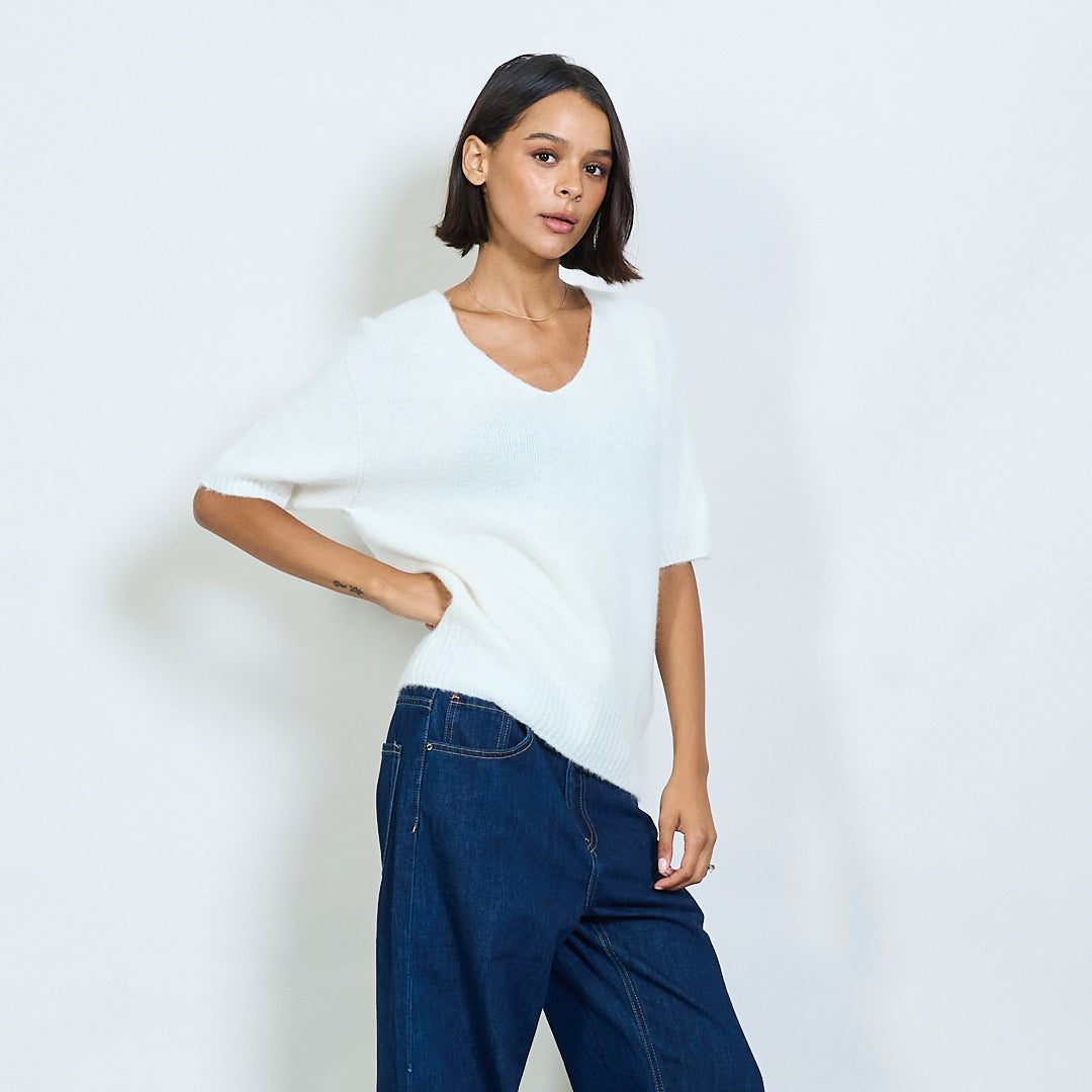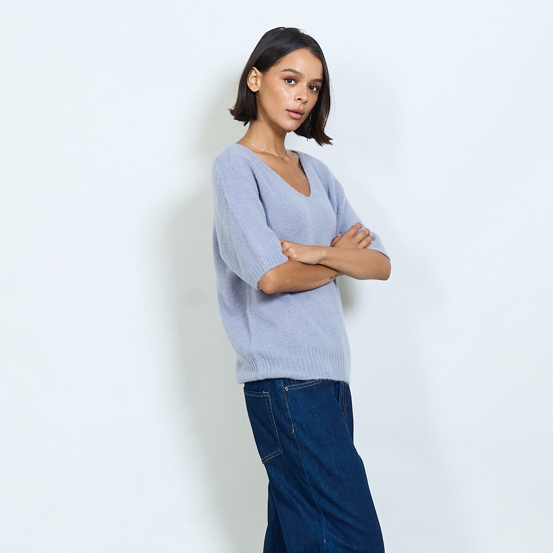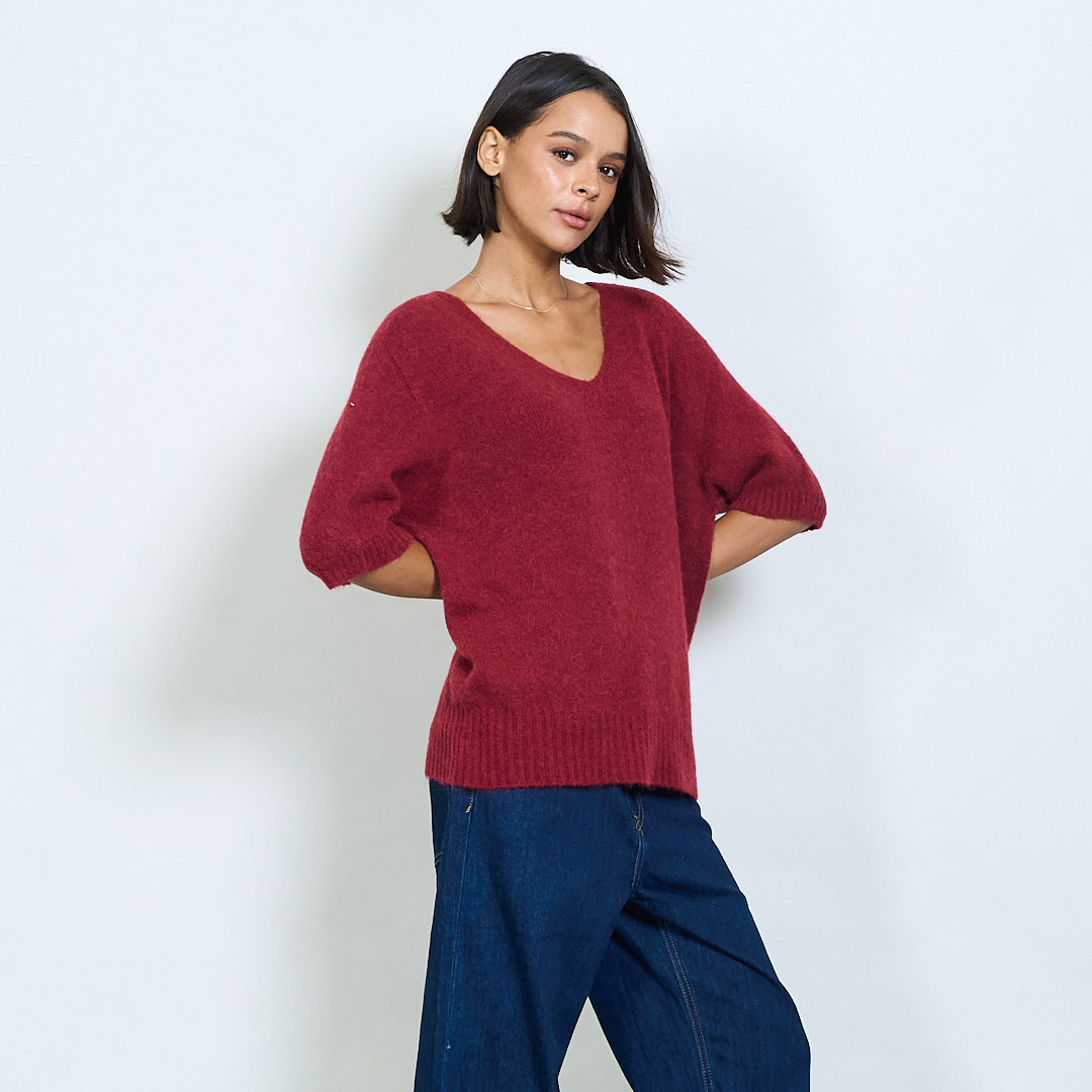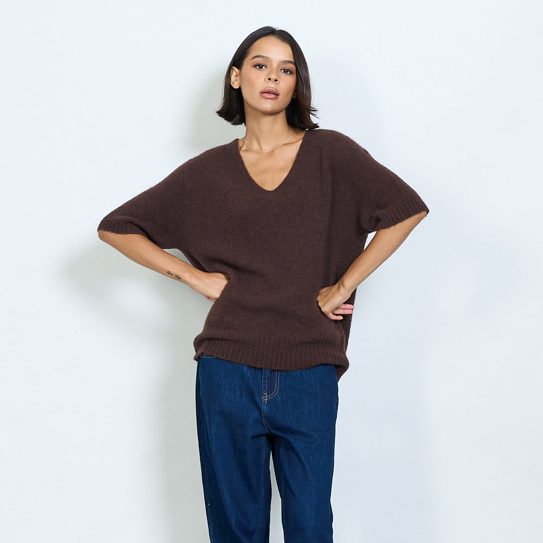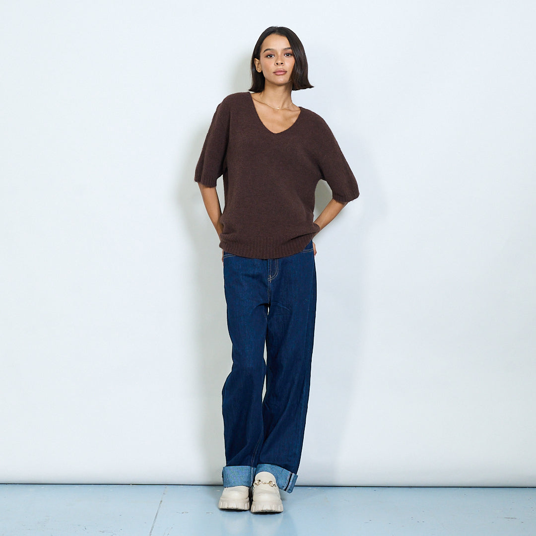 Pilluche à col courte en tricot à manche en V en gros