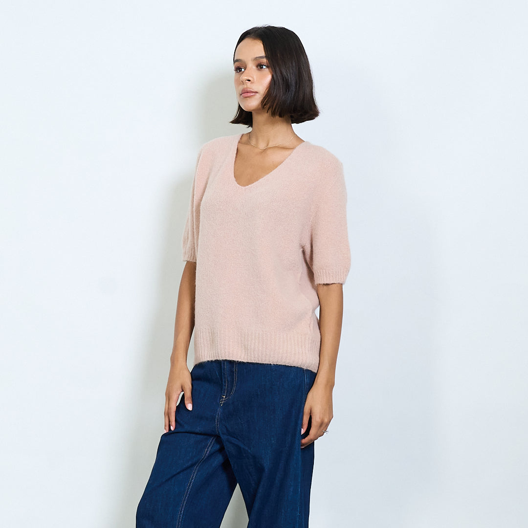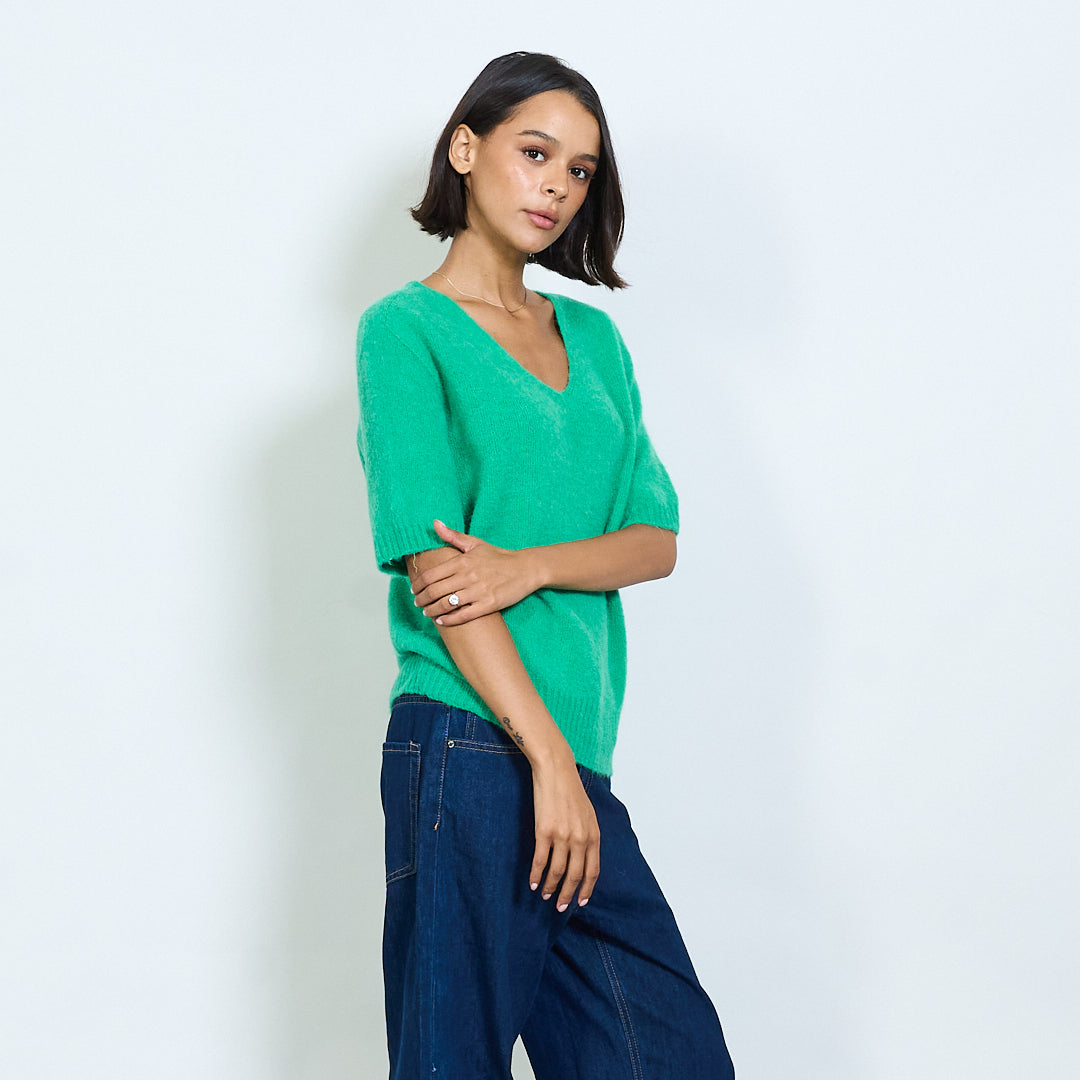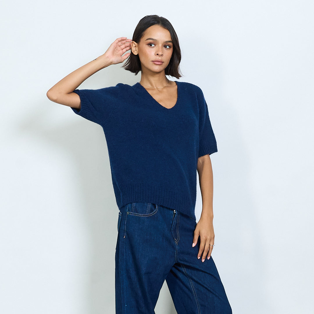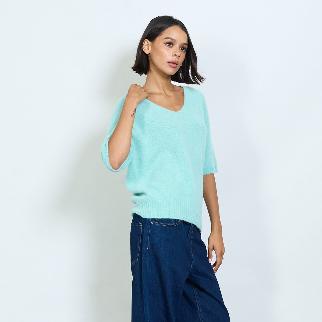 Pilluche à col courte en tricot à manche en V en gros