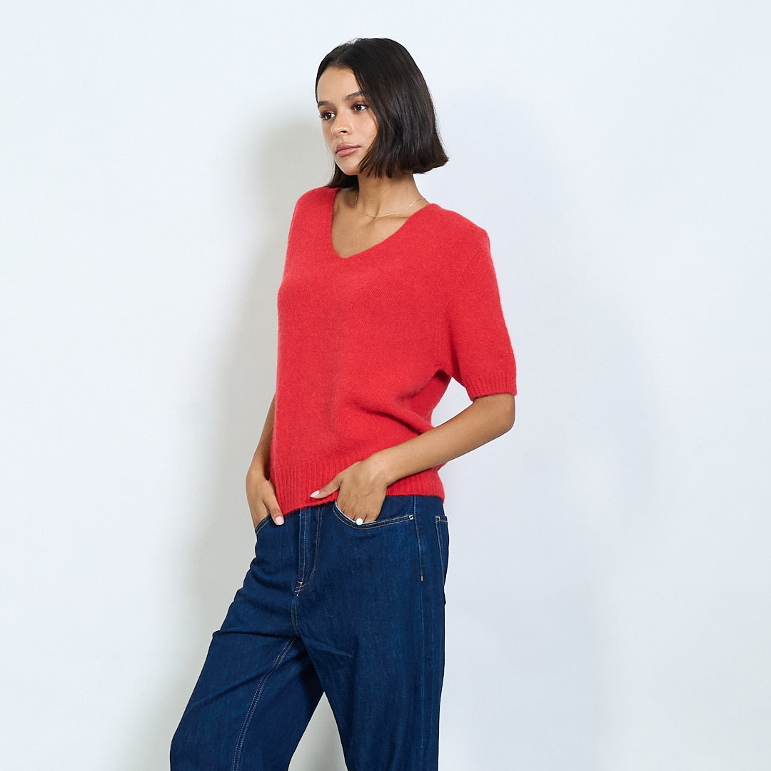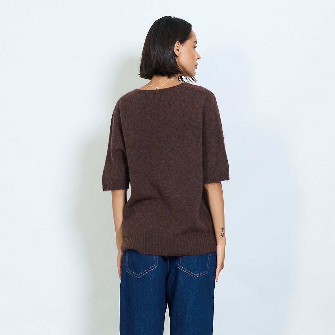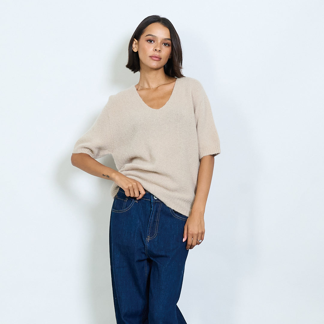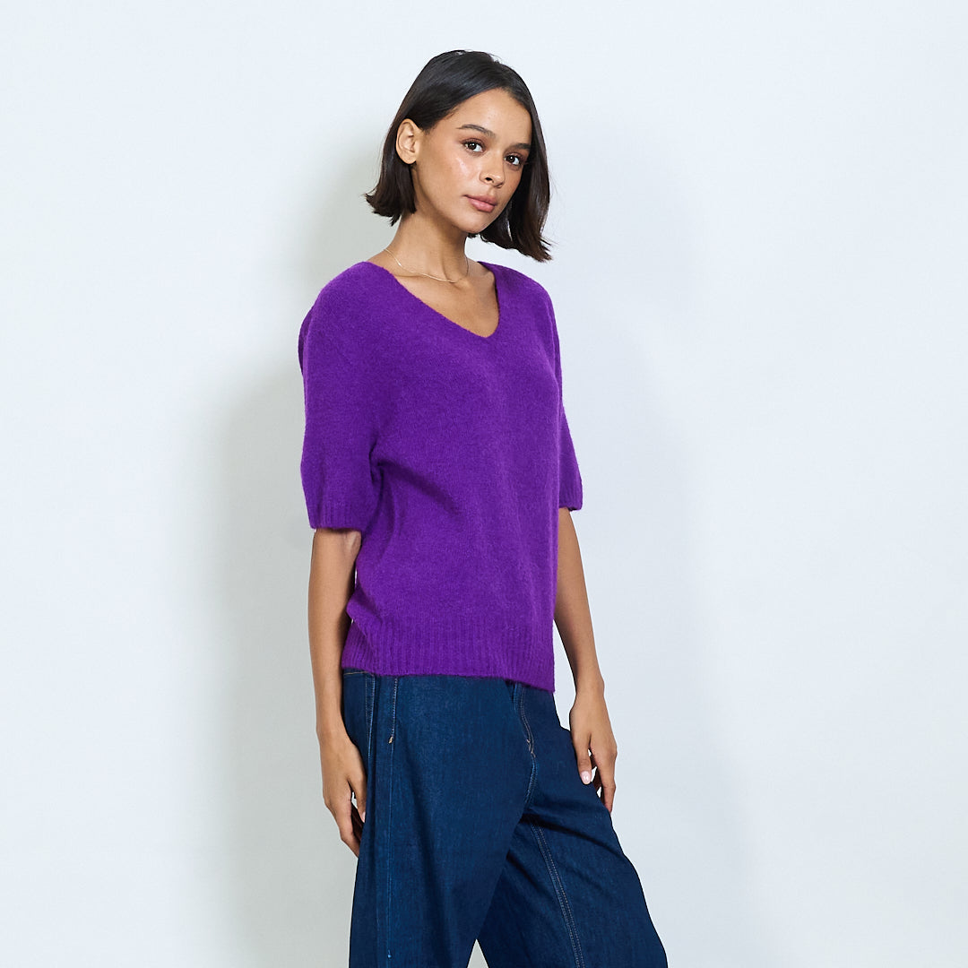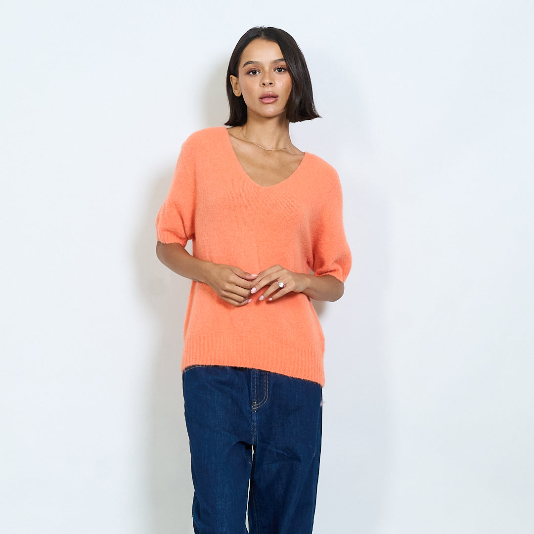 Pilluche à col courte en tricot à manche en V en gros