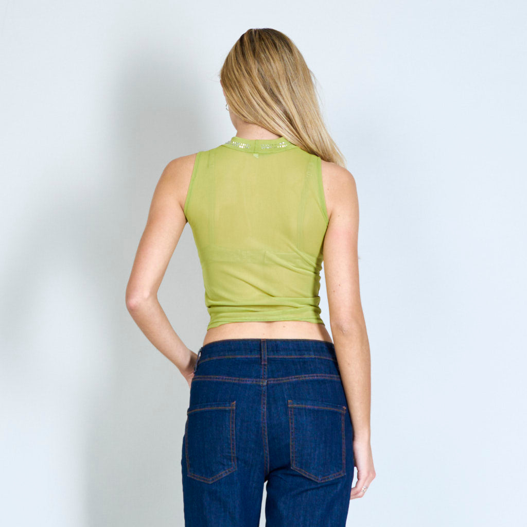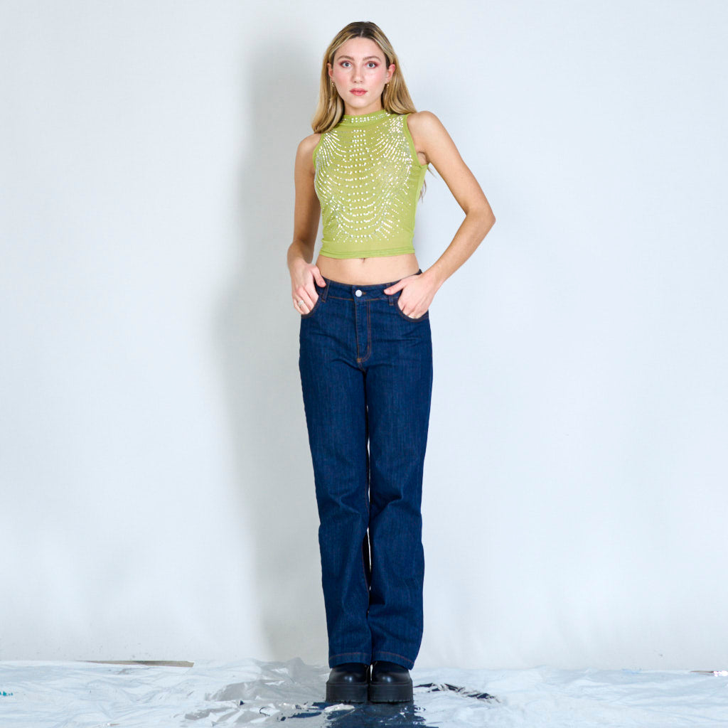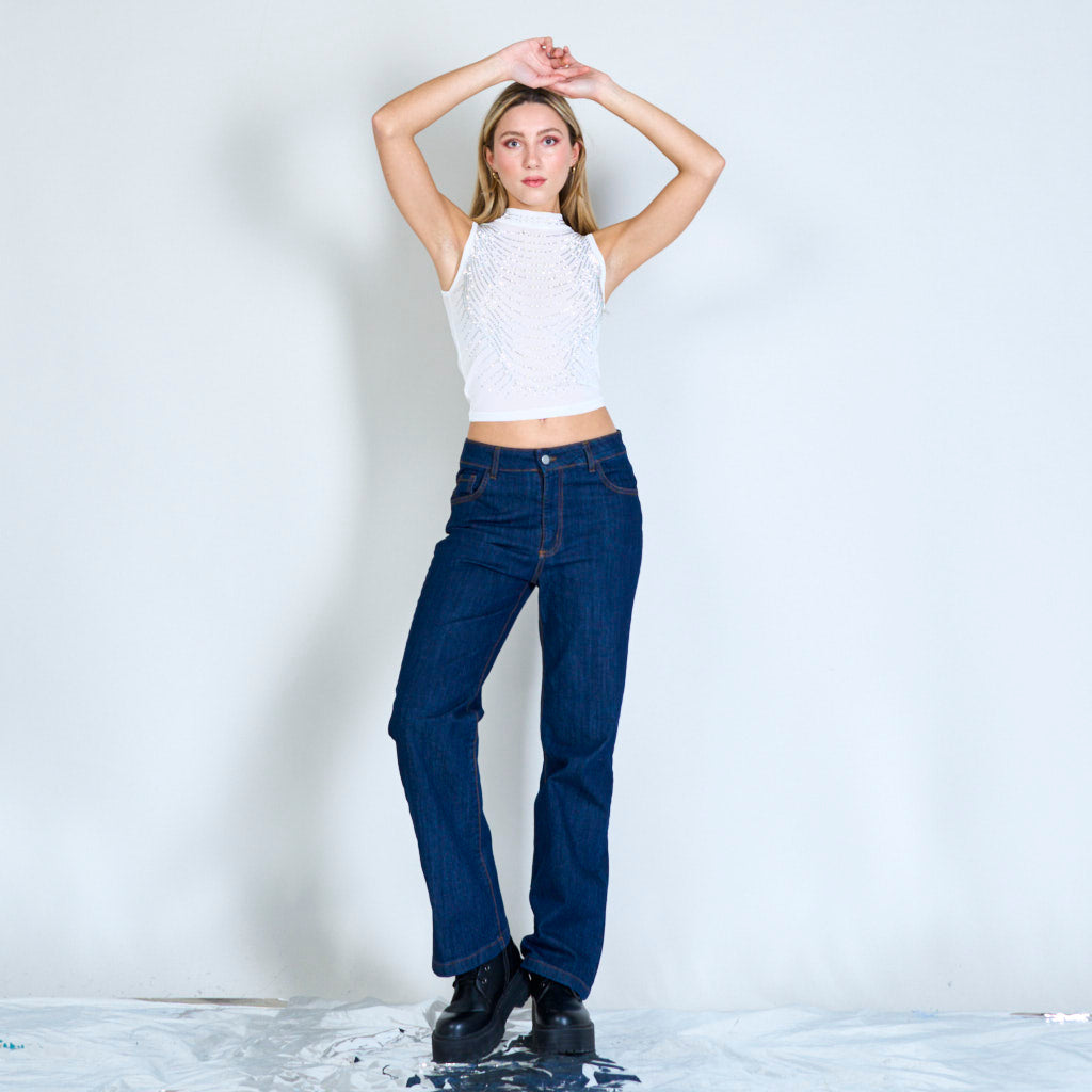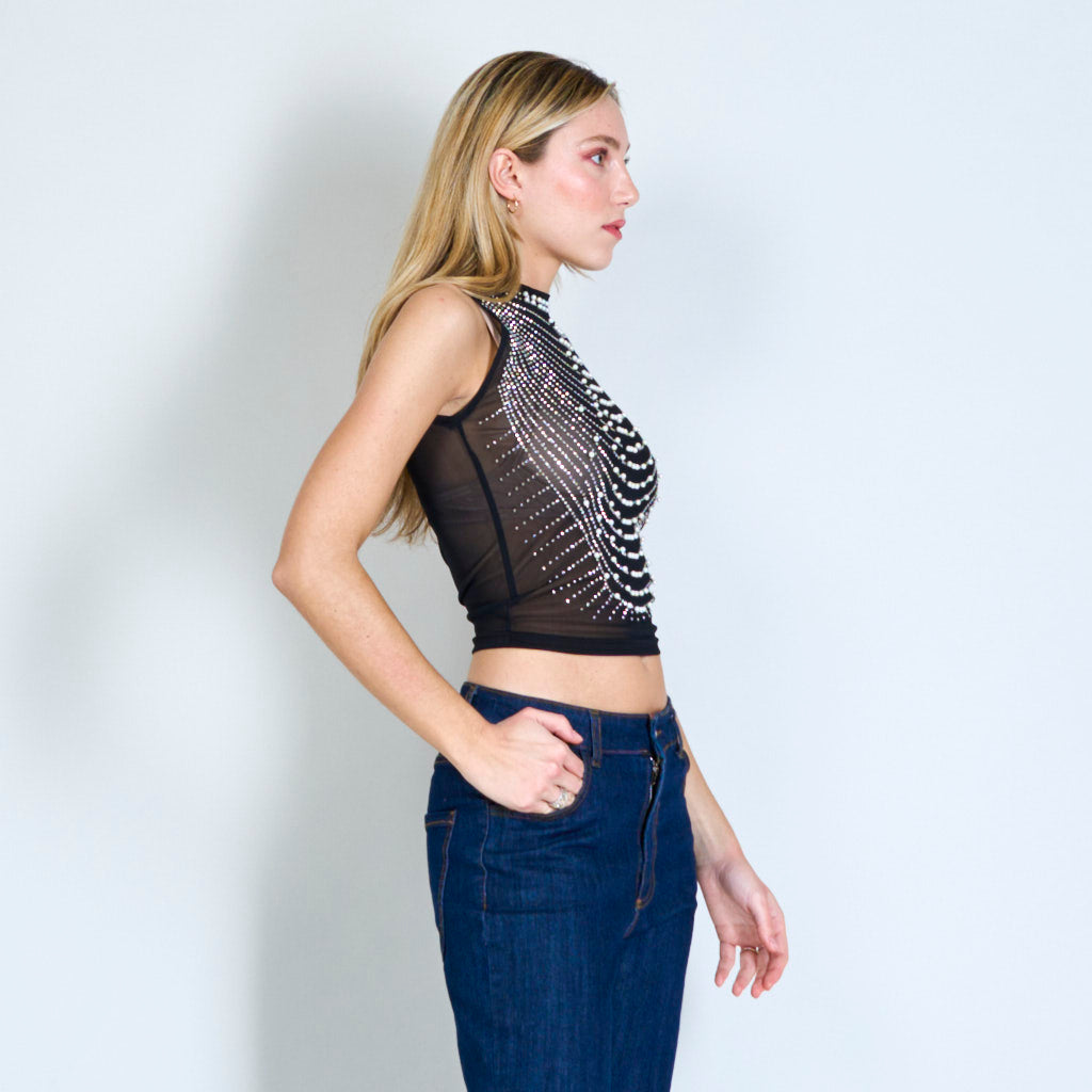 Bairr sleeveless mogalra mogalra le péarlaí agus seacainí mórdhíola