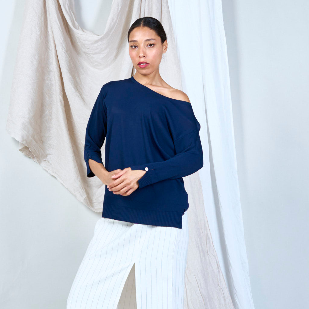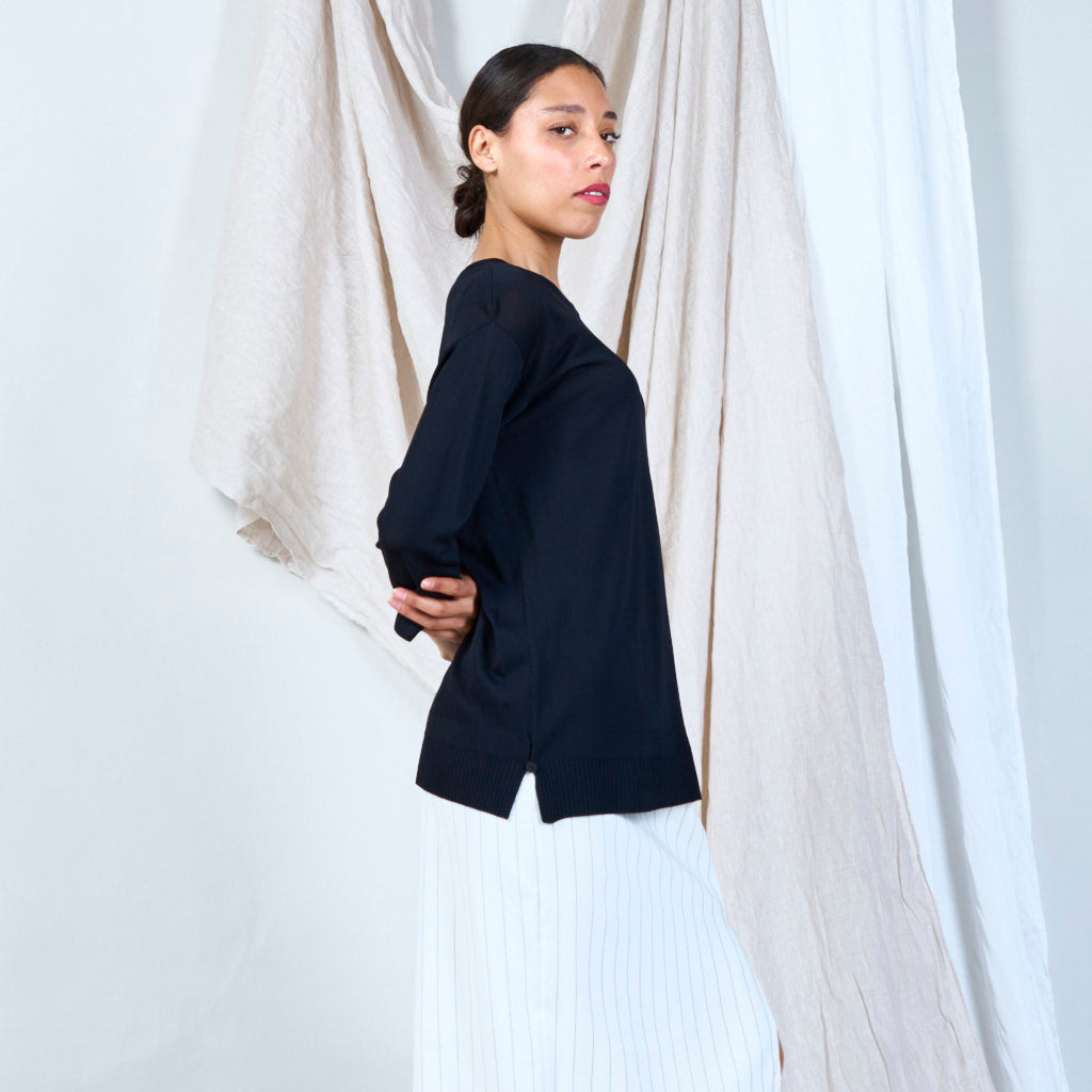 Geansaí muineál criú le Baile Átha Troim Ribbed Mórdhíola