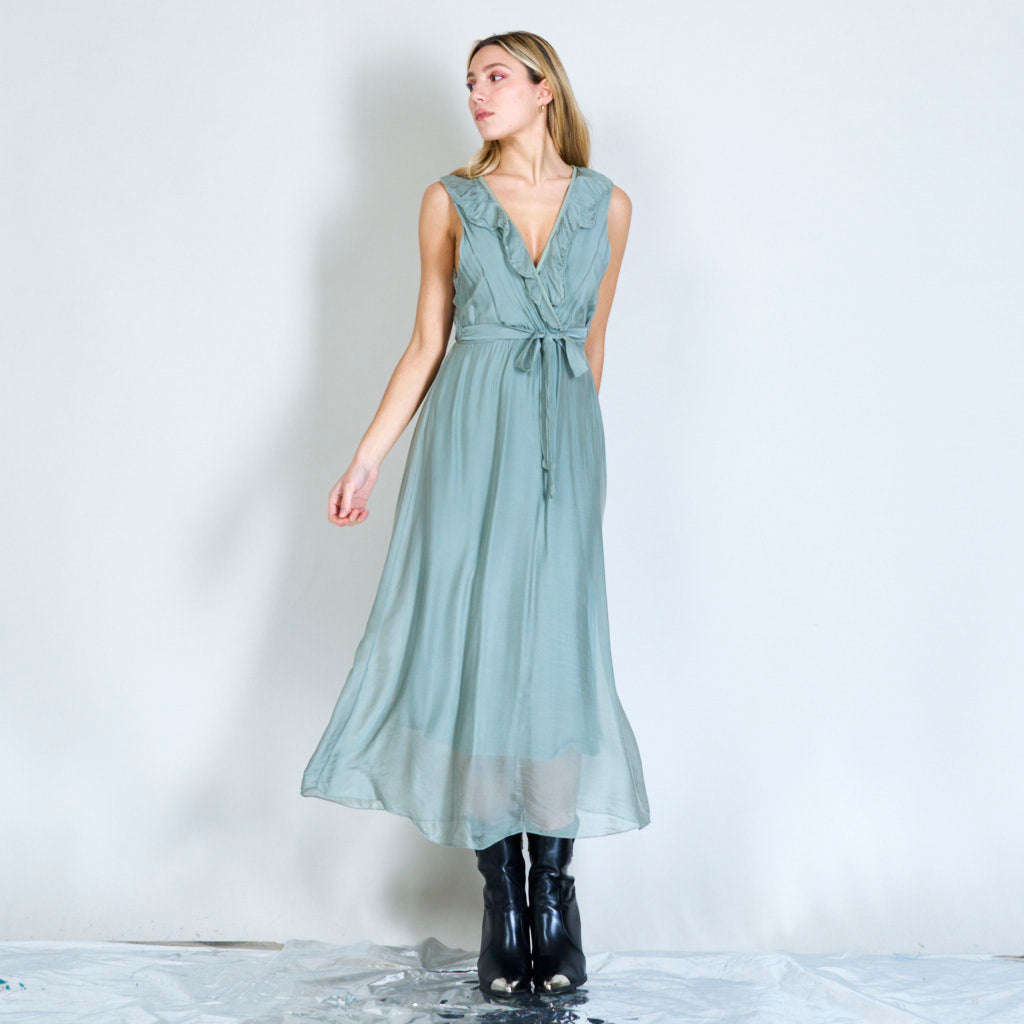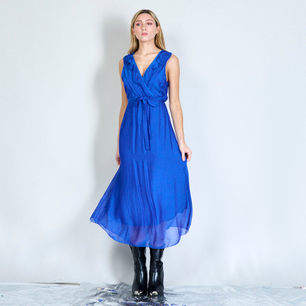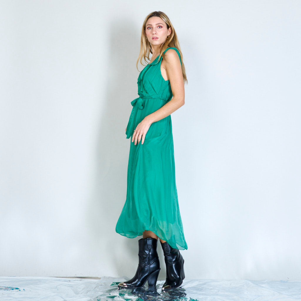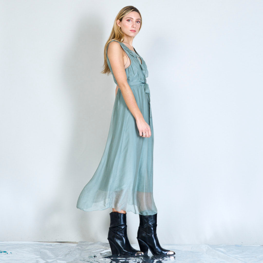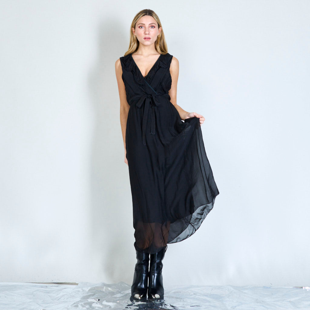 Gúna fada chiffon síoda le sonraí ruffles mórdhíola