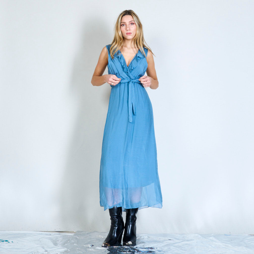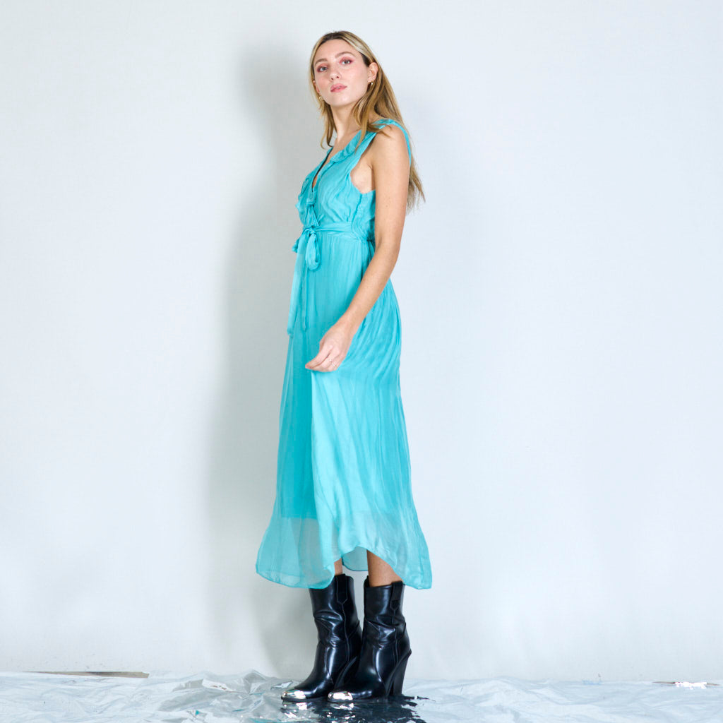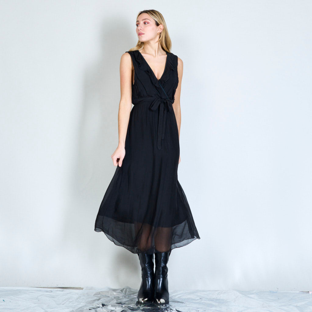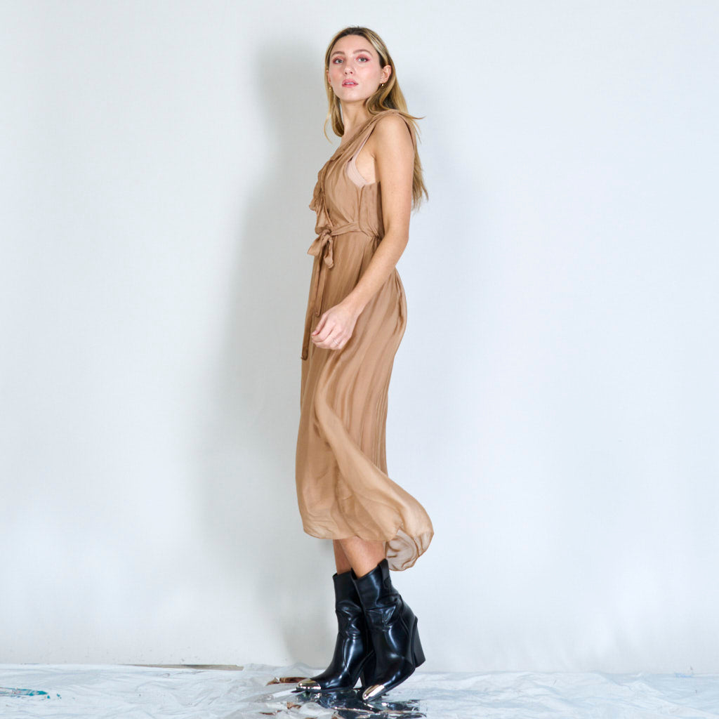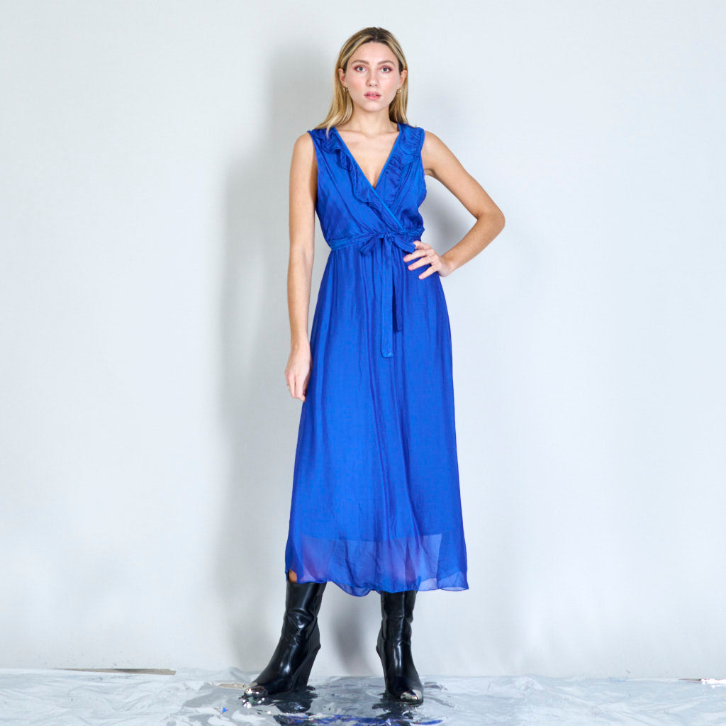 Gúna fada chiffon síoda le sonraí ruffles mórdhíola