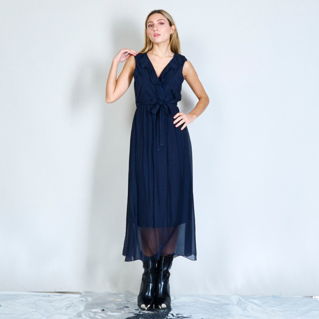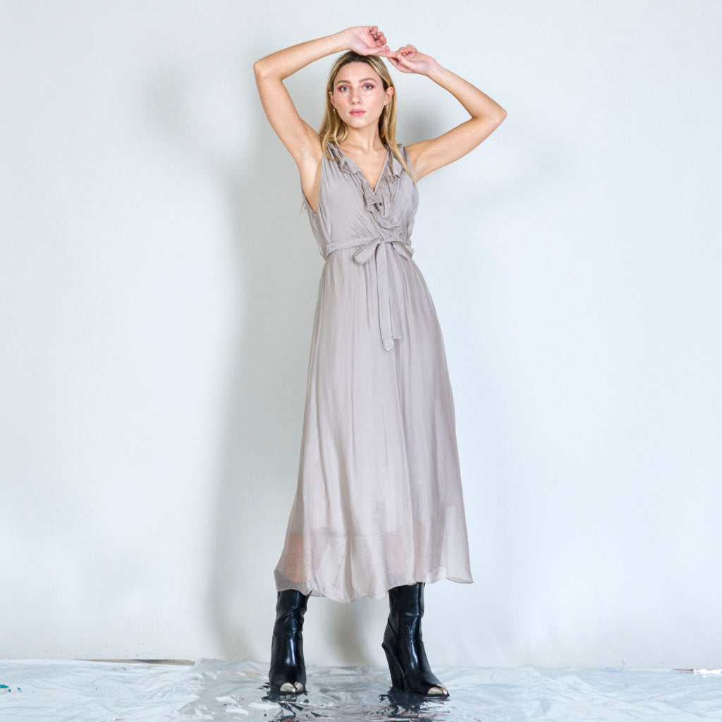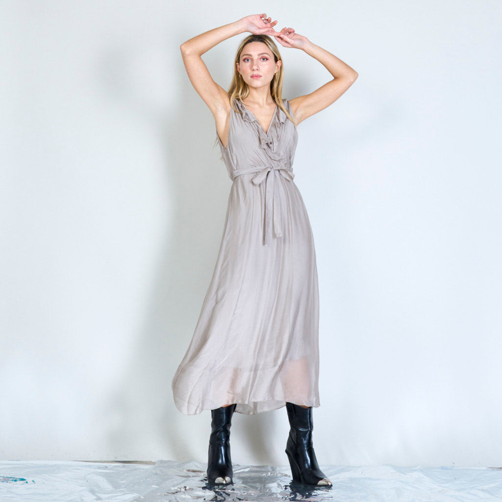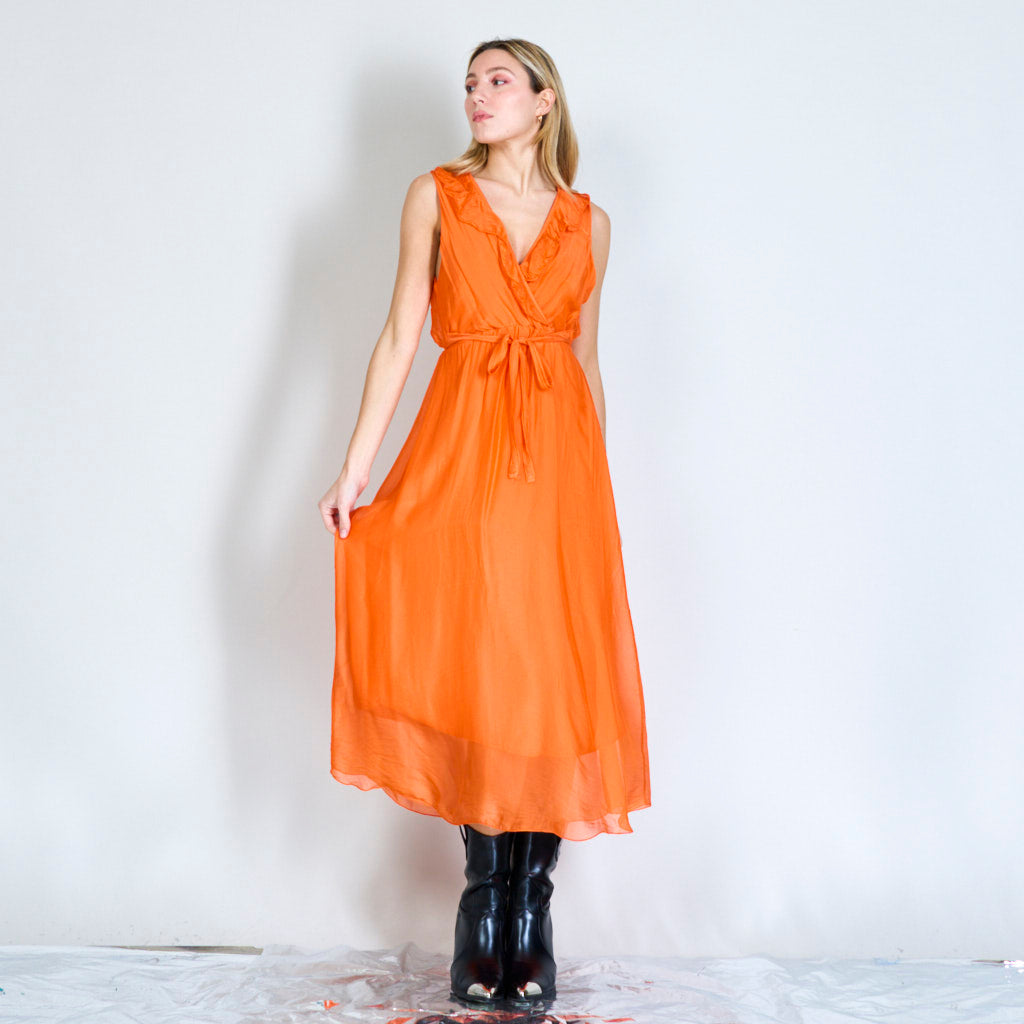 Gúna fada chiffon síoda le sonraí ruffles mórdhíola
