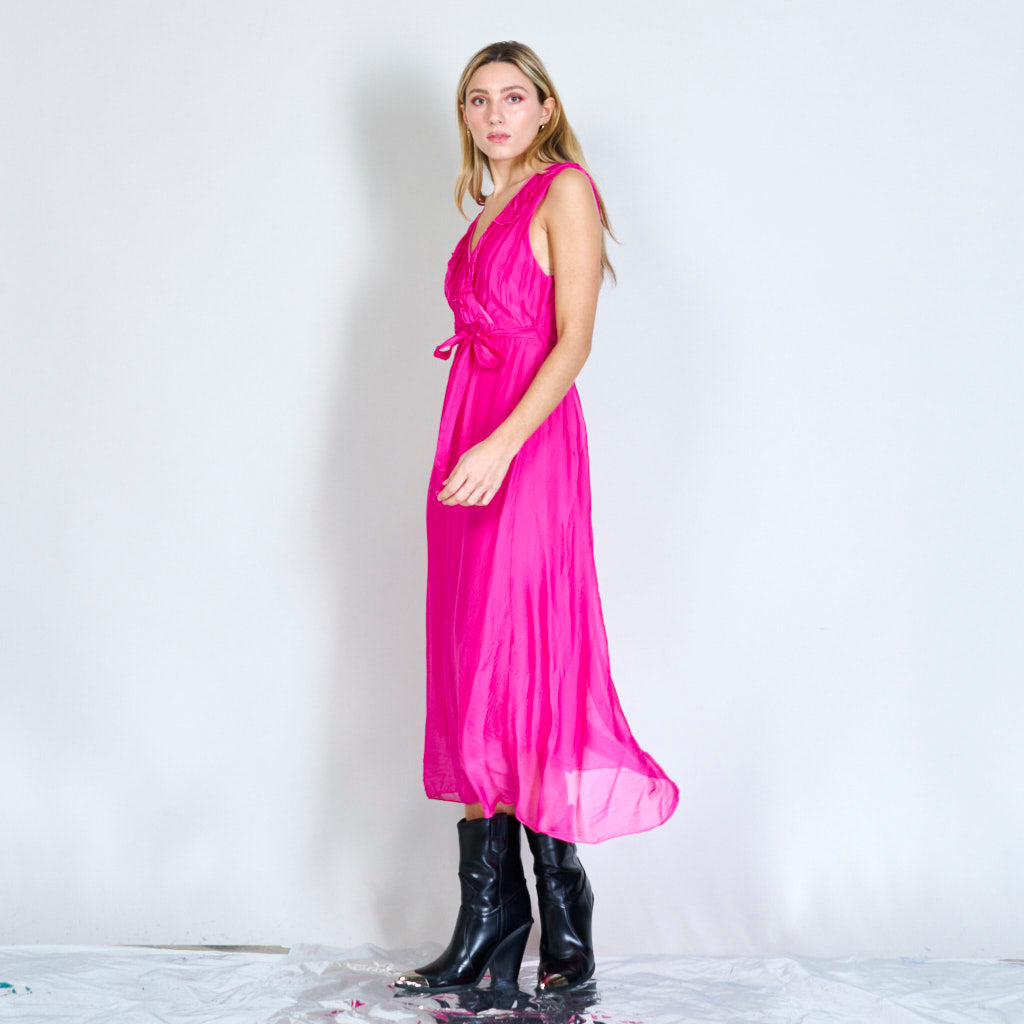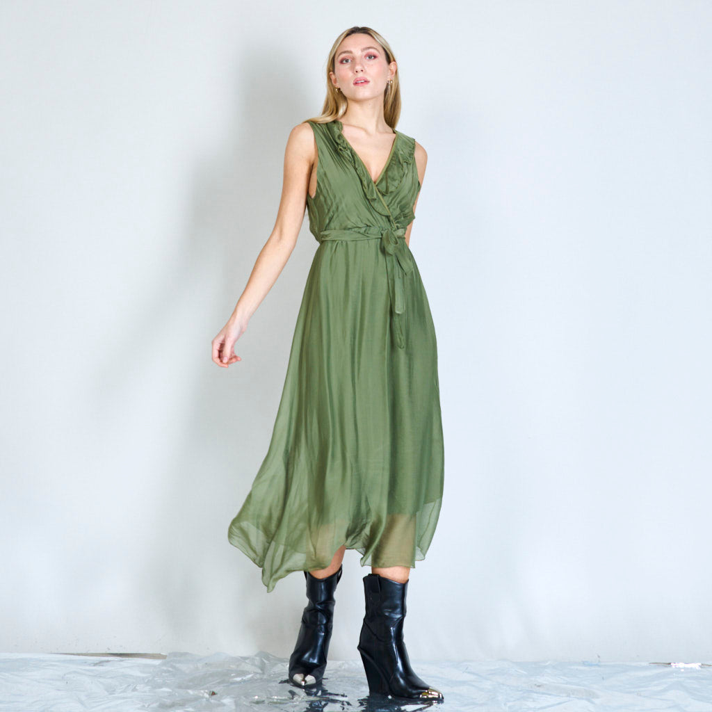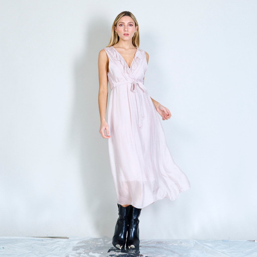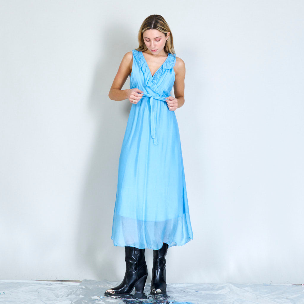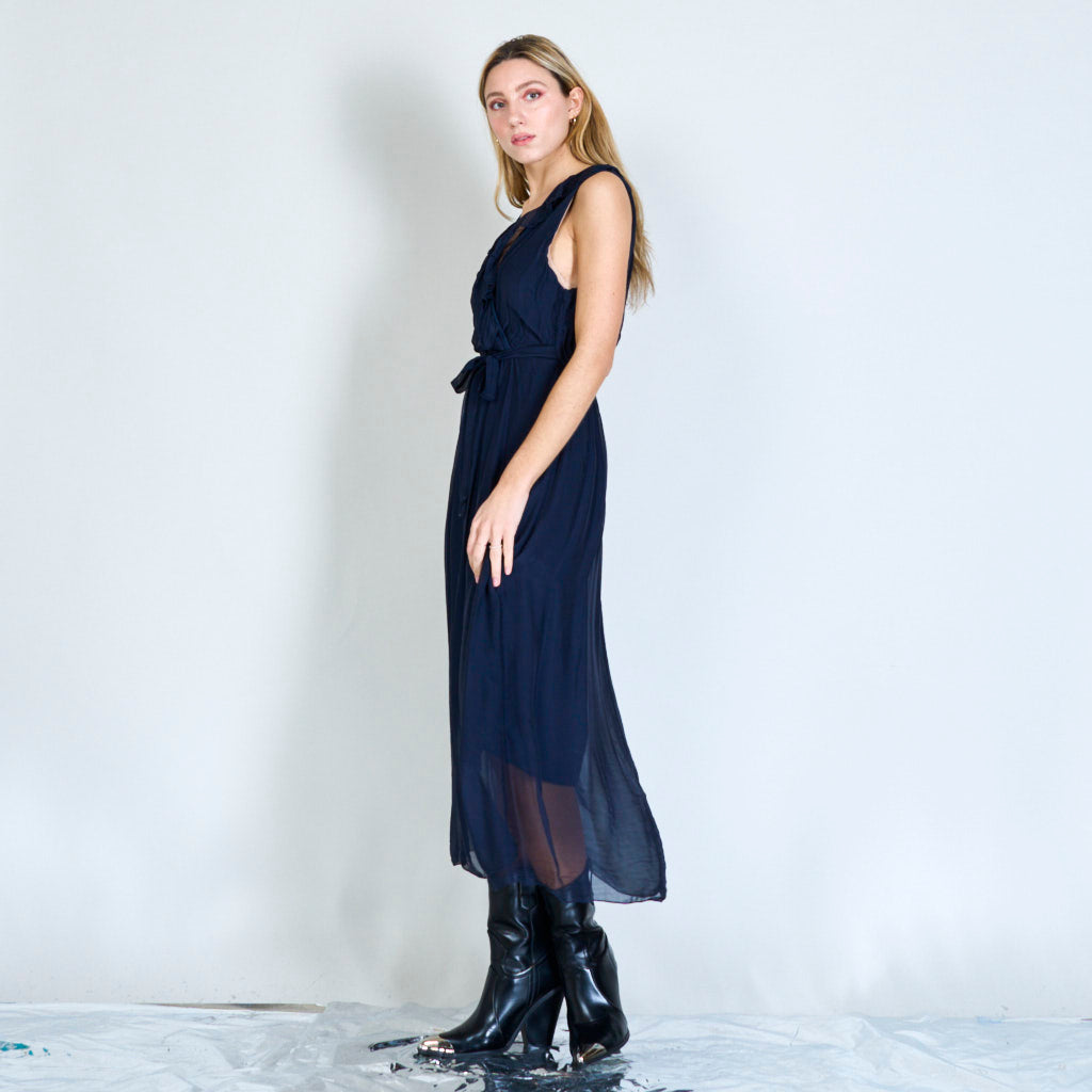 Gúna fada chiffon síoda le sonraí ruffles mórdhíola