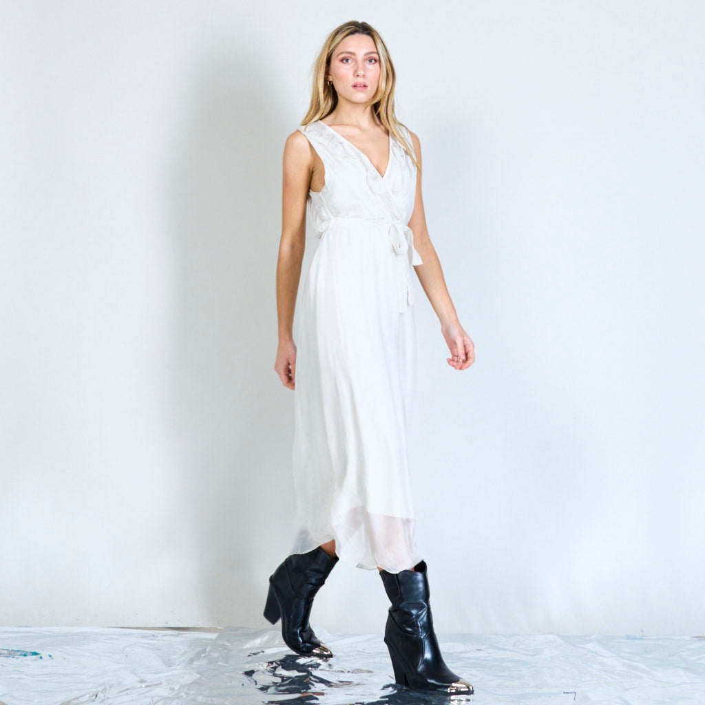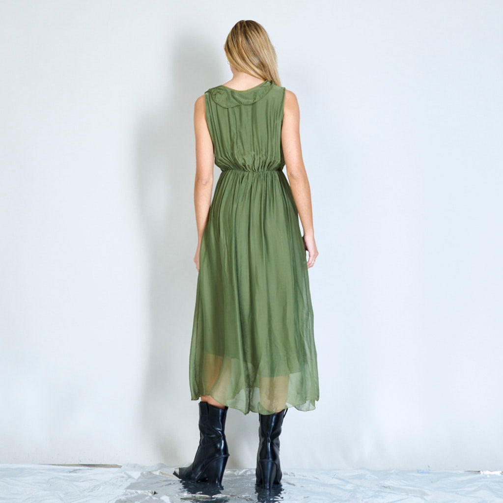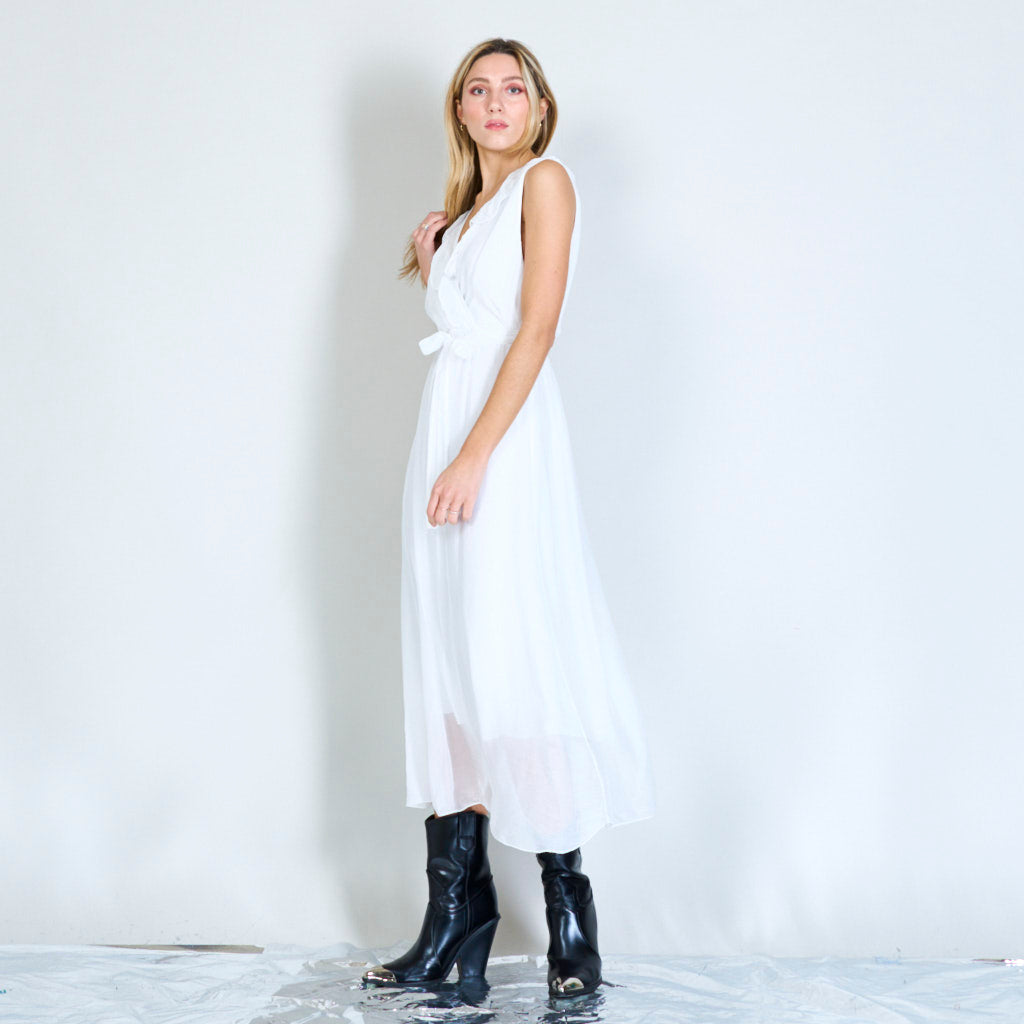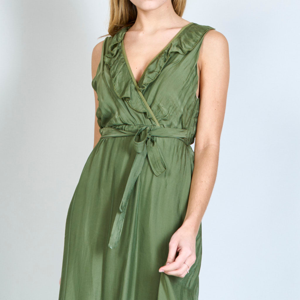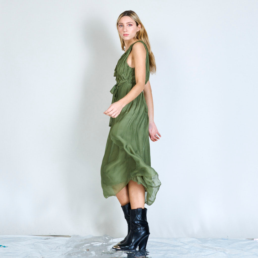 Gúna fada chiffon síoda le sonraí ruffles mórdhíola