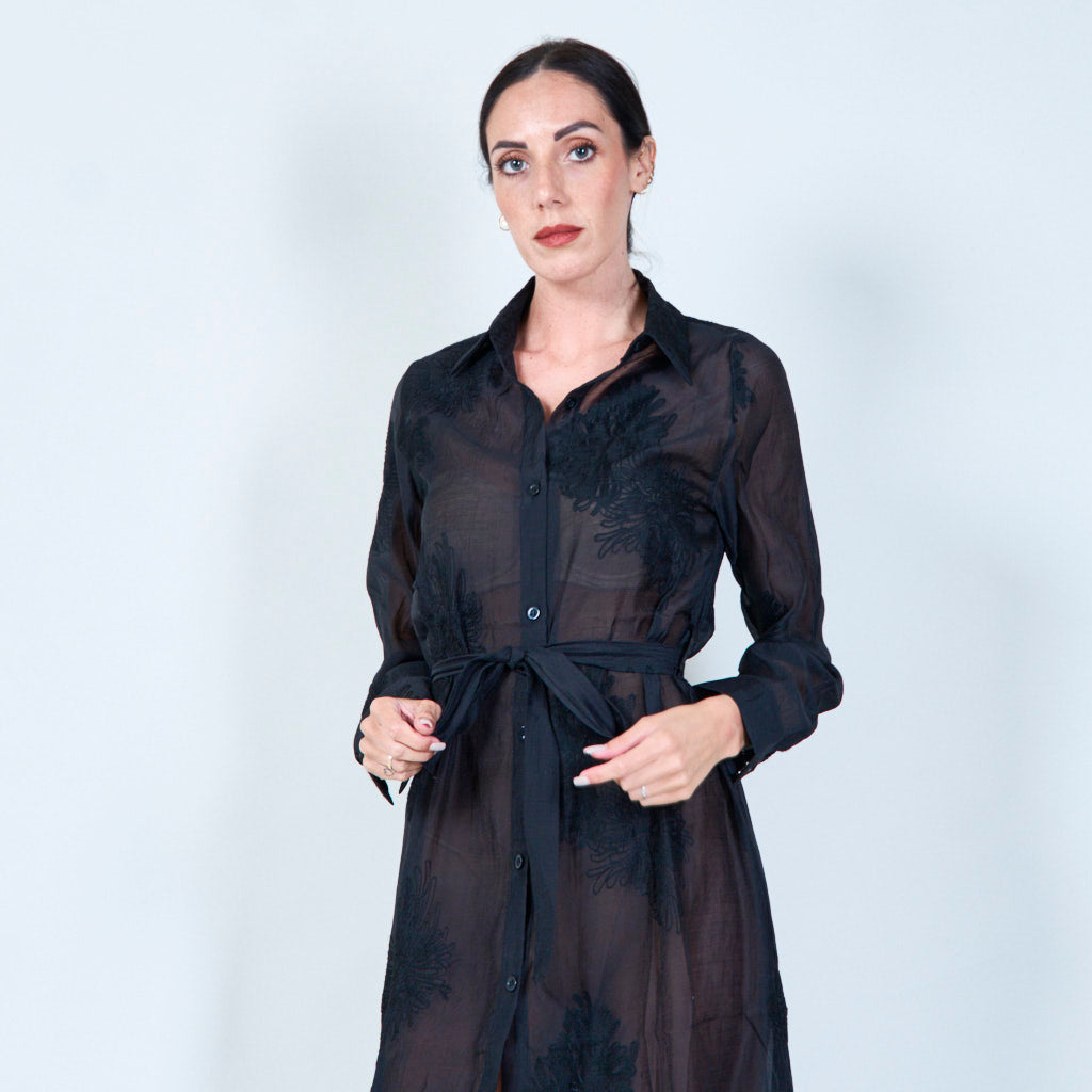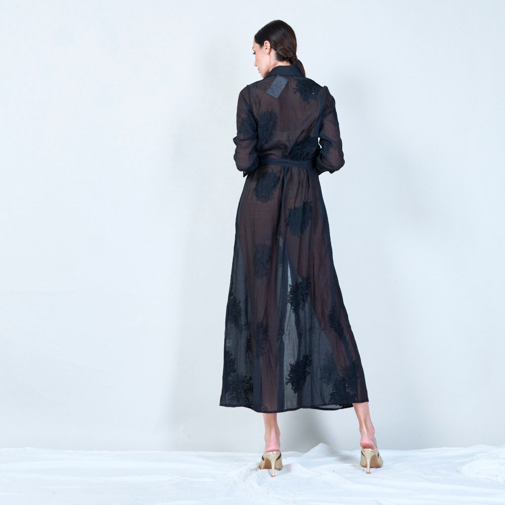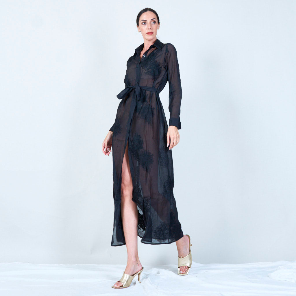 Gúna lán-sleamhnáin le patrún Floral Mórdhíola