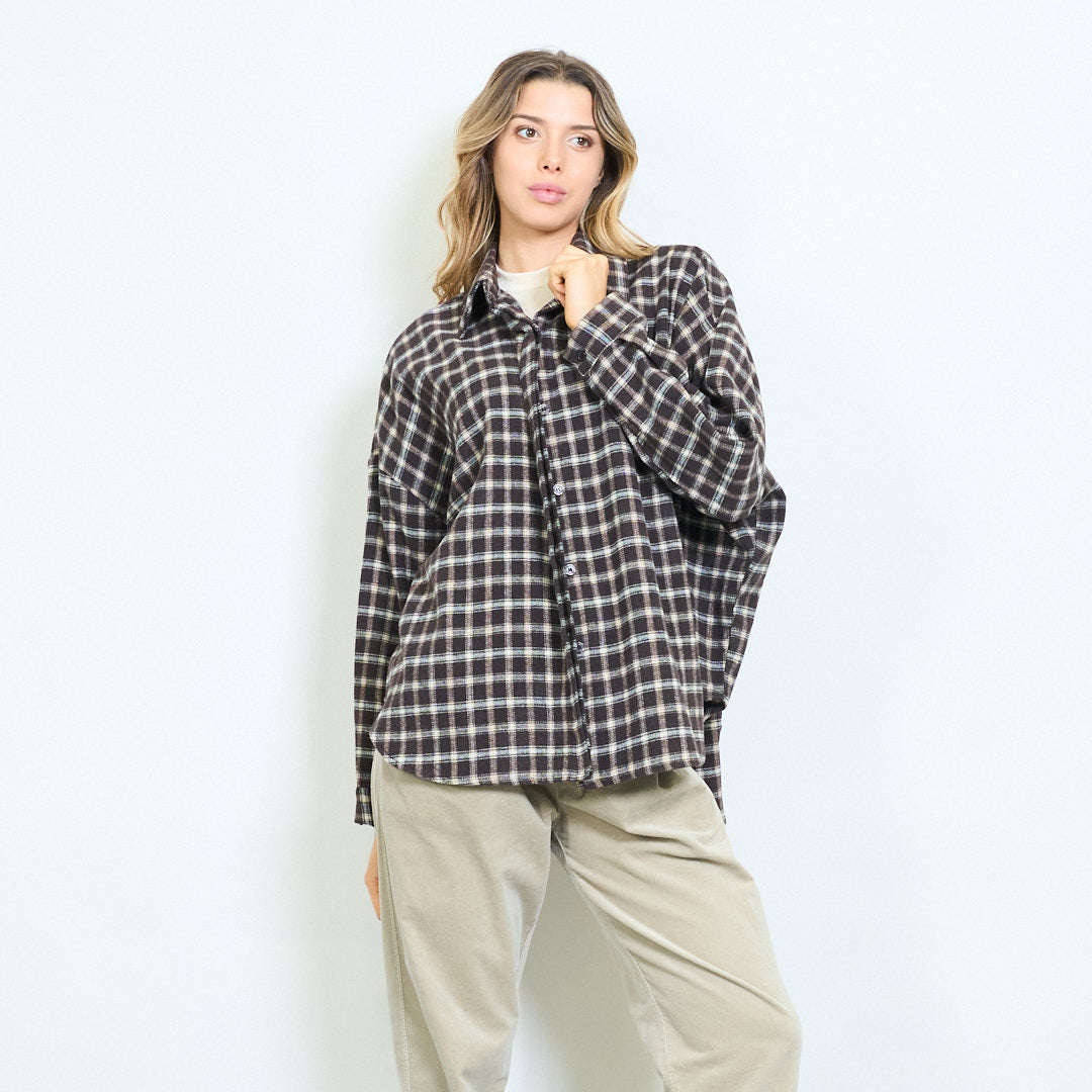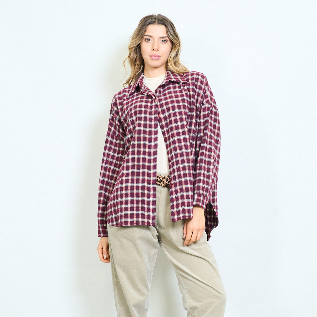 Cnaipe Clasaiceach Checkered síos léine muinchille fada mórdhíola