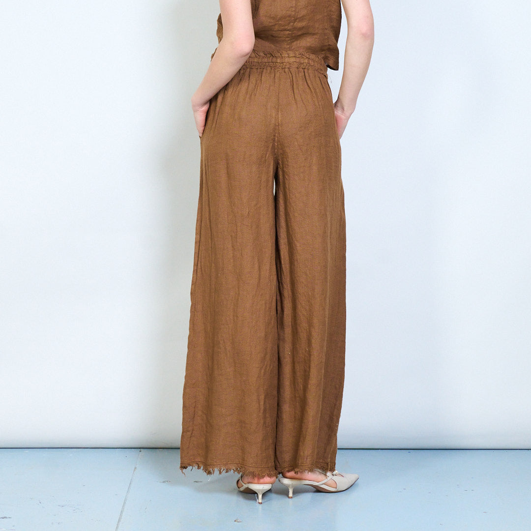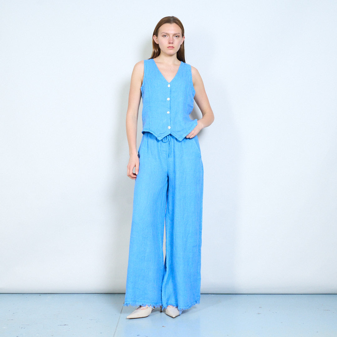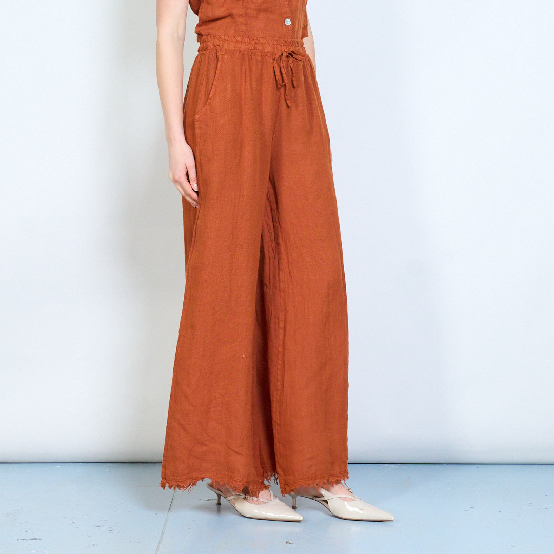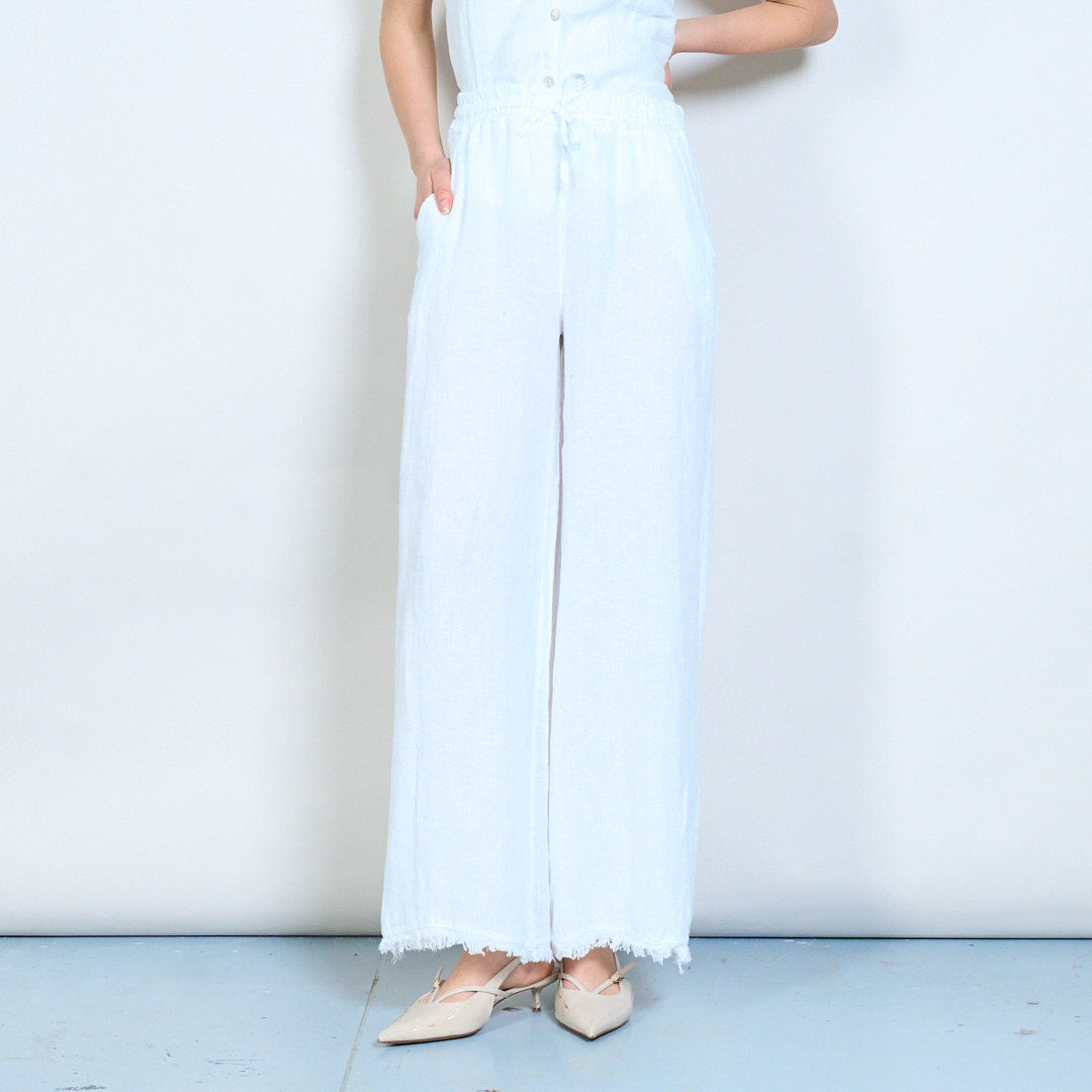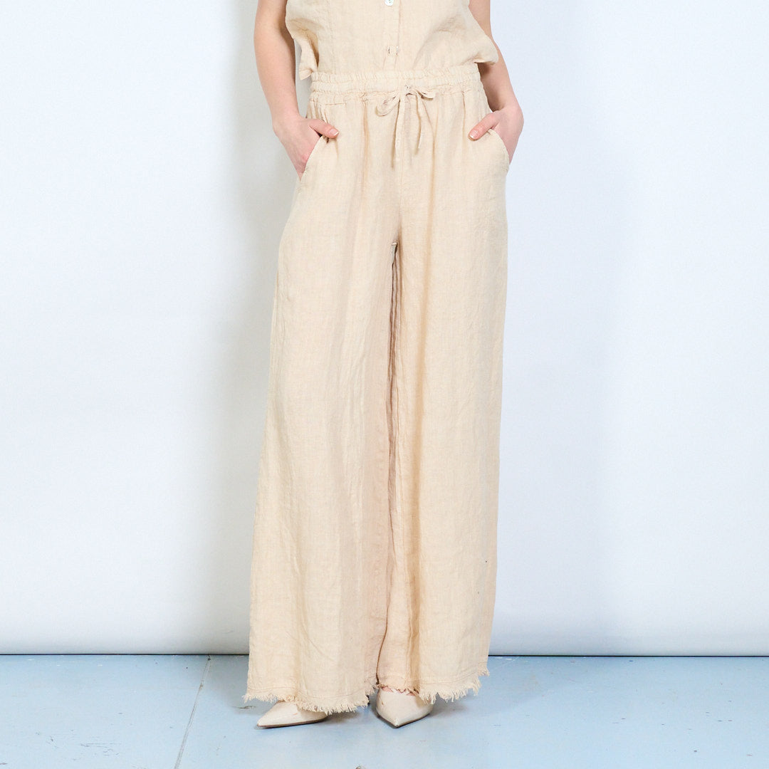 Bríste cos leathan línéadach suaimhneach le waist drawstring mórdhíola