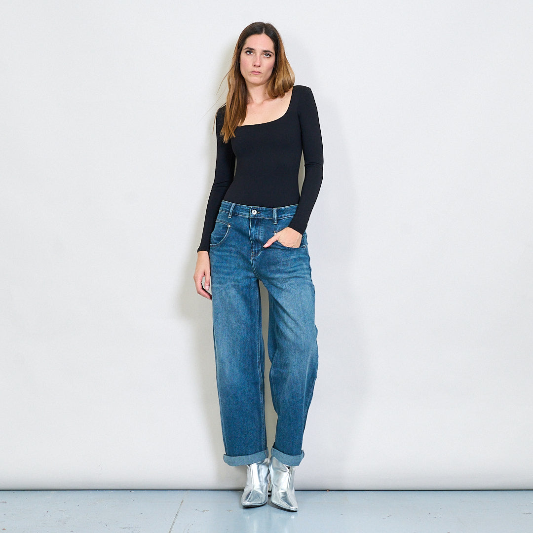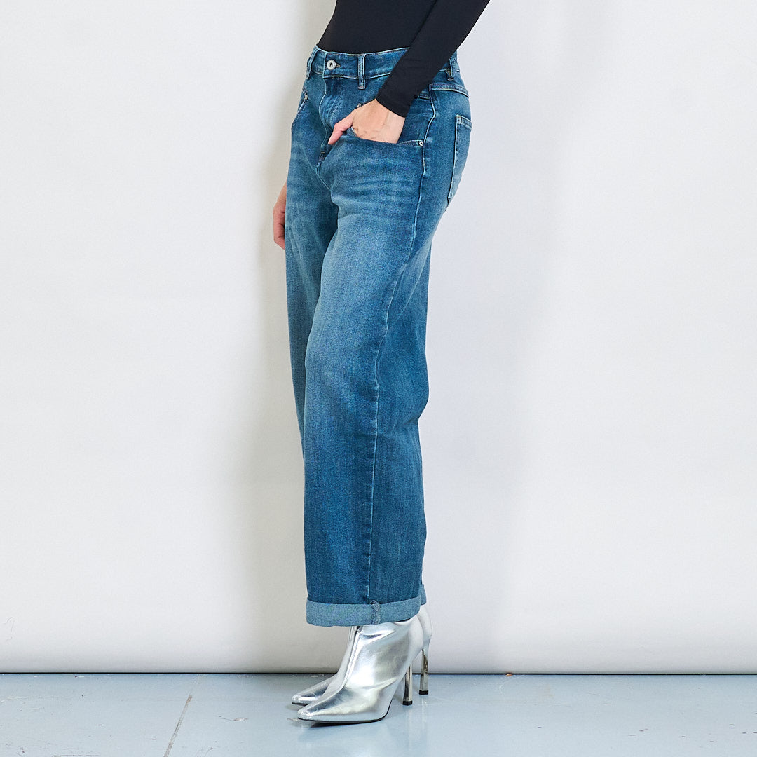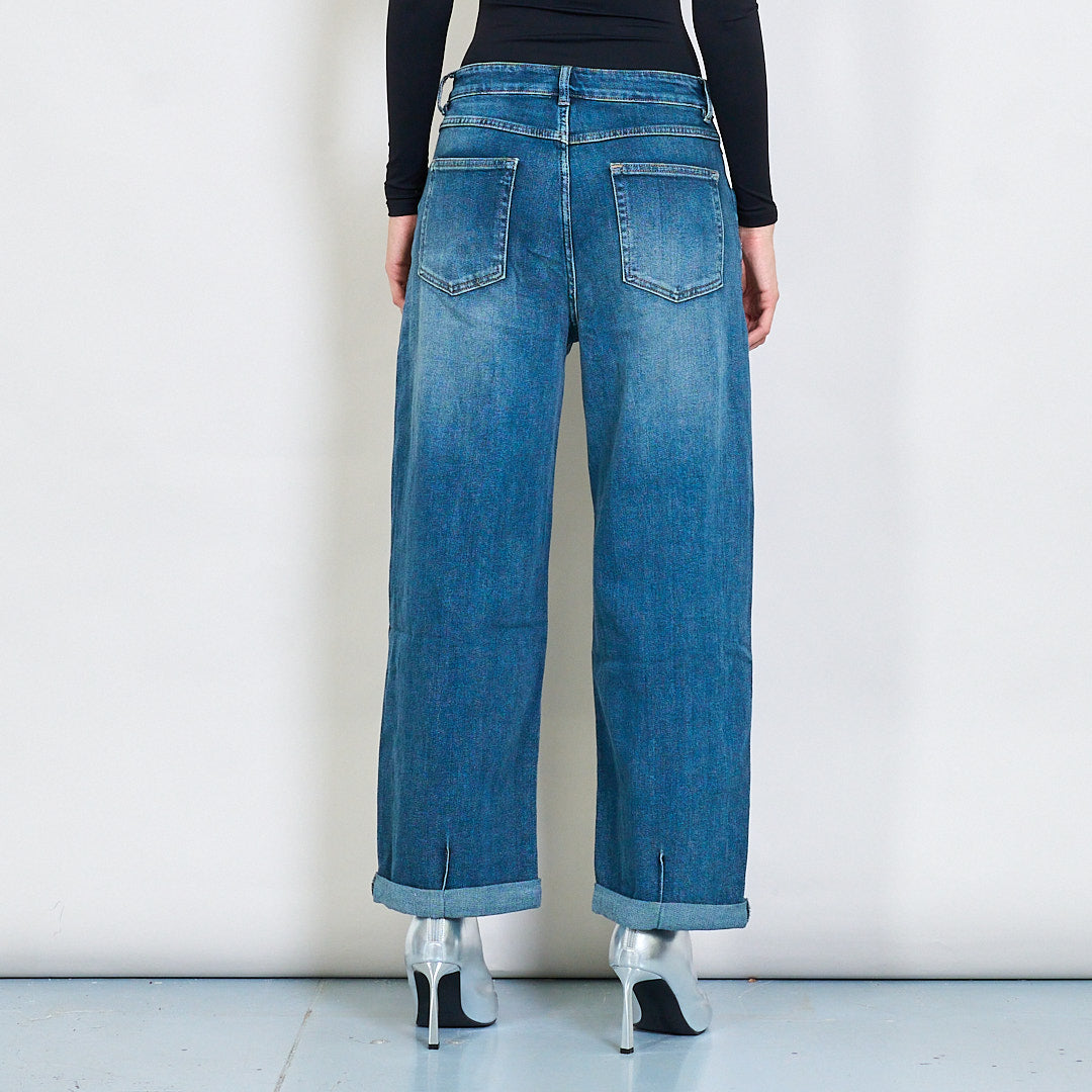 Jeans denim ar fud an chlasaicigh chlasaiceach le hae mór-dhíobhálach cuffed