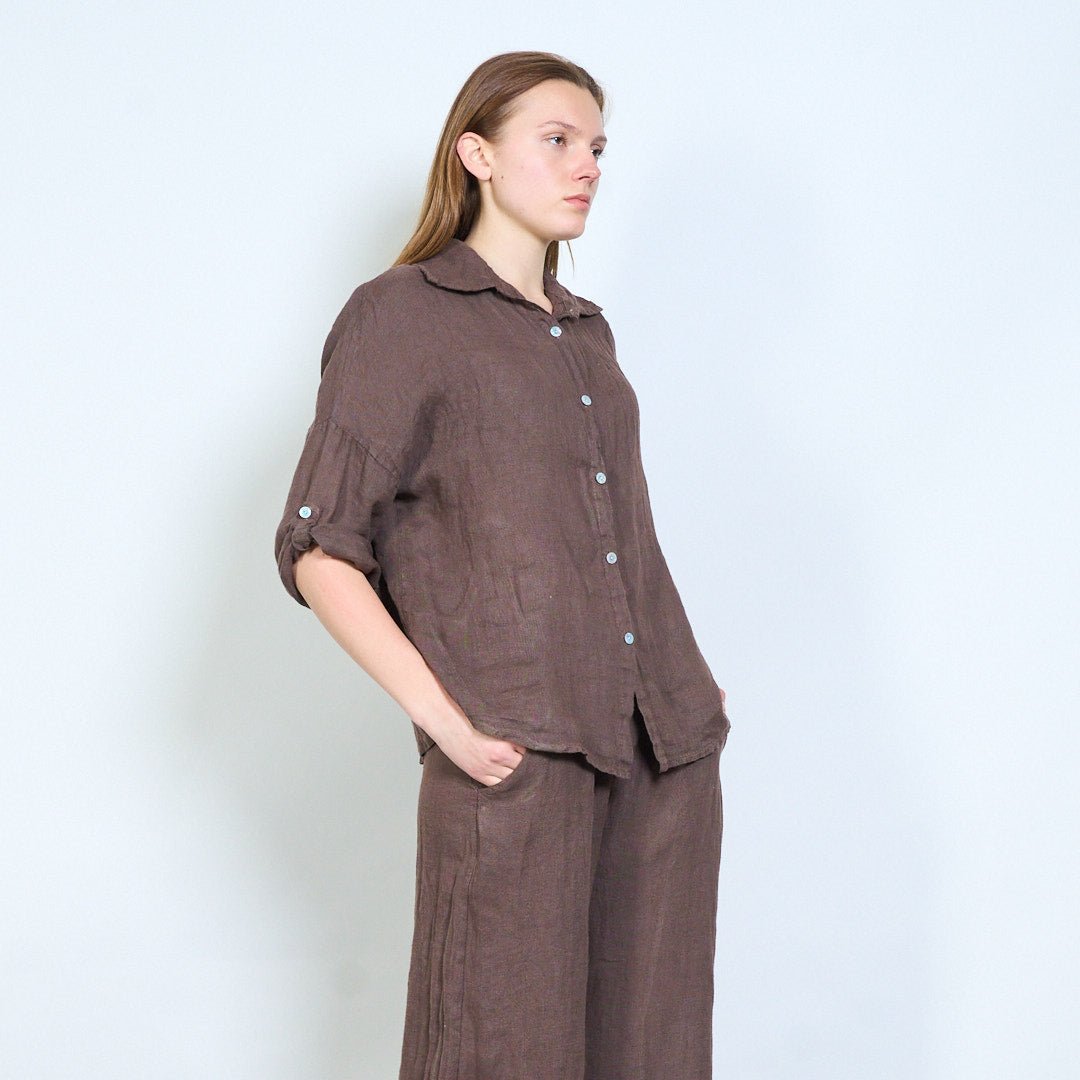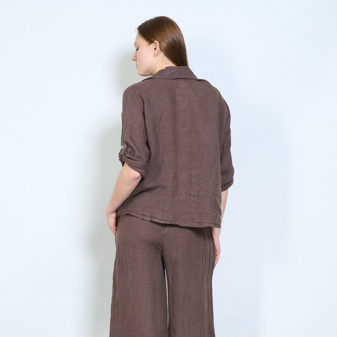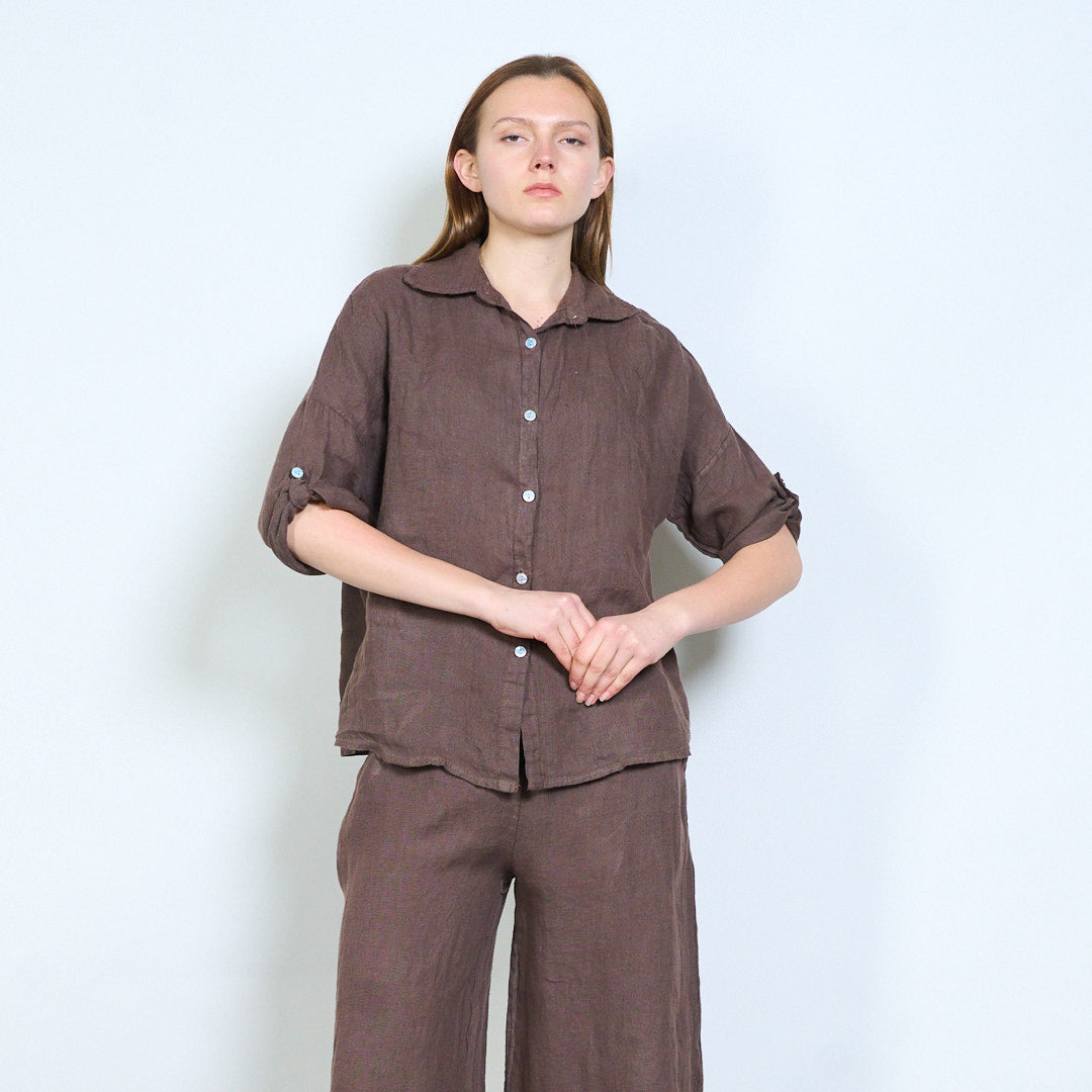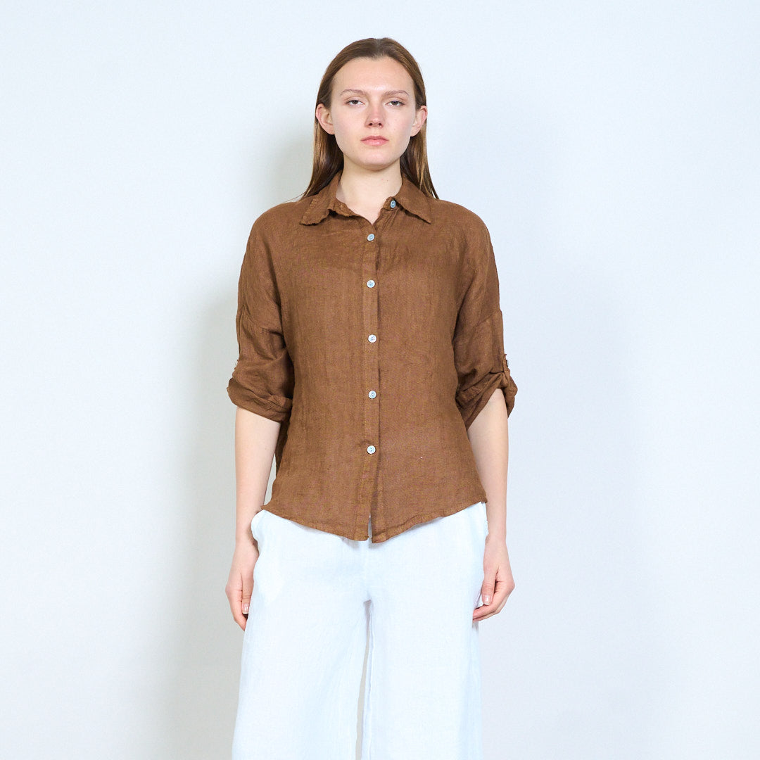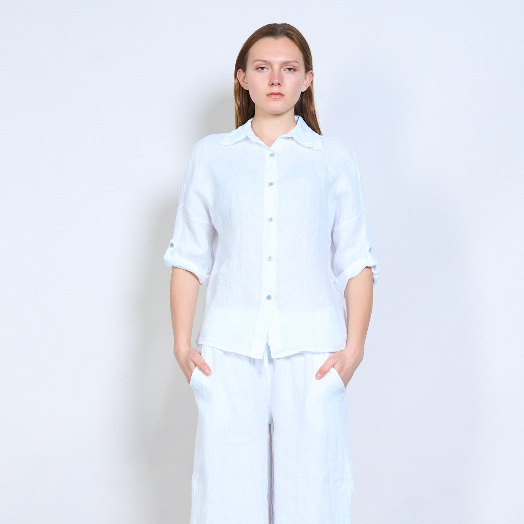 Léine línéadaigh struchtúr bog le mionsonraí sleeve rolladh suas mórdhíola