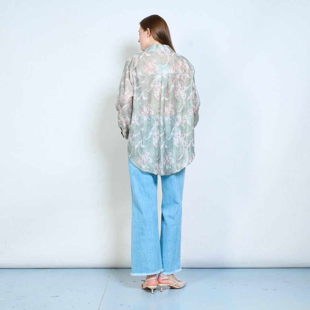 • Blús deartha le cló bláthanna allover le haghaidh cuma ráiteas bog