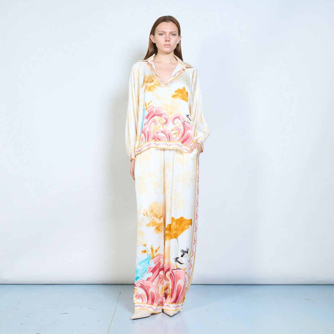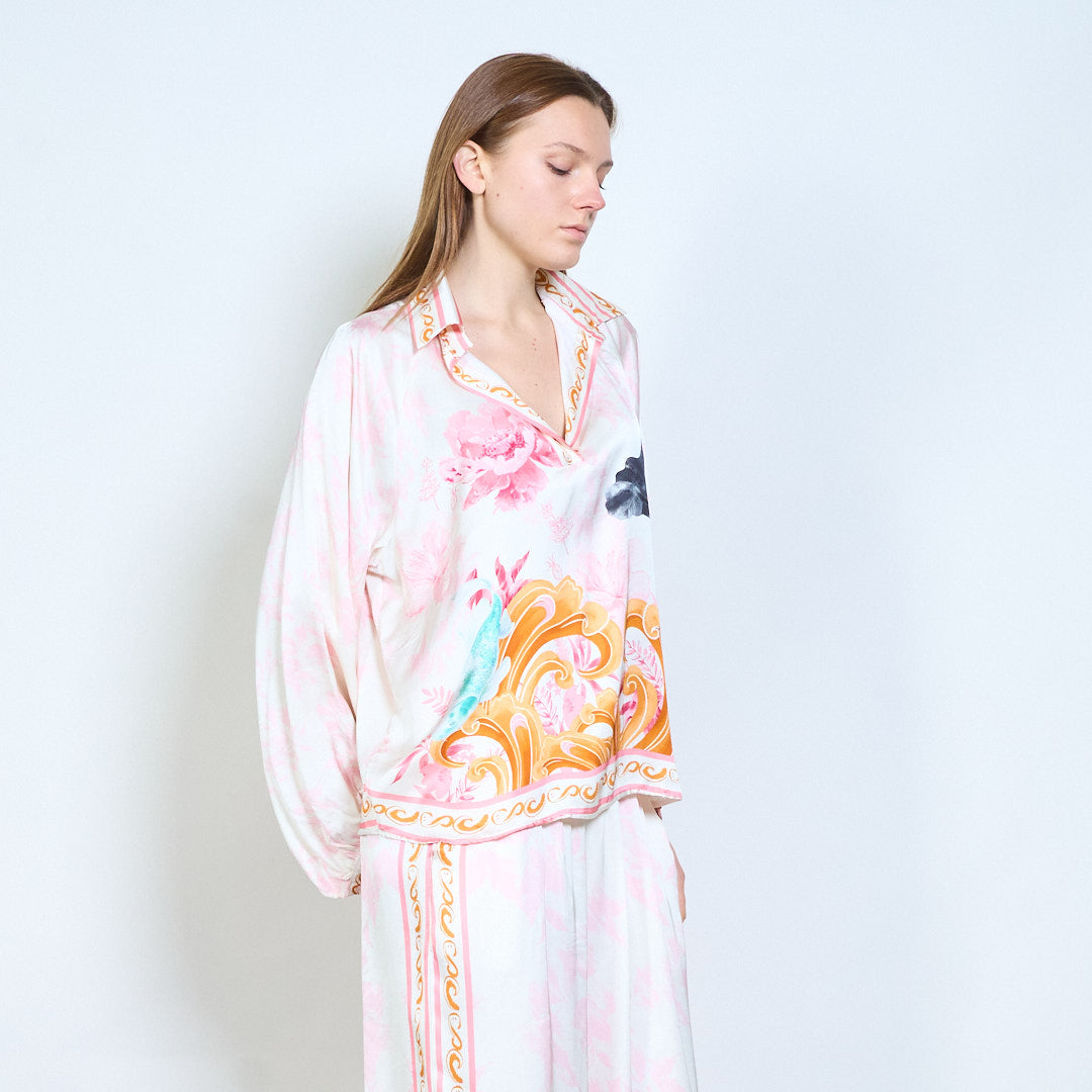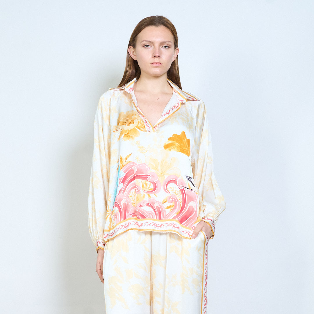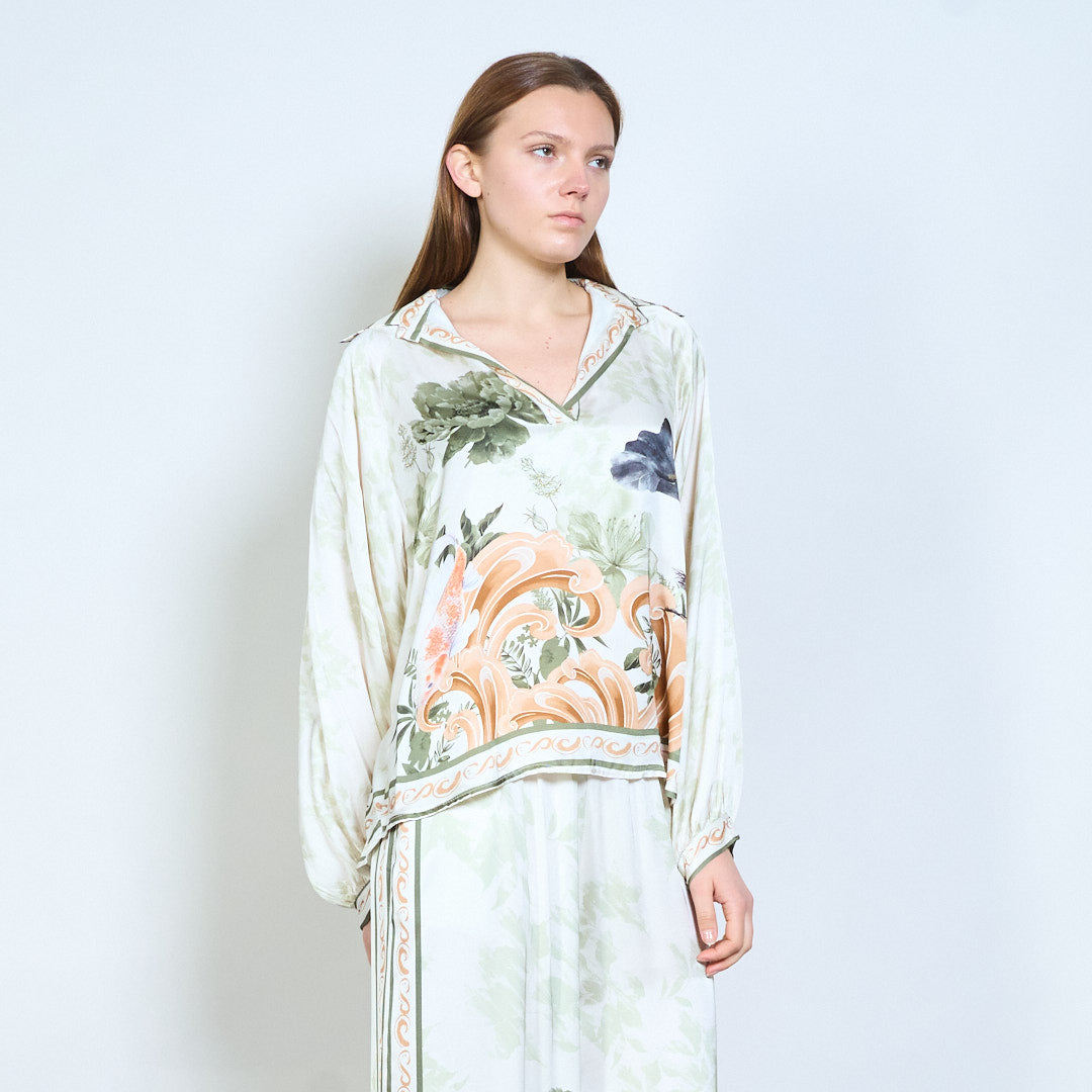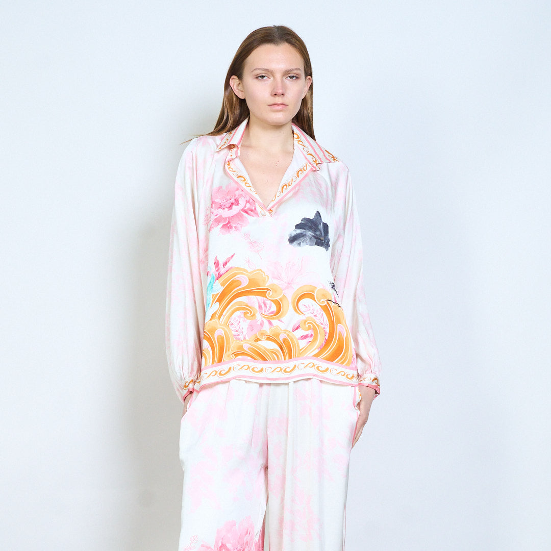 Tonn Floral grafach Baile Átha Troim stiallacha collared blús sleeve fada mórdhíola