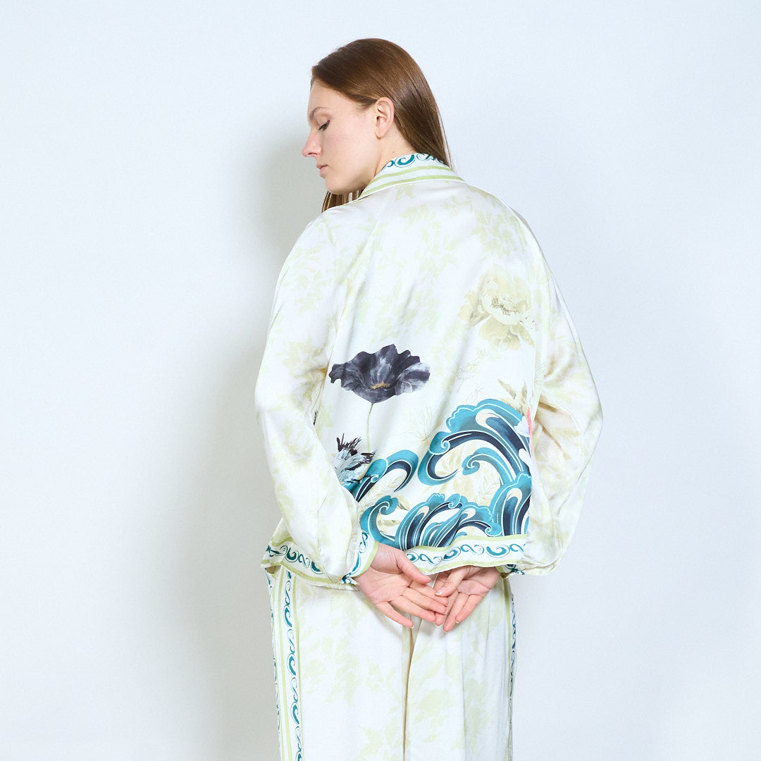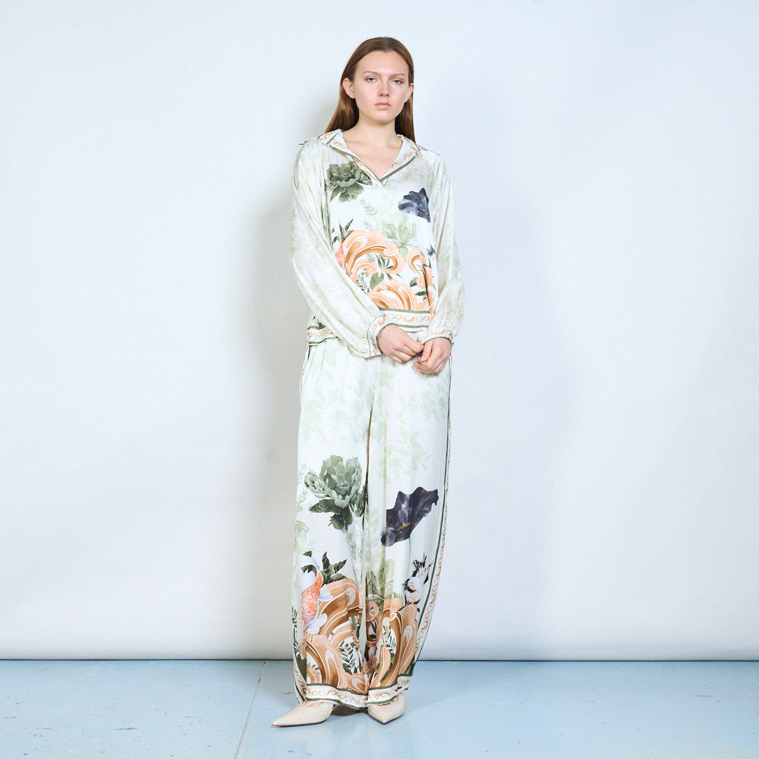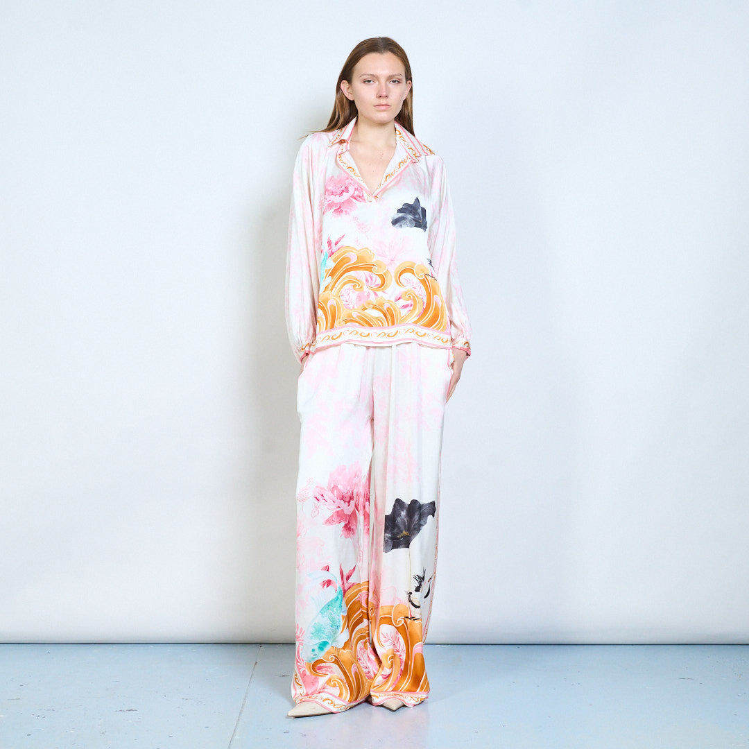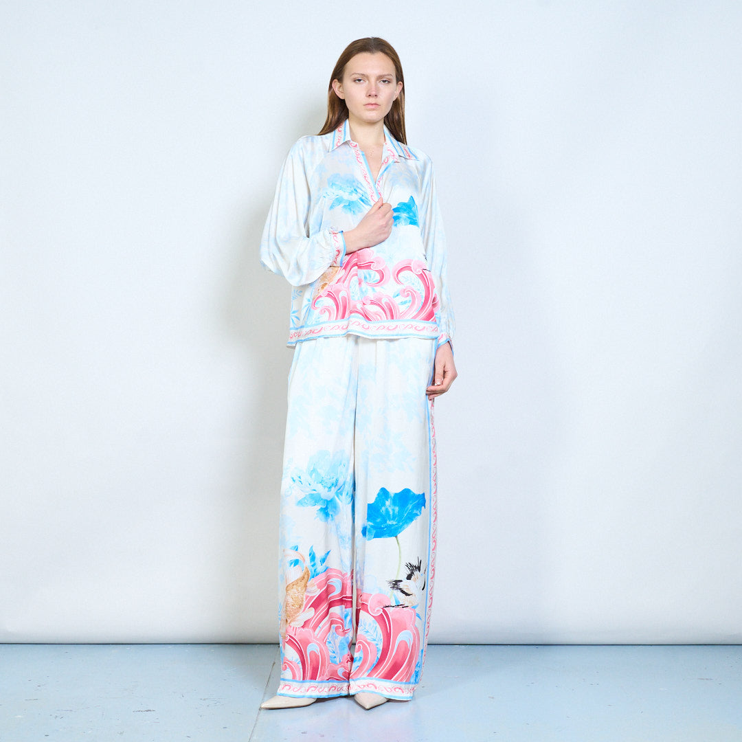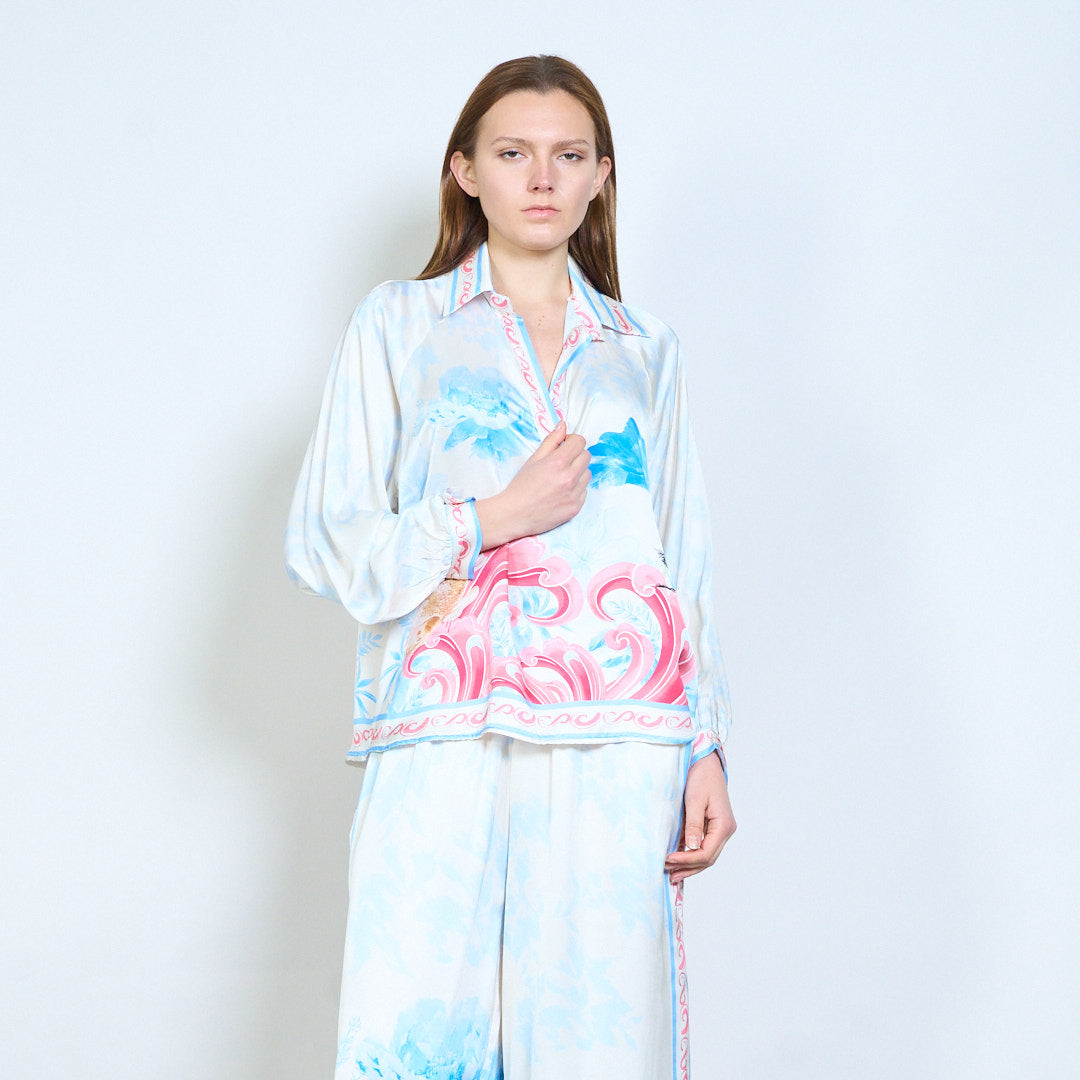 Tonn Floral grafach Baile Átha Troim stiallacha collared blús sleeve fada mórdhíola