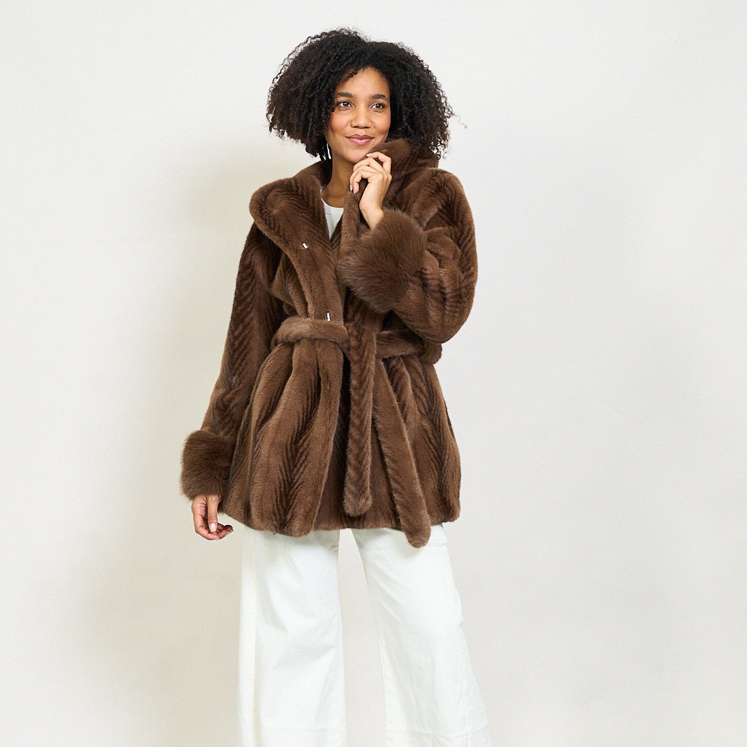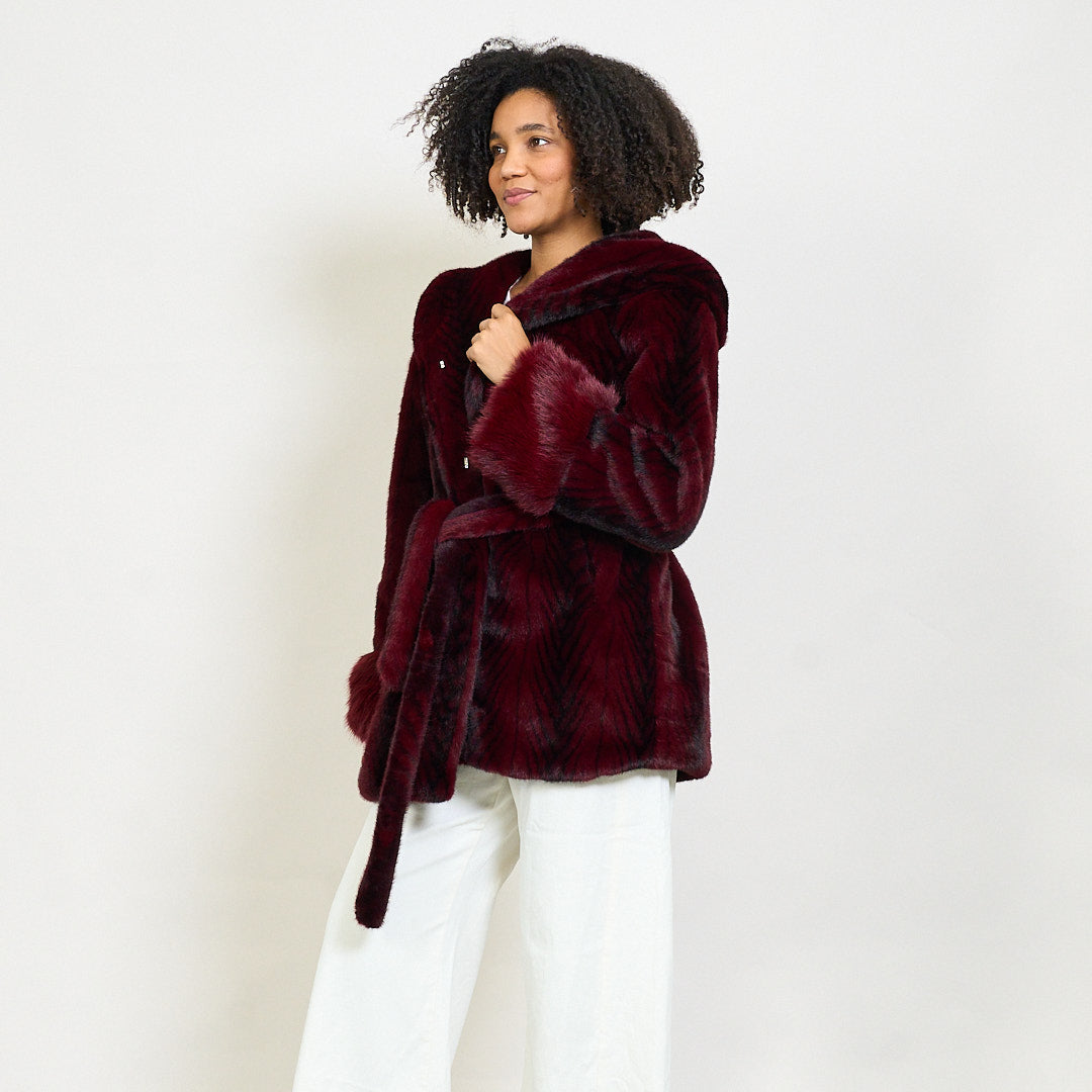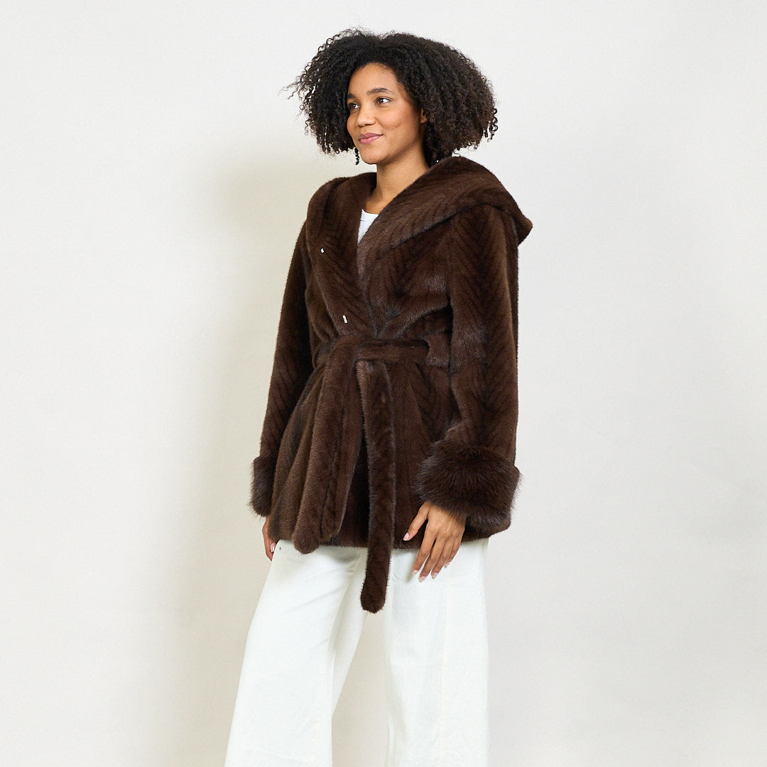 Seaicéad fionnaidh faux patrún chevron le cochall agus sleeves cuffed mórdhíola