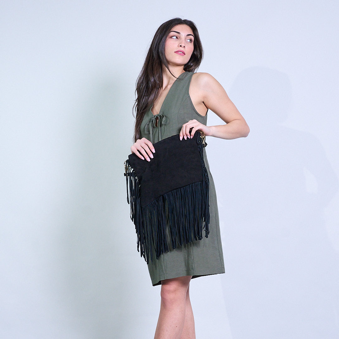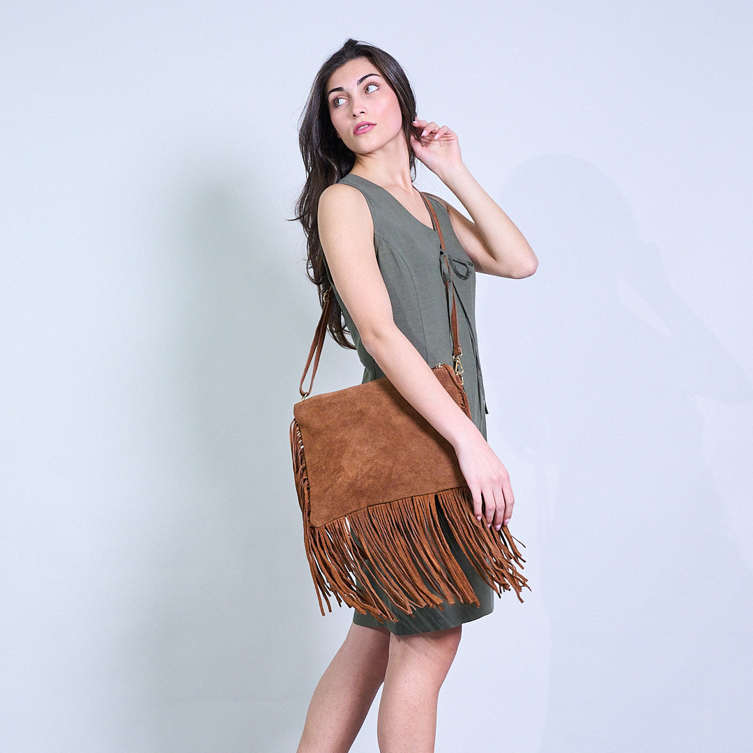Suede Fringe-Edge Sling Sling Féile Féile Crossbody Mála Mórdhíola