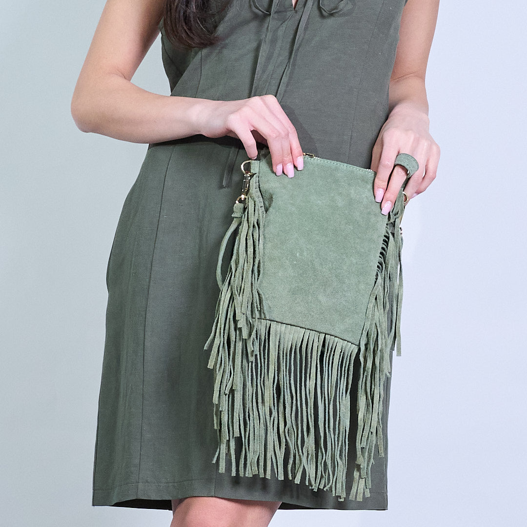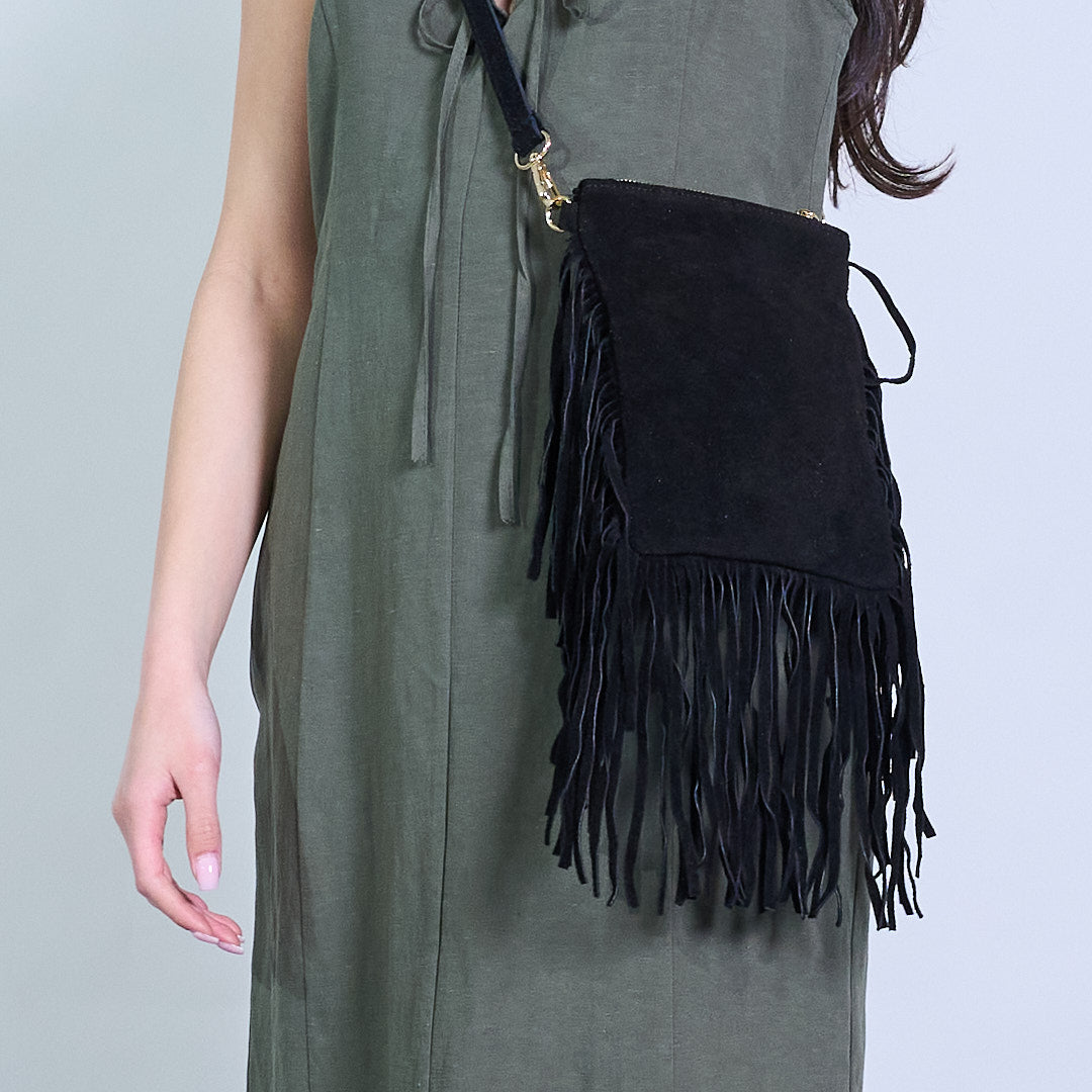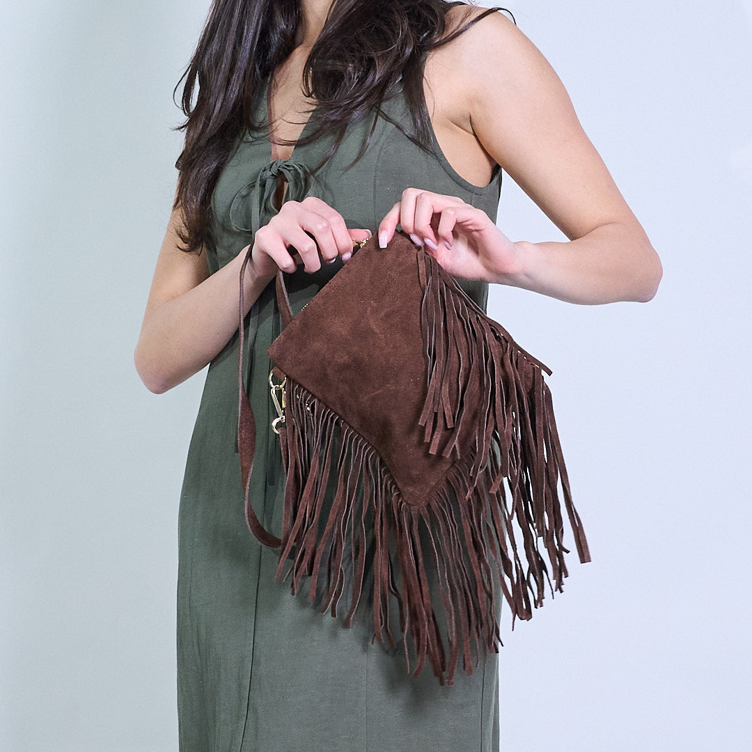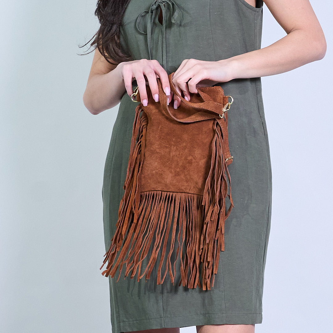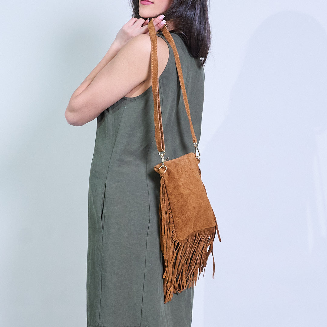 Suede Fringed Boho Crossbody Sling Mini -Mála Mórdhíola