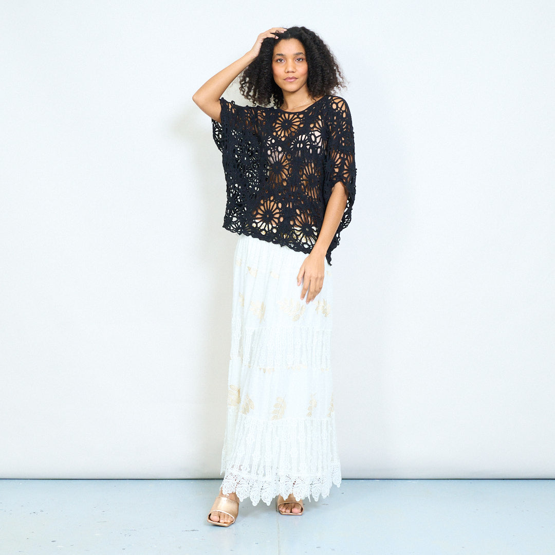 - Patrún mionsonraithe cróise scalloped le dearadh obair oscailte casta